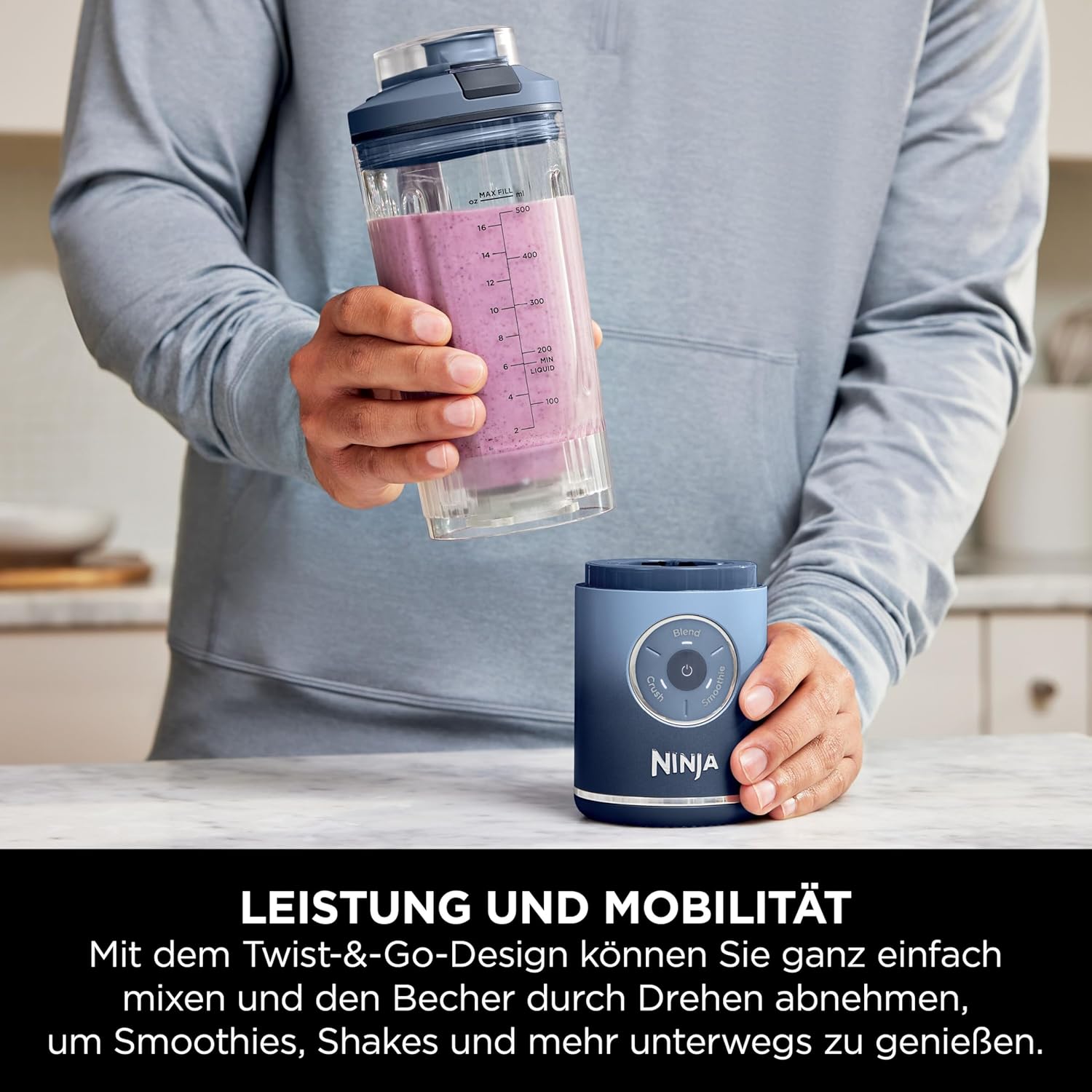 DER LEISTUNGSSTÄRKSTE KABELLOSE MIXER VON NINJA: Mit einem stärkeren Motor als der ursprüngliche Ninja Blast zerkleinert der Blast Max Eis und gefrorene Zutaten in Sekundenschnelle 3 MIXFUNKTIONEN: Einfach zu bedienende One-Touch-Mixmodi wie Crush und Smoothie sowie manueller Mixmodus 570ML MIXBECHER: Mit dem Twist-and-Go-Design können Sie den Becher nach dem Mixen herausnehmen und Smoothies, Shakes und mehr unterwegs genießen. Inklusive auslaufsicherem Deckel, Tragegriff und Trinköffnung (*490 ml maximales Fassungsvermögen) LANGLEBIGER, WIEDERAUFLADBARER AKKU: Mixen Sie bis zu 25-mal mit einer vollen Ladung – auch unterwegs INHALT: Blast Max Motorbasis, Mixbecher mit integrierten Klingen, auslaufsicherer Trinkdeckel, Ladekabel & Rezeptanleitung. H: 30 cm x B: 9 cm x T: 11,5 cm. Gewicht: 1,3 kg. Farbe: Marineblau | قیمت یورویی : 99.99€