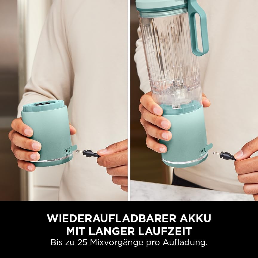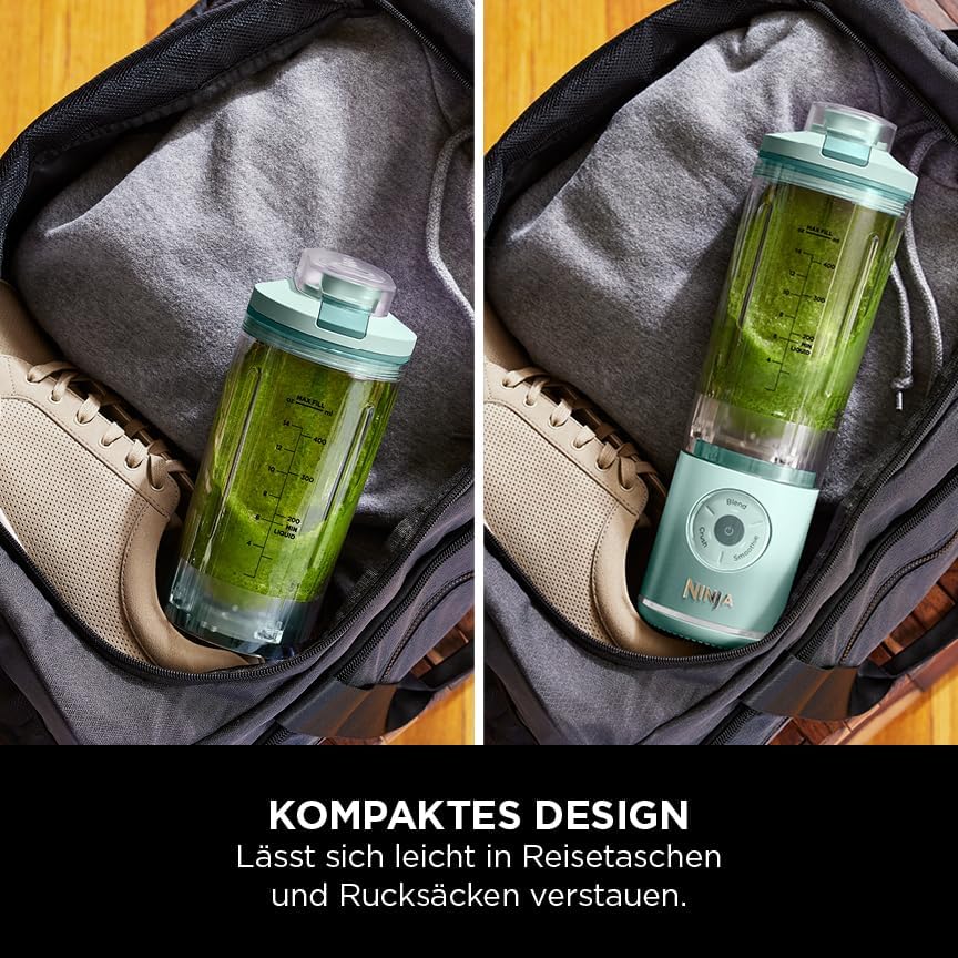 Ninja Blast Max Tragbarer Mixer/Blender/Smoothie Maker, 570 ml, wiederaufladbar, Mixbecher & auslaufsicherer Deckel, 3 Funktionen, Smoothies, Proteinshakes, Meerglas BC251EUMT | قیمت یورویی 74.99€