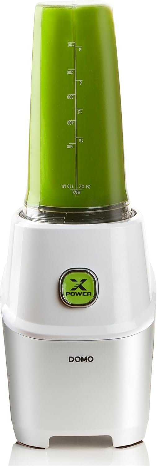BLENDER UND TRINKFLASCHE IN EINEM – Perfekt für Smoothies, Säfte und Sportgetränke unterwegs mit dem DOMO Blender Smoothie Maker mit leistungsstarkem 1000-W-Motor 3 BPA-FREIE TRINKFLASCHEN INKLUSIVE – Zwei Flaschen mit 530 ml und eine mit 710 ml, alle wiederverwendbar, geschmacksneutral und spülmaschinengeeignet LEISTUNGSSTARK UND EFFEKTIV – Der elektrische Mixer zerkleinert mühelos Eis, Nüsse und gefrorene Früchte für optimale Mix- und Geschmacksergebnisse INNOVATIVES KLINGENSYSTEM – Bewahrt Vitamine und Nährstoffe für gesunde Drinks dank Xpower-Technologie EINFACHE BEDIENUNG MIT EINEM KNOPFDRUCK – Zutaten einfüllen, mixen und direkt aus der Flasche trinken – kein Umfüllen notwendig LEICHT ZU REINIGEN – Flaschen sind spülmaschinenfest, die Blenderbasis lässt sich mit einem feuchten Tuch säubern | قیمت یورویی : 77.99€