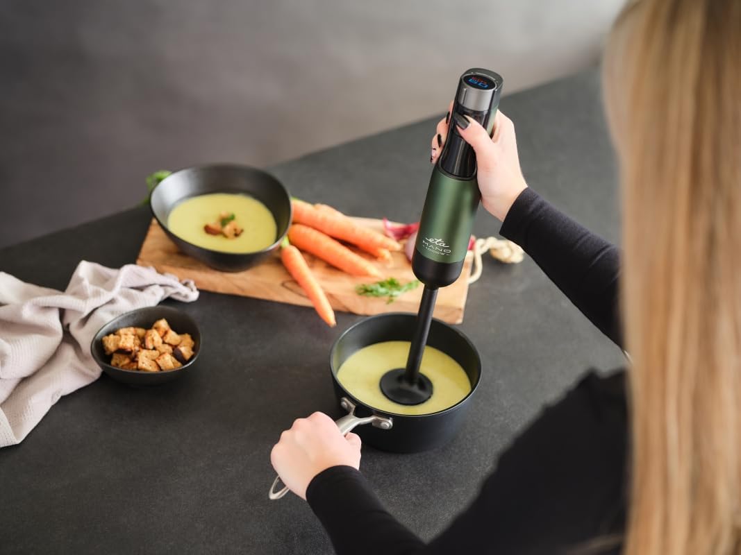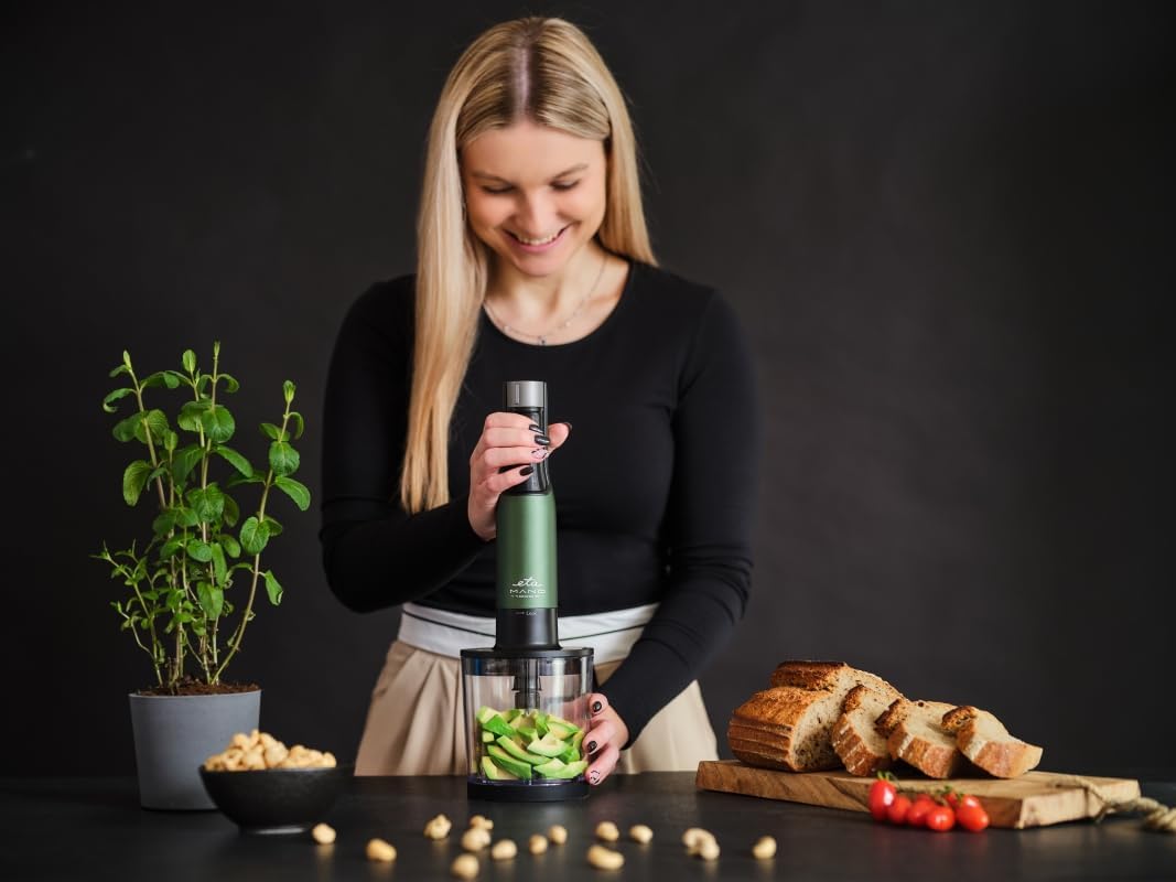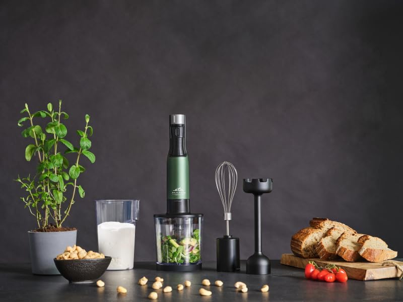 ETA Stabmixer Mano I Stabmixer-Set mit Zubehör I 1000 W I DC-Motor I 9 Geschwindigkeiten I LCD-Display I Titanmesser & ergonomischer Griff I inkl. Zerkleinerer, Schneebesen & Mixbecher I Grün | قیمت یورویی 79.99€
