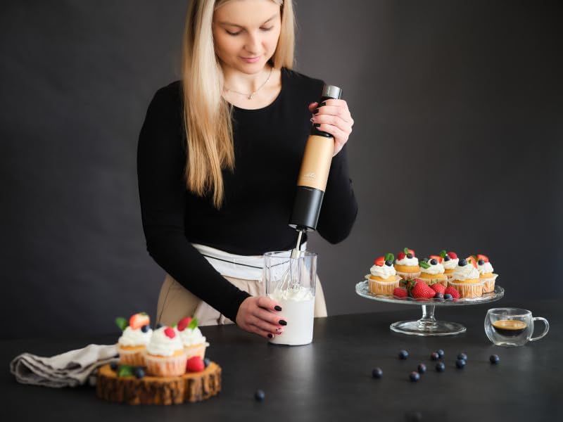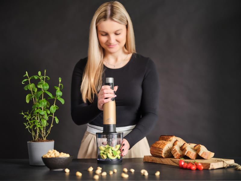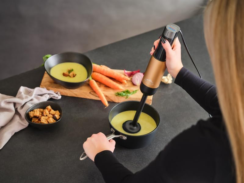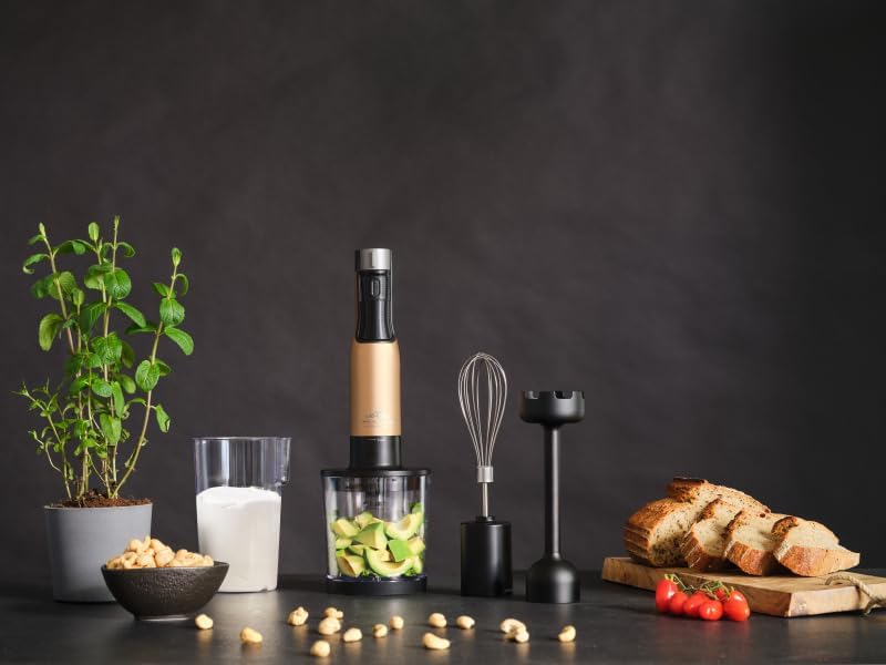 ETA Stabmixer Mano I Stabmixer-Set mit Zubehör I 1000 W I DC-Motor I 9 Geschwindigkeiten I LCD-Display I Titanmesser & ergonomischer Griff I inkl. Zerkleinerer, Schneebesen & Mixbecher I Gold | قیمت یورویی 79.99€