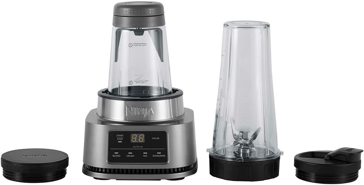Ninja Foodi Power Nutri Mixer 2-in-1, Smoothie-Bowls Maker, dicke Aufstriche & gefrorene Getränke mixen, Automatikprogramme, 700ml Becher & 400ml Schüssel mit Power-Rührer, 1100W, Silber CB100EU Mixer 2-in-1, 1100W | قیمت یورویی 94.81€