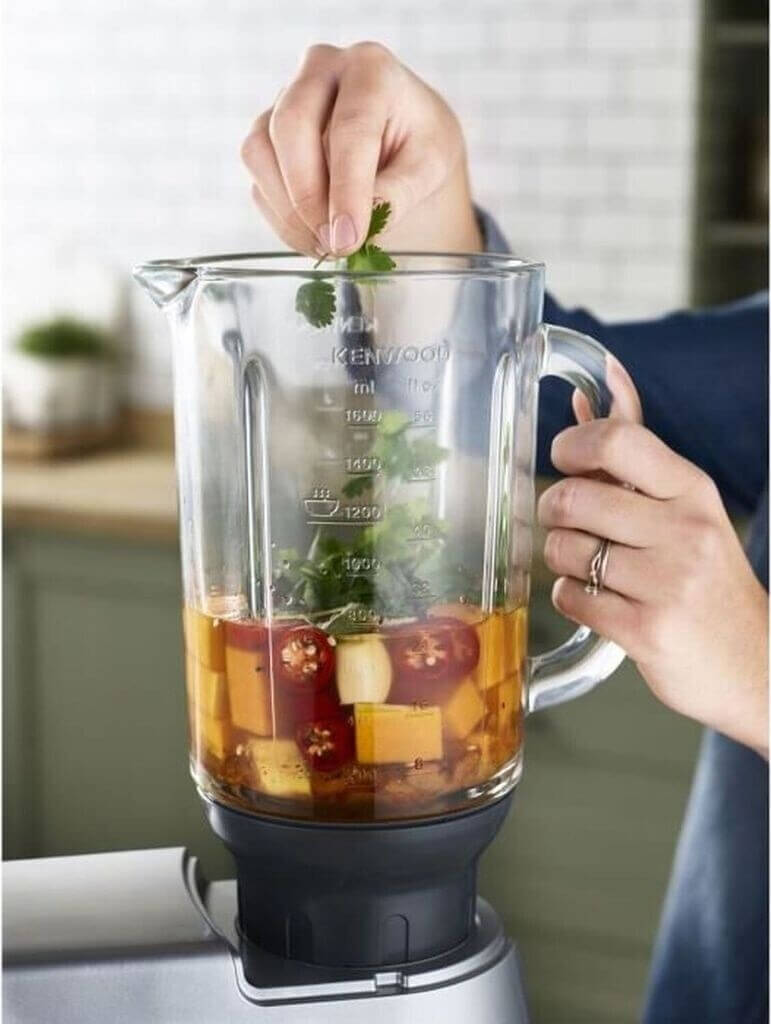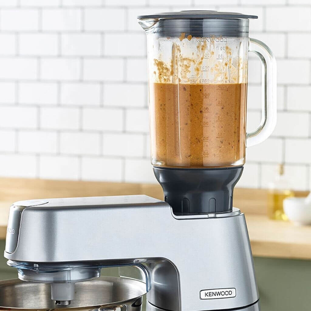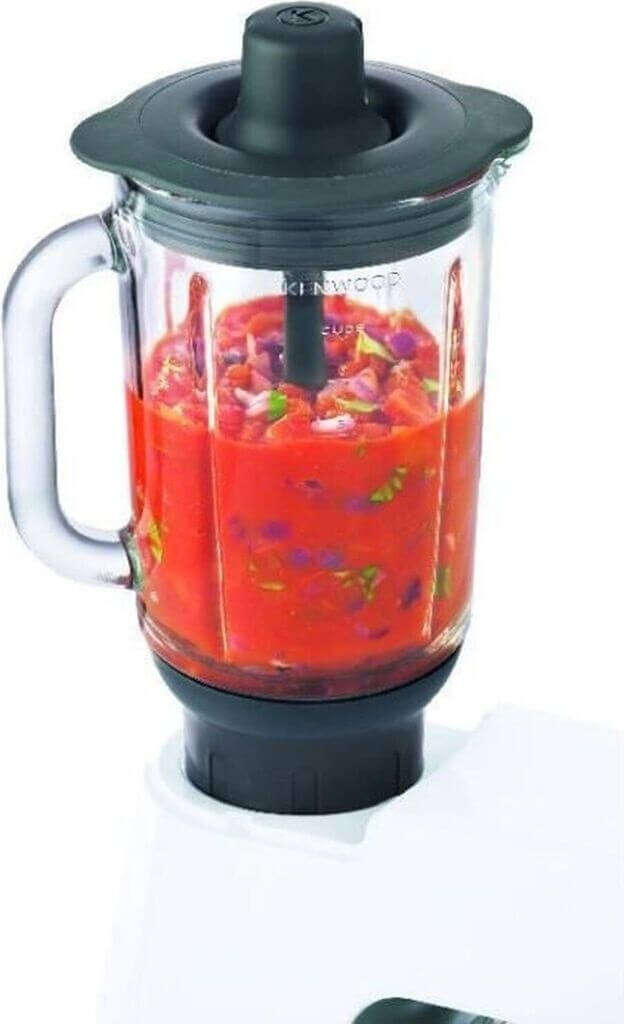 پیوست Kenwood KAH359GL با طراحی مدرن و بدنهای مقاوم از جنس شیشه و استیل، وسیلهای حرفهای برای مخلوطکردن، خردکردن و پردازش مواد غذایی مختلف است.