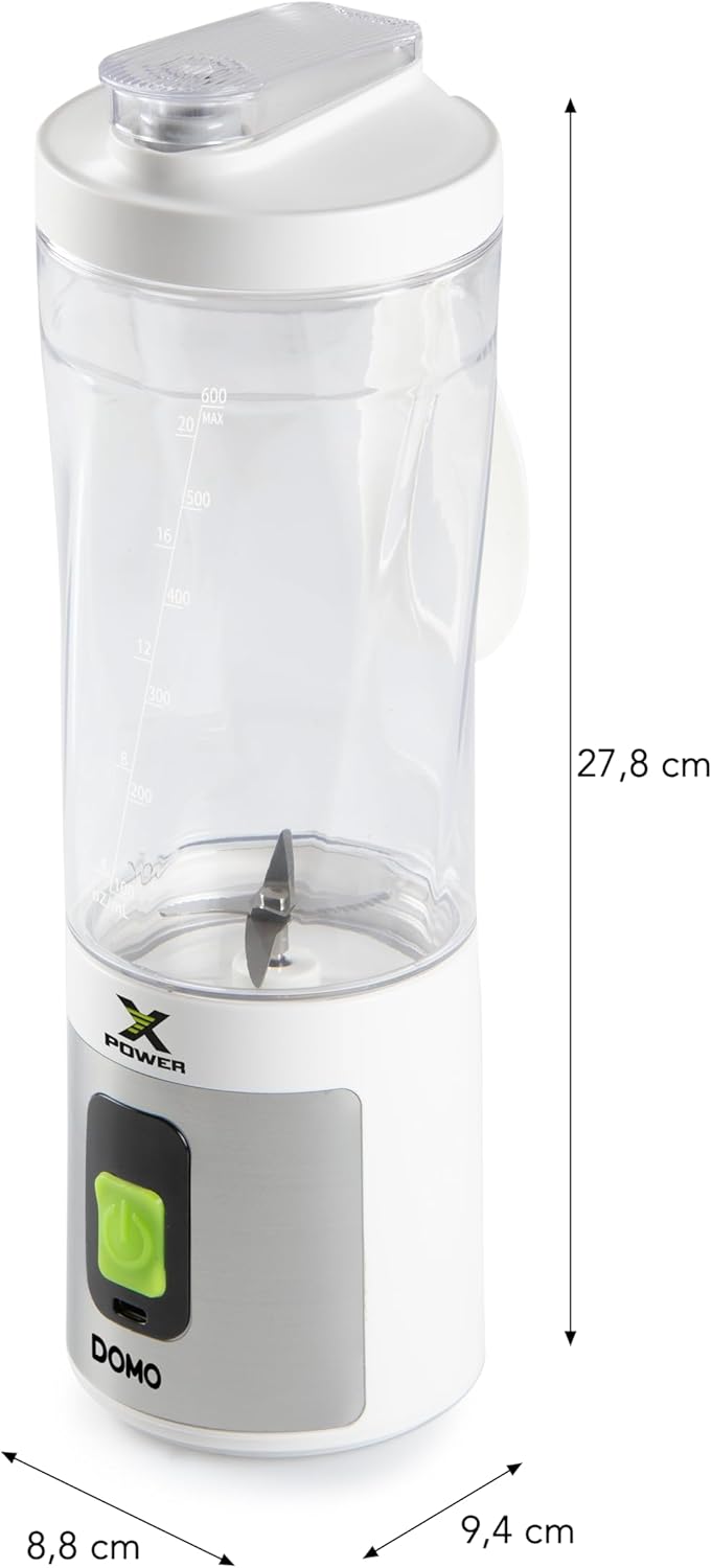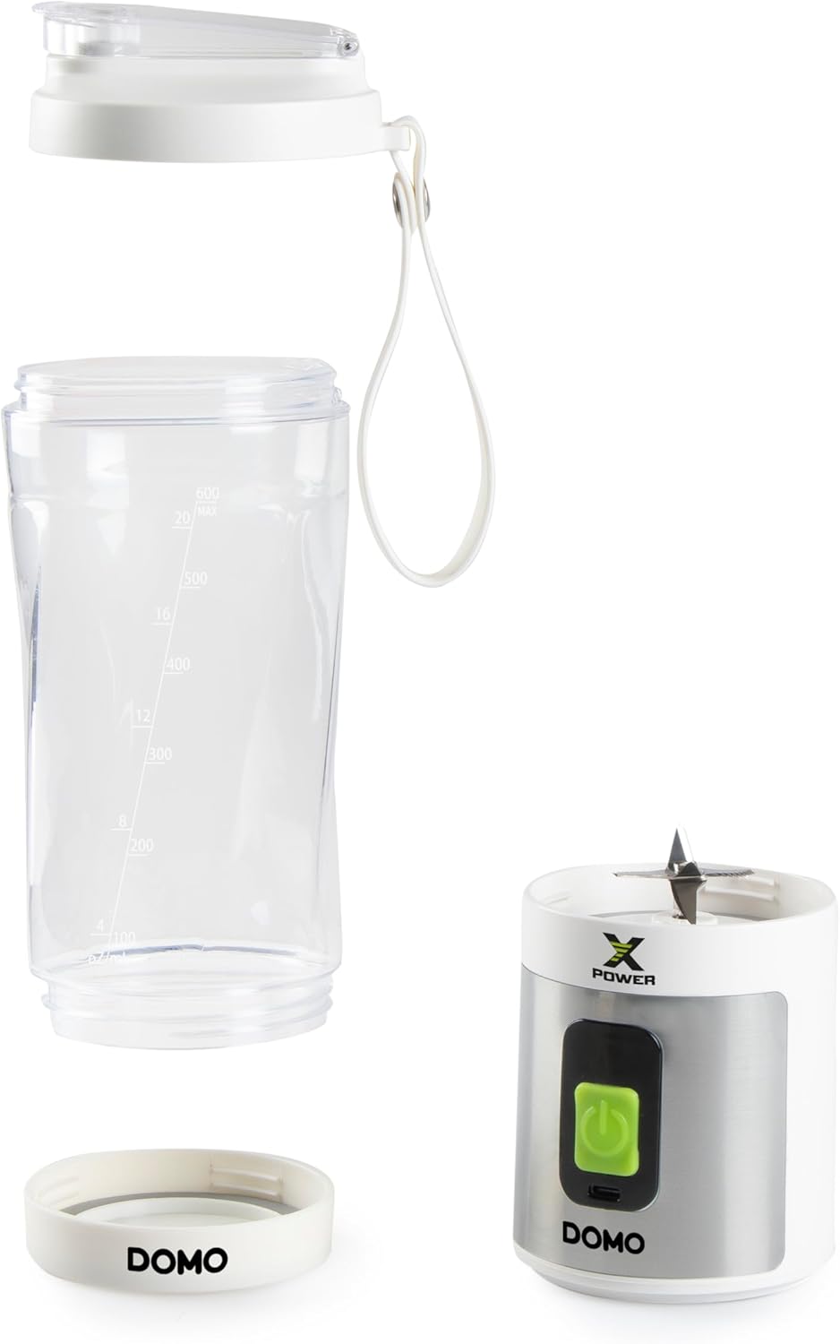 DOMO DO752BL Portable Blender - Powerful Mini Stand Mixer mit Tritan-Flasche - 120W - USB-C Aufladbar - 600 ml - Silber/Weiß | قیمت یورویی 39.95€