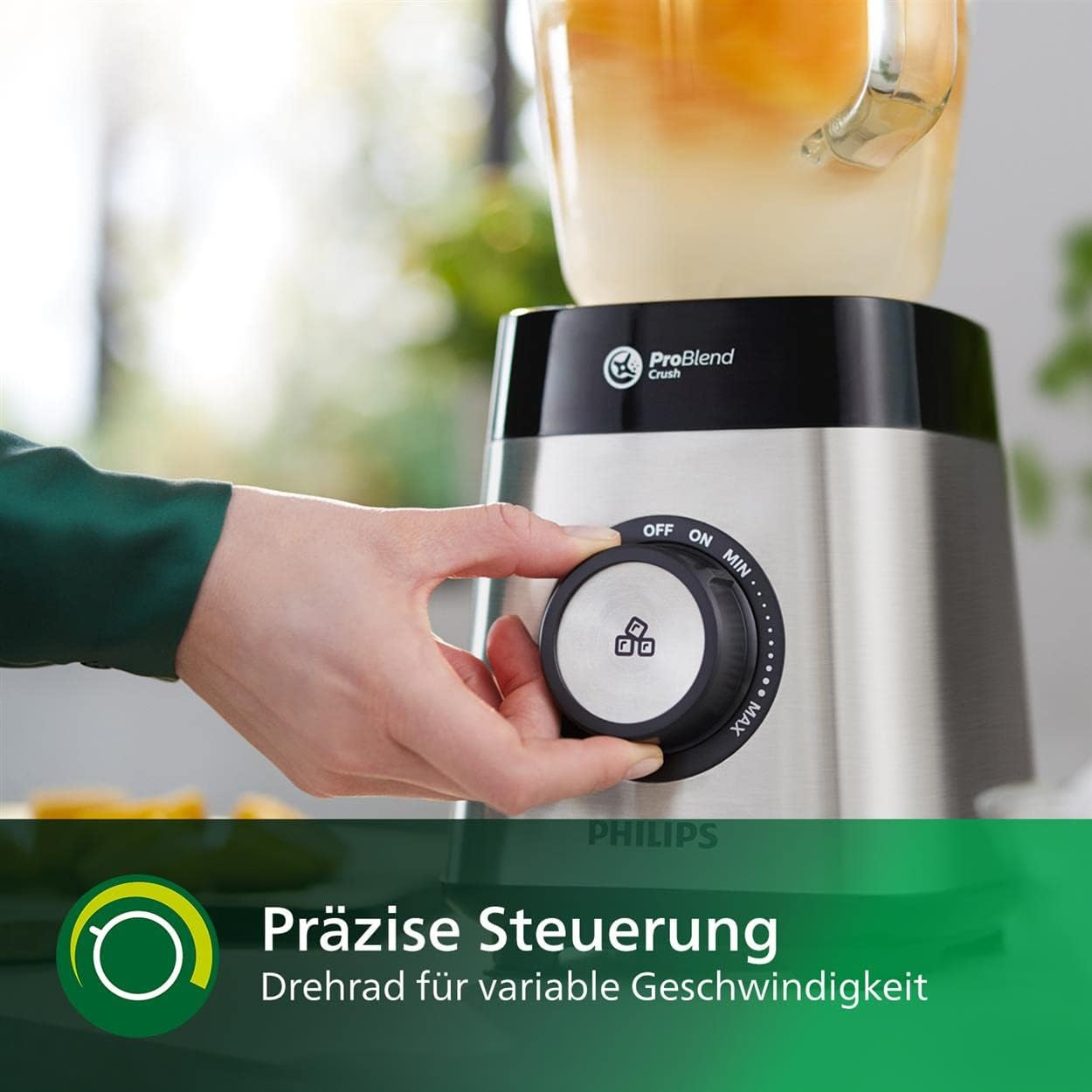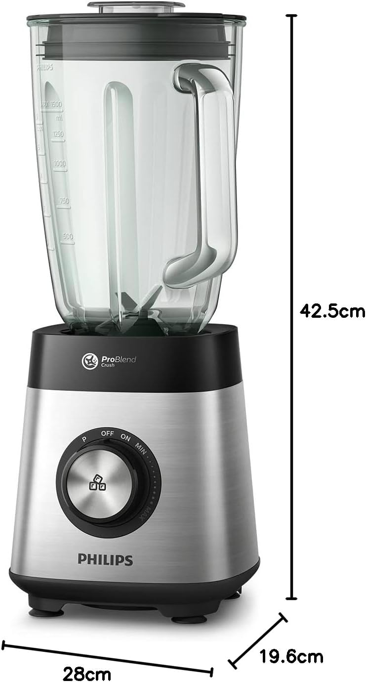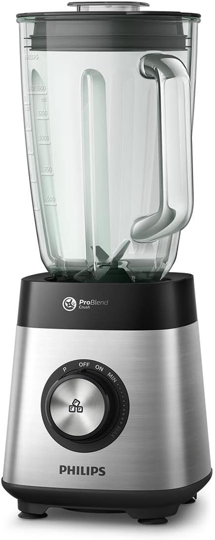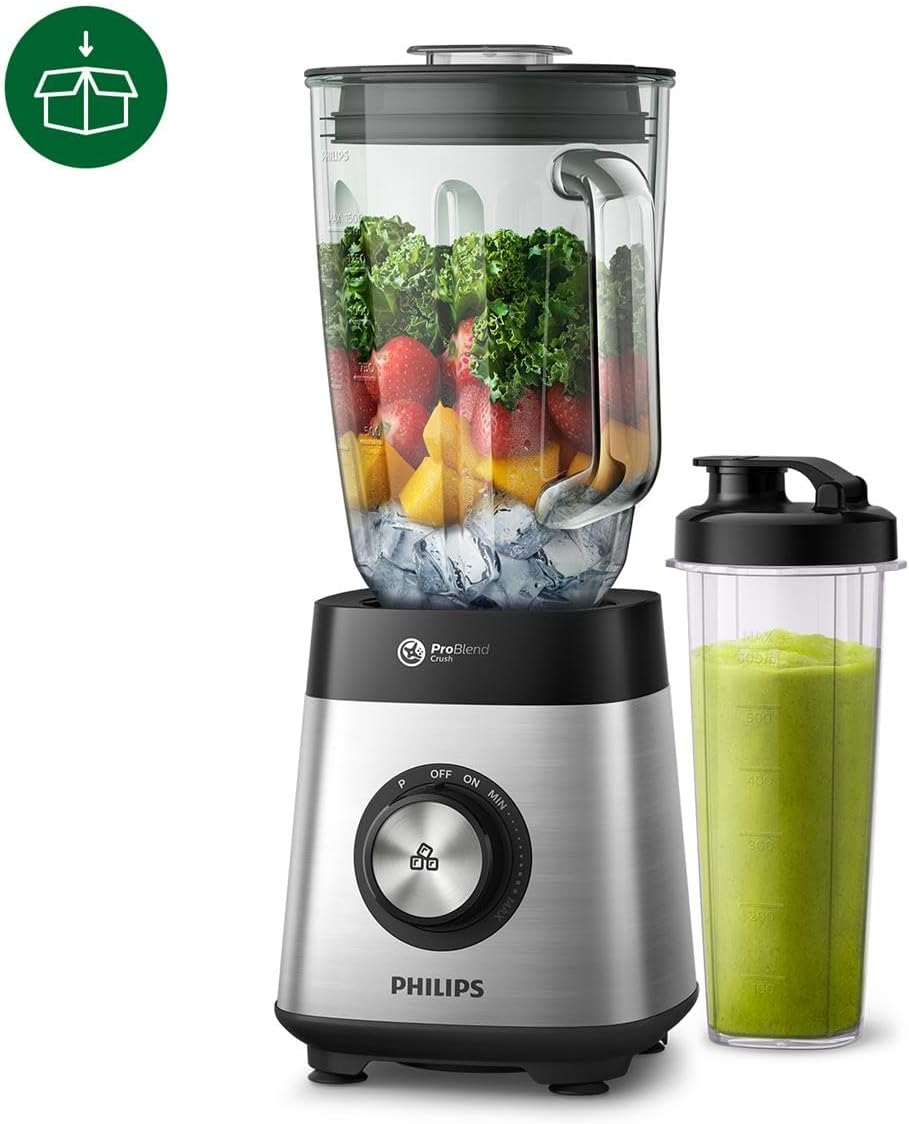 Schnell perfekte Ergebnisse: Leistungsstarker und energieeffizienter 1000-W-Motor für doppelt so schnelle, perfekte Ergebnisse – mit Drehrad für variable Geschwindigkeit, Impulsfunktion und bis zu 20.000 U/min für schnelle, gleichmäßige Mixergebnisse Großes Fassungsvermögen: Mixer und Smoothie Maker mit großem 2-Liter-Glasbehälter zum Mixen köstlicher Smoothies für die ganze Familie oder zum späteren Verzehr – inkl. mobiler Trinkflasche Leistungsstarkes Mixen: Bei der ProBlend Crush Technologie kommen 6-Sterne-Klingen und ein 1000-W-Motor zum Einsatz, sodass selbst Eis und gröbere Zutaten perfekt zerkleinert werden Individuelle Rezepte: Zaubern Sie mit der HomeID App gesunde hausgemachte Smoothies, Suppen und mehr – entdecken Sie inspirierende, auf Sie zugeschnittene Rezepte mit Schritt-für-Schritt-Anleitung Lieferumfang: Standmixer, spülmaschinenfester Glasbehälter, mobile Trinkflasche | قیمت یورویی : 172.98€