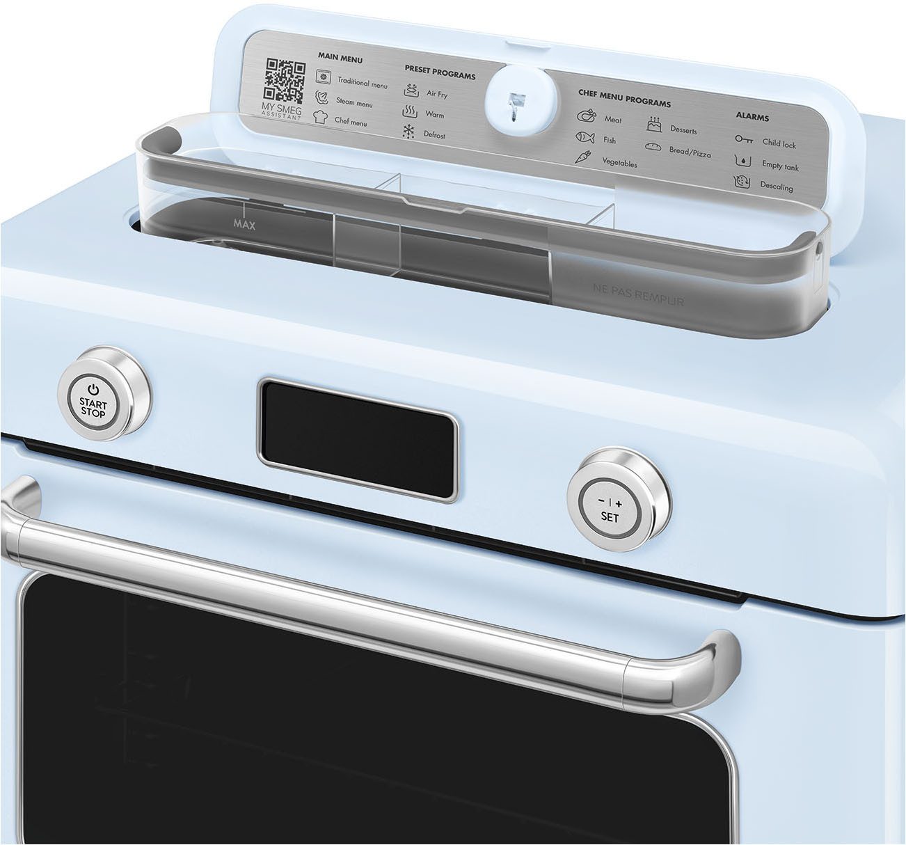 مولتی فر ترکیبی هوا پز بخار پز اسمگ مدل COF01 با طراحی کلاسیک دهه 50 میلادی و رنگ آبی ، ظاهری خاص و حرفهای به آشپزخانه شما میبخشد.