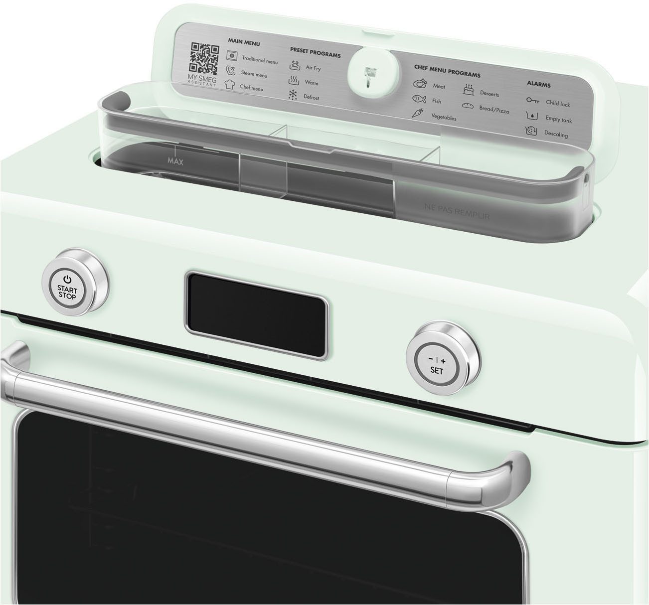 مدل COF01 از برند ایتالیایی اسمگ، یک مولتی فر ترکیبی هوا پز بخار پز است که با طراحی کلاسیک دهه 50 میلادی و رنگ خاص کرم ، فضای آشپزخانه شما را زیباتر میسازد.