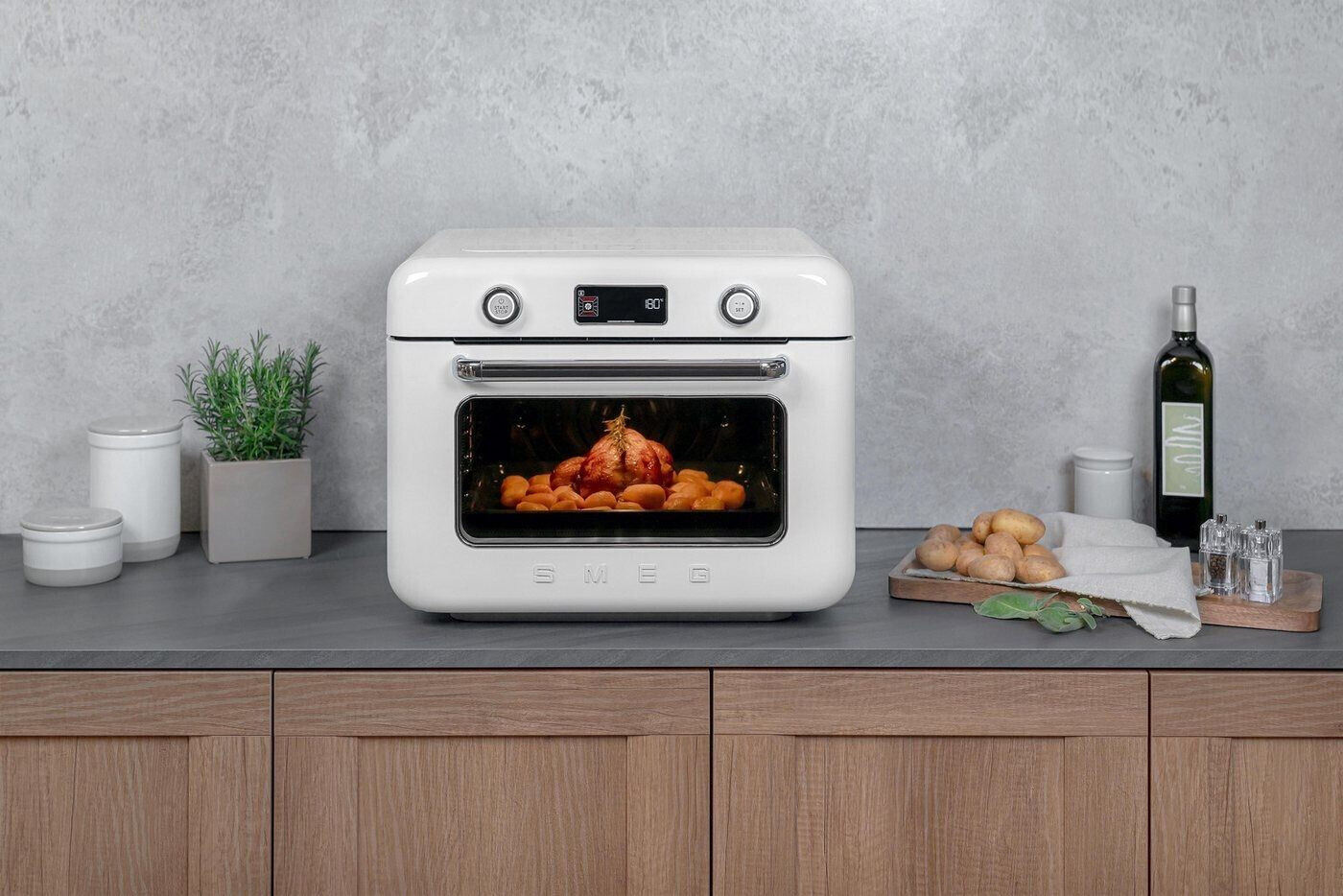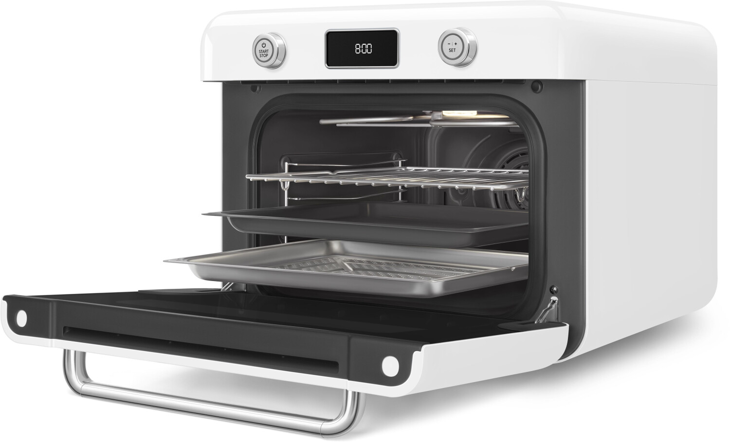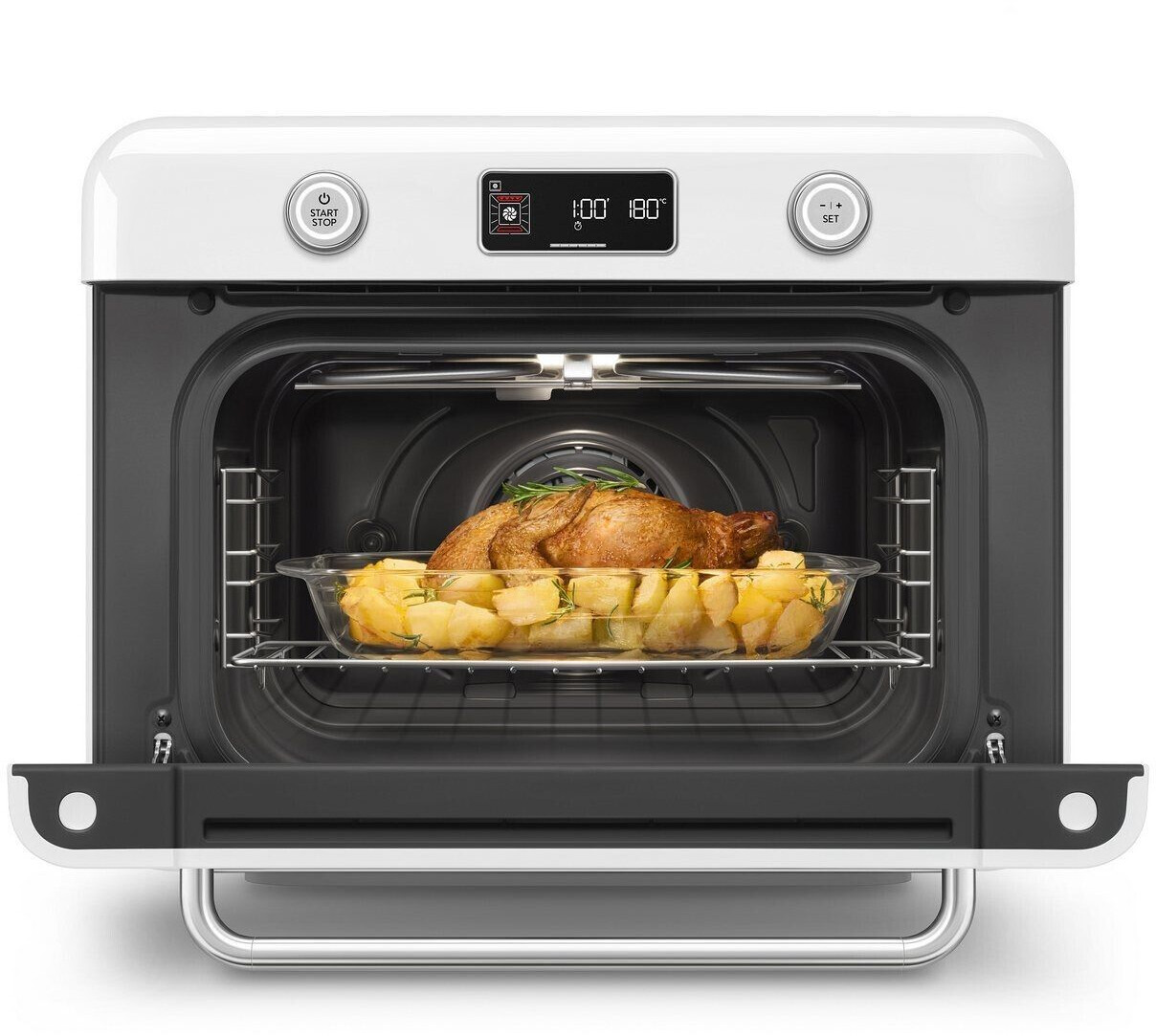 مولتی فر ترکیبی هوا پز بخار پز اسمگ مدل COF01 با طراحی کلاسیک دهه 50 میلادی و رنگ سفید ، ظاهری خاص و حرفهای به آشپزخانه شما میبخشد.