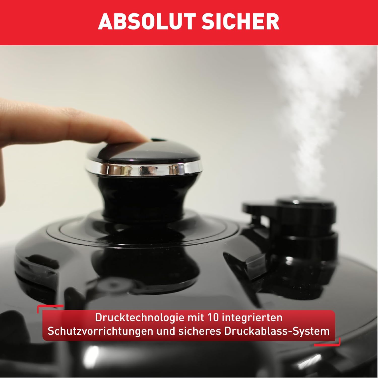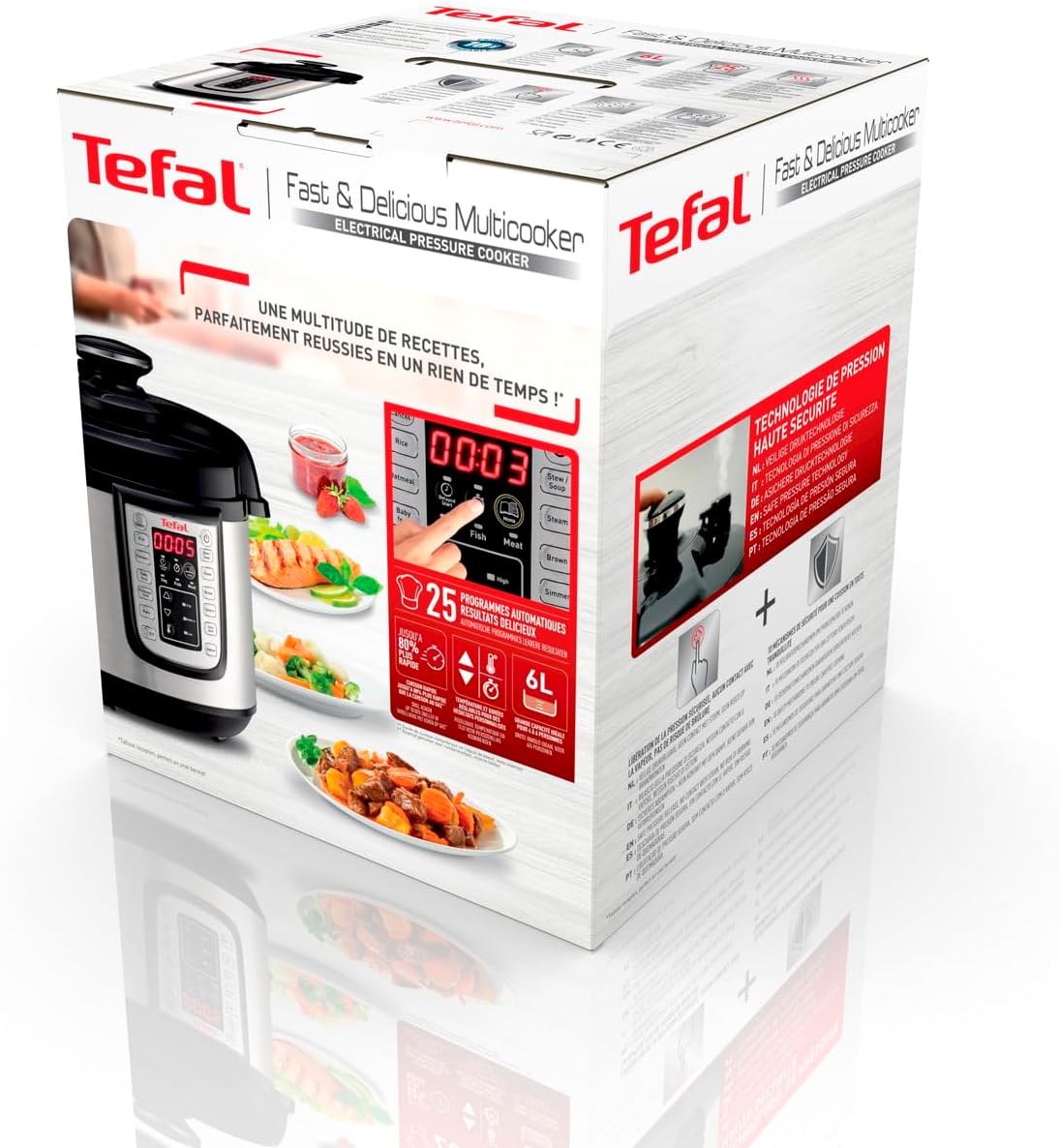 Unendliche Möglichkeiten: Tefal Fast & Delicous elektrischer Schnellkochtopf und Multikocher für unzählige Gerichte, im Handumdrehen perfekt gegart Schnelle Kochergebnisse: Bis zu 80 % schnelleres Kochen als mit herkömmlichen Kochgeschirr auf einem Gas- oder Elektroherd um die gesunden, wertvollen Nährstoffe Ihrer Speisen bestmöglich zu erhalten sowie Zeit und Energie zu sparen Automatische Programme: 25 automatische Programme für unzählige gesunde, frisch gekochte Gerichte und köstliche Ergebnisse jeden Tag Individuell einstellbarer Kochmodus: Einstellbare Temperatur und Zeit für individuelle Ergebnisse Ideales Fassungsvermögen: Großes Fassungsvermögen von 6 Liter für 4 bis 6 Personen; ideal für den täglichen Gebrauch und besondere Anlässe | قیمت یورویی : 106.99€