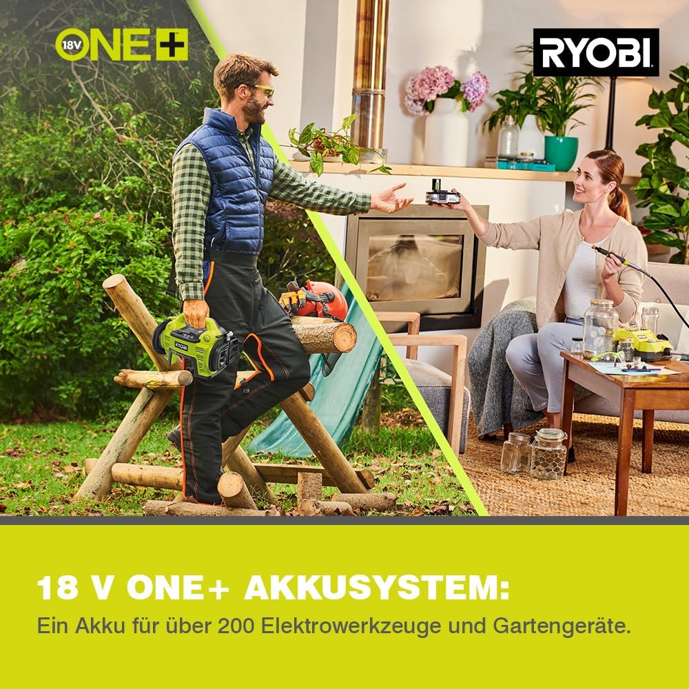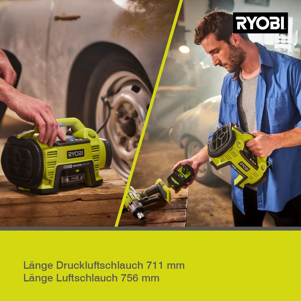 مولتی کمپرسور شارژی RYOBI 18 V ONE+ R18I-1C20GZL (حداکثر فشار 10.3 بار، فشار باد فشار بالا 2:1 برای لاستیک ها و حجم بالا برای اجسام بادی از جمله باتری 2.0 Ah و شارژر)