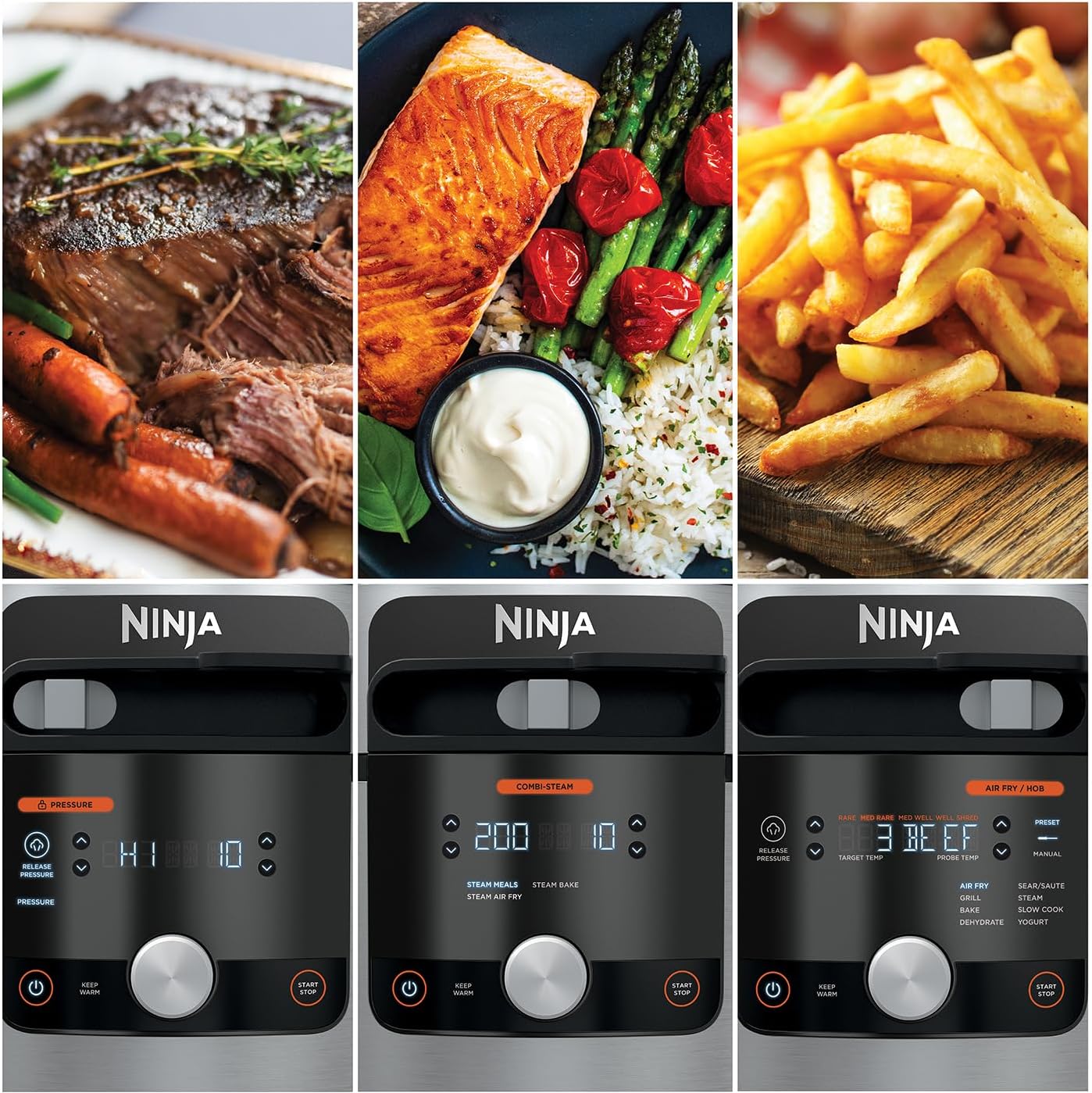 Ninja Foodi MAX Multikocher mit SmartLid, 7,5L, 12-in-1 Multicooker, Pressure Cooker Schnellkochen, Airfryer Heißluftfrittieren, Slow Cooker Langsamkochen, Edelstahl, OL650EU 12-in-1 Multikoche MAX, 7,5L Edelstahl | قیمت یورویی 267.96€