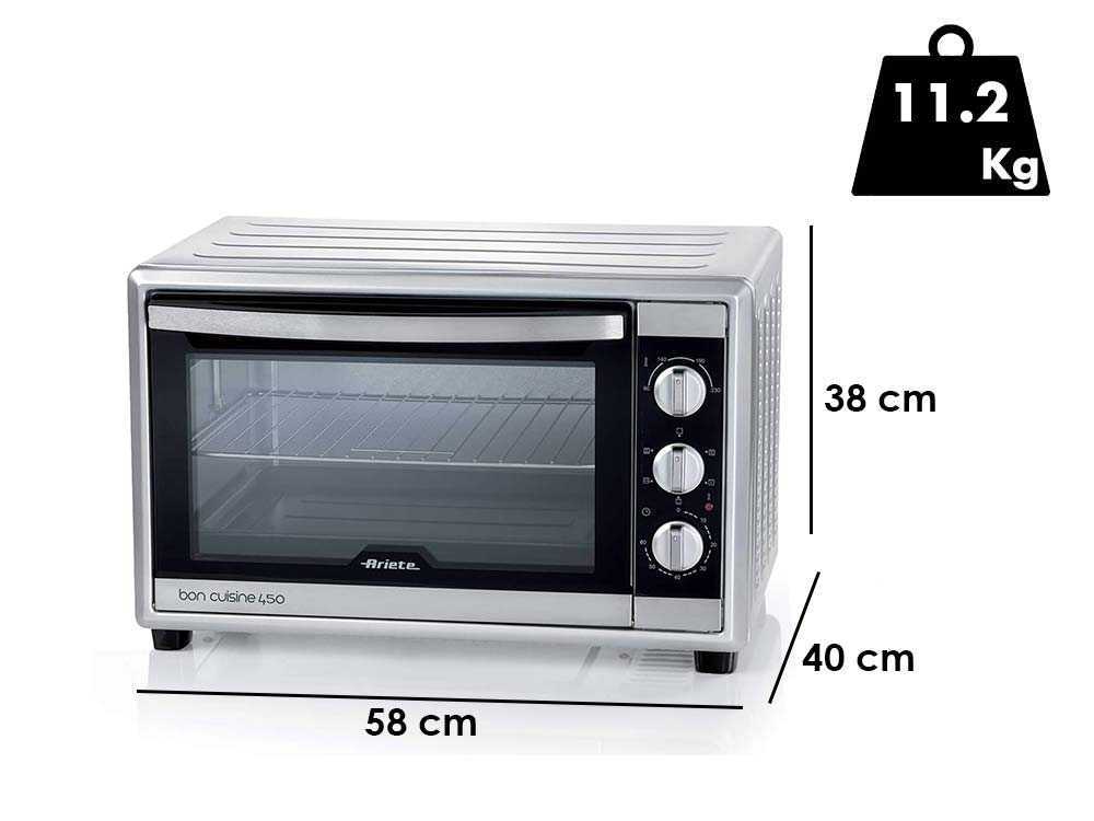 مینی فر آریته مدل Bon Cuisine 450 با ظرفیت ۴۵ لیتر، جوجهگردان و تنظیم دما تا ۲۳۰ درجه سانتیگراد، مناسب پخت حرفهای غذاهای خانگی با حجم بالا است.