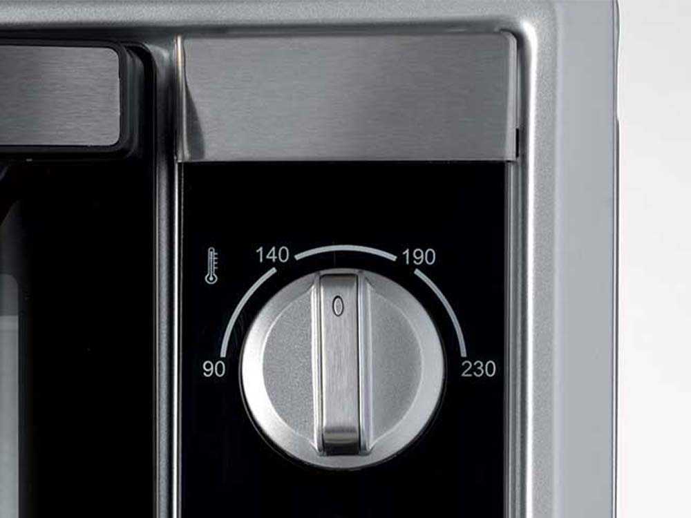 دارای سه ولوم چرخشی برای کنترل دما، زمان و نوع پخت (المنت بالا، پایین، ترکیبی یا جوجهگردان). مجهز به پنجره شیشهای مقاوم حرارت، چراغ نشانگر و پایه ضد لغزش برای ایمنی بیشتر. با سینی گریل، توری فلزی و سیخ جوجهگردان همراه است.