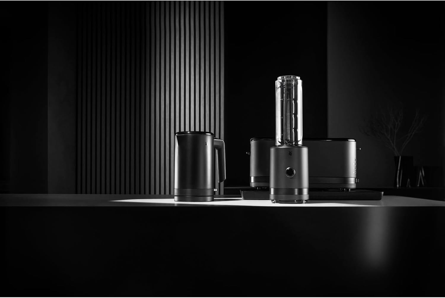 WMF Küchenminis Smoothie-to-go, Mini Standmixer mit zwei Mix-/Trinkbehältern 0,6l, Mixer Hochleistungsmixer 300 W, edelstahl matt, schwarz Schwarz Smoothie-to-go | قیمت یورویی 47.99€