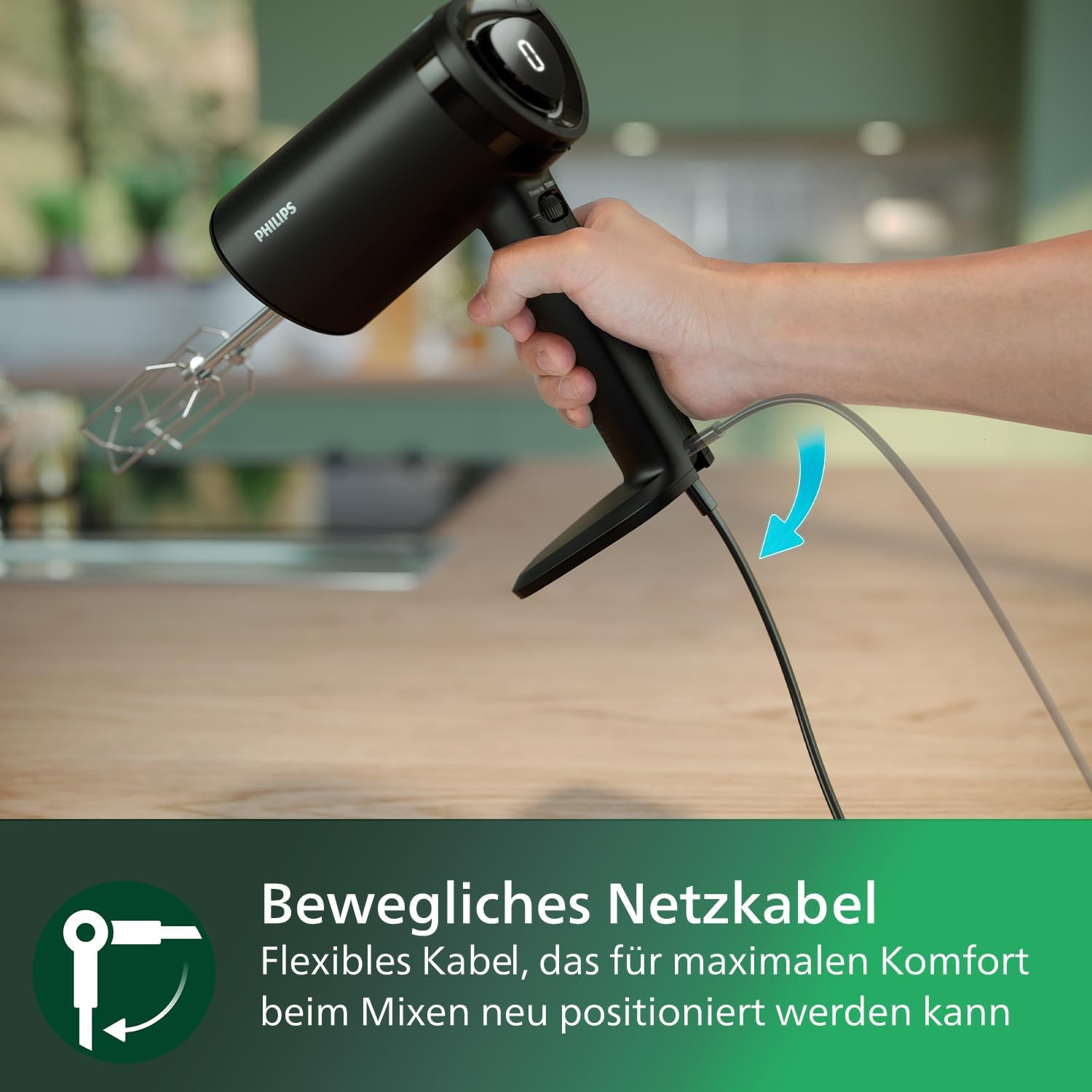 Philips Handmixer 5000 Series, 3-in-1-Handmixer, Leistungsstarker Motor (500 W), Smarter Aufbewahrungsbecher, 5 Geschwindigkeitsstufen, Anti-Spritz-Schutz, Schwarz (HR3781/20) | قیمت یورویی 85.69€