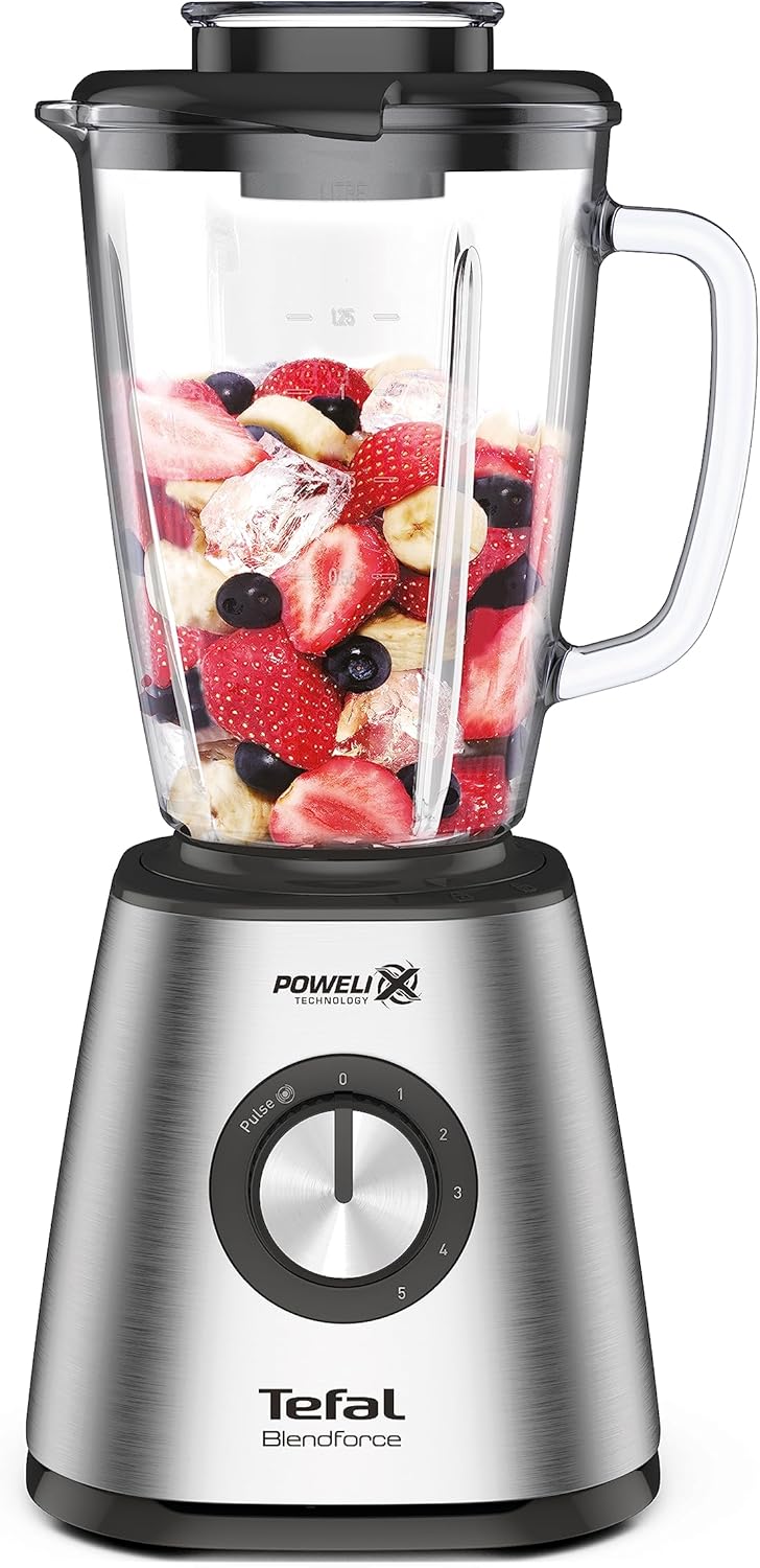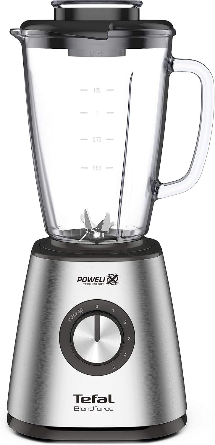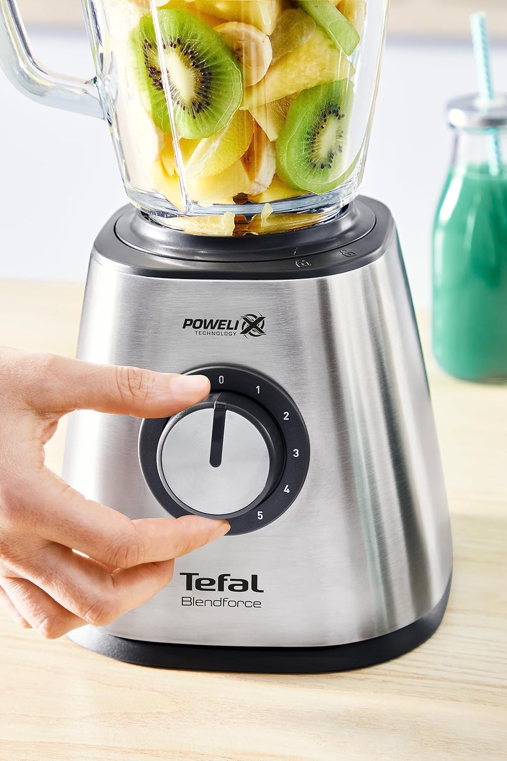 Tefal BL439D Blendforce 2 Standmixer | 800 W | kraftvolles Mixen | 5 Geschwindigkeiten | Pulsfunktion | 6 Powelix-Messer | Edelstahlkorpus | 1,75-L-Thermoglasbehälter | Eiszerkleinerer | Edelstahl | قیمت یورویی 99.89€
