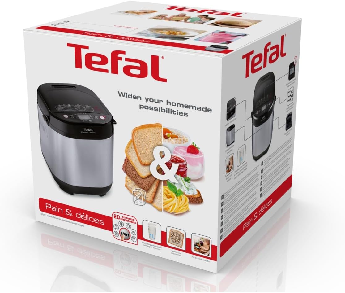 Tefal PF240E Brotbackautomat Pain&Délices | 20 Backprogramme | 3 Brotgrößen und Bräunungsstufen einstellbar | auch für Kuchen - Pizza - Nudelteig | Backform antihaftbeschichtet | Schwarz/Edelstahl | قیمت یورویی 94.99€