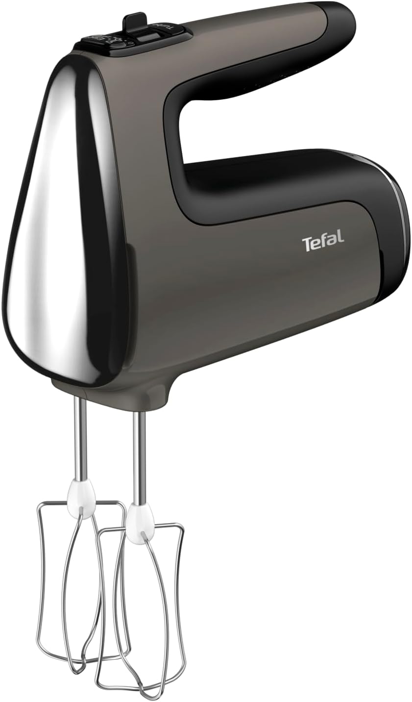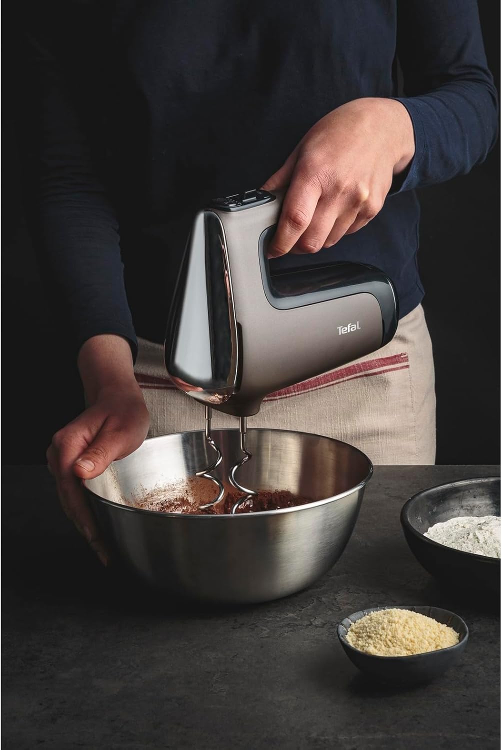 Tefal HT650E Power Mix Silence Handmixer | 600 Watt | variabler Geschwindigkeitsregler | Turbo- und Auswurf-Funktion | extrem leiser Motor | inkl. 2 Rührbesen und 2 Knethaken | Grau | قیمت یورویی 54.99€