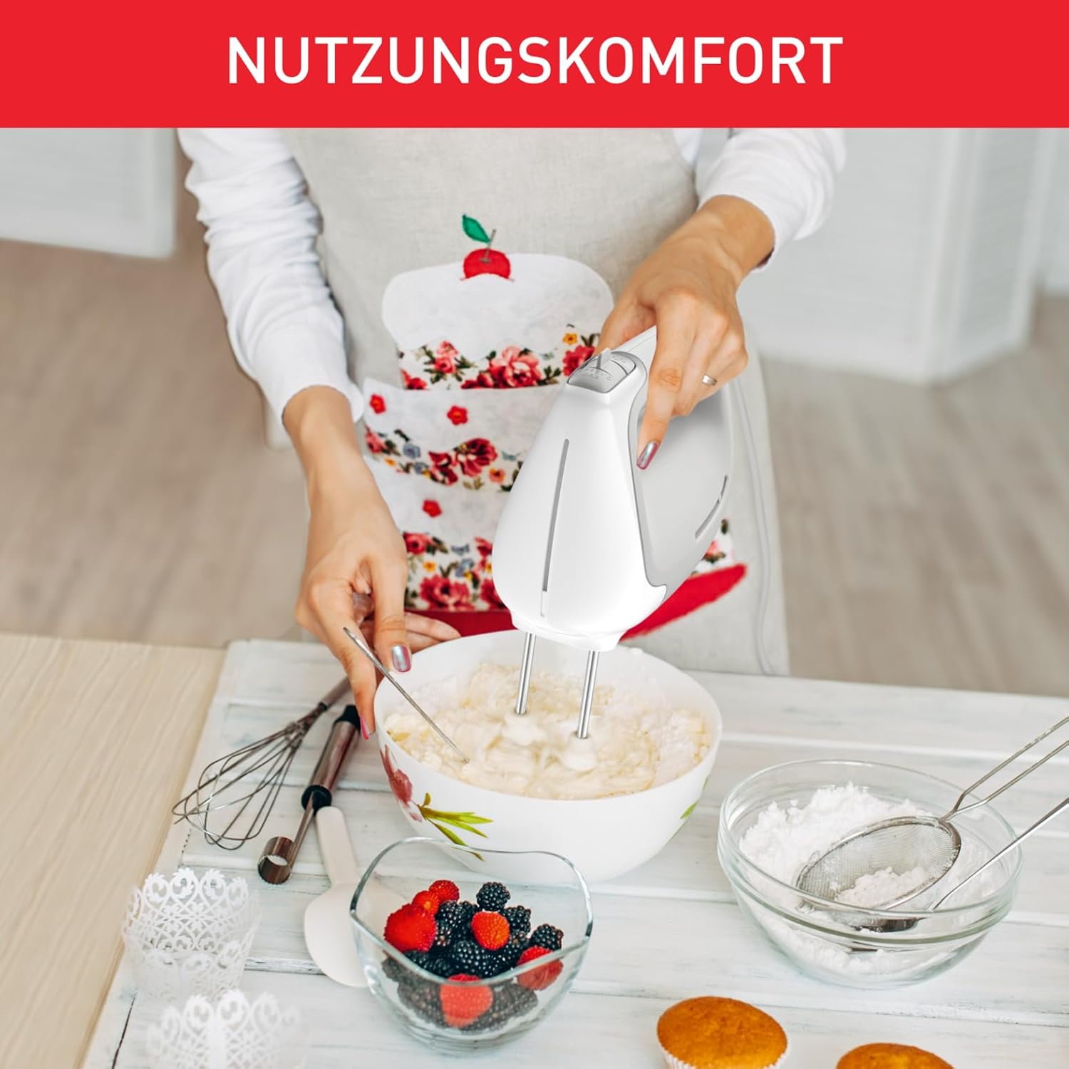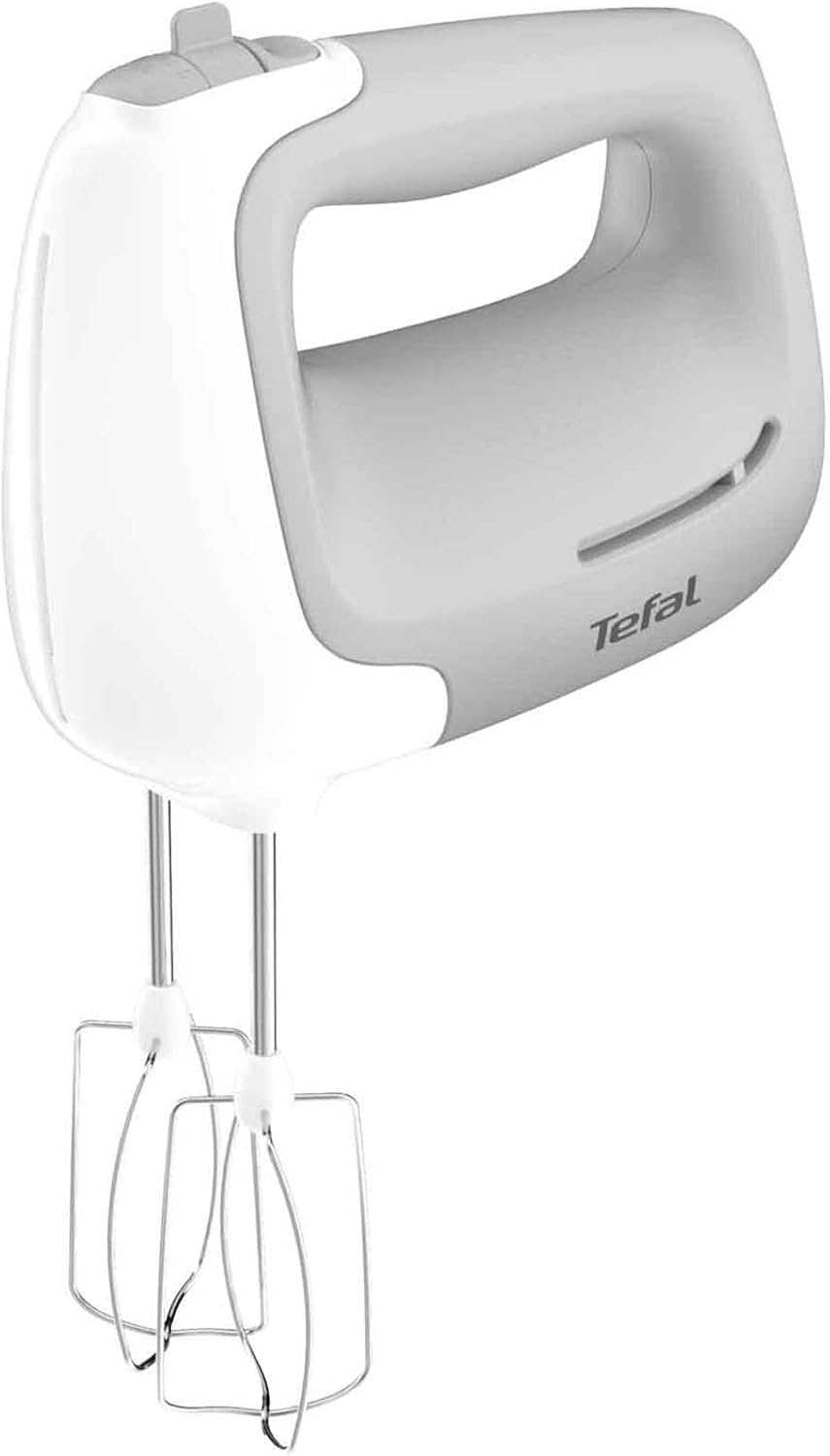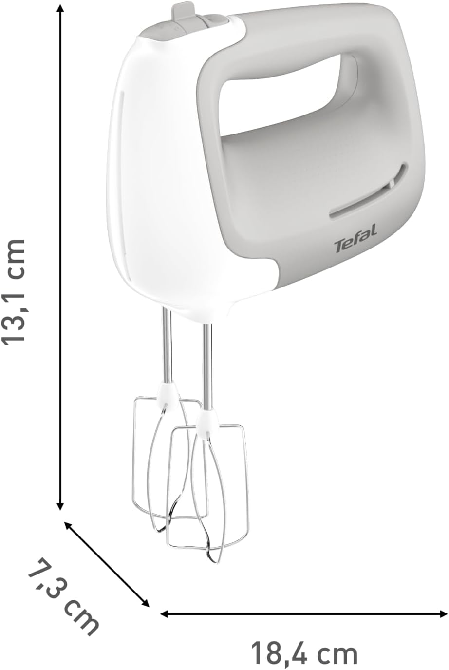 Tefal Handmixer Prep'Mix HT450B | 450 W | 5 Geschwindigkeiten | 2 Schneebesen und 2 Knethaken aus Edelstahl | Ergonomisches Design | Spülmaschinenfestes Zubehör, Weiß/Grau | قیمت یورویی 32.18€