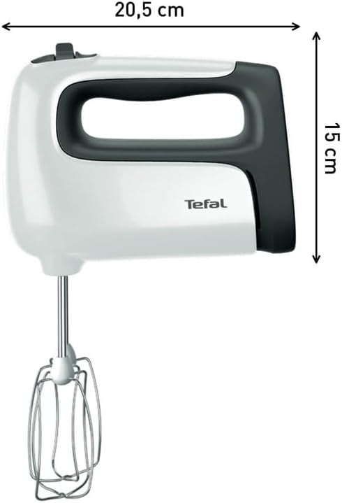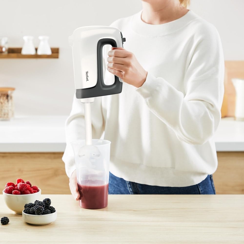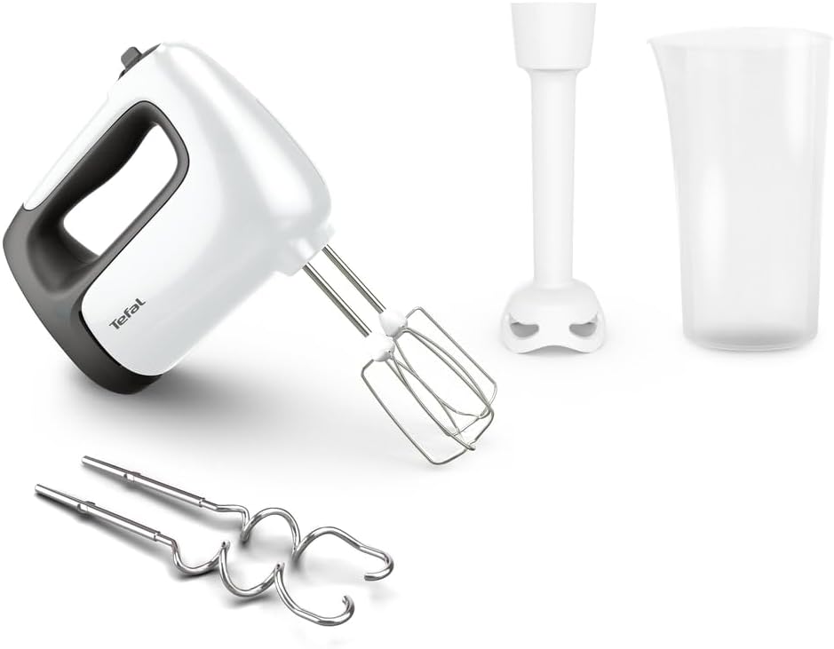 Tefal HT4611 Prep'Mix+ Handmixer | 500 Watt | Schiebeknopf mit 5 Geschwindigkeiten + Turbo | inkl. Zubehör: 2 Schneebesen/2 Knethaken/Pürierstab/Messbecher | Weiß/Schwarz | قیمت یورویی 49.97€