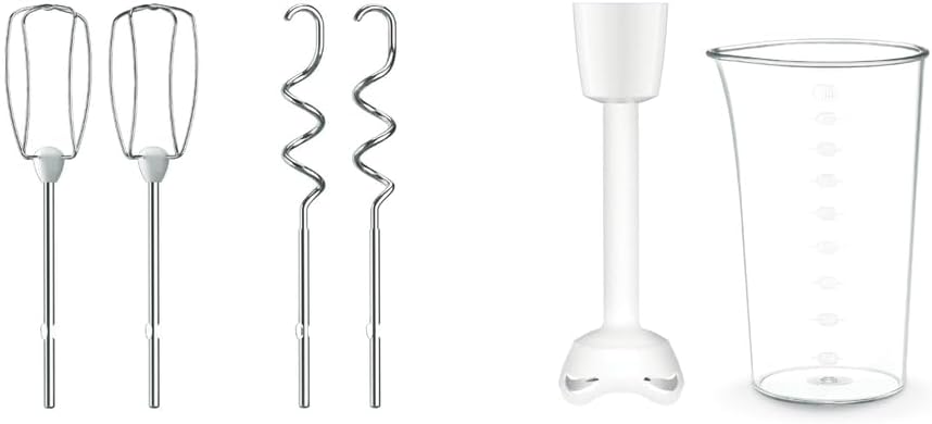 Tefal HT4611 Prep'Mix+ Handmixer | 500 Watt | Schiebeknopf mit 5 Geschwindigkeiten + Turbo | inkl. Zubehör: 2 Schneebesen/2 Knethaken/Pürierstab/Messbecher | Weiß/Schwarz لینک آمازون : https://www.amazon.de/dp/B08Z4FJLWR?th=1&psc=1 قدرتمند: به لطف موتور 500 وات، میکسر دستی تفال عملکرد را با تعداد زیادی لوازم جانبی متنوع ترکیب می کند. 5 سرعت: 5 سطح سرعت مختلف، و همچنین عملکرد توربو، تمام نیازهای شما را برآورده می کند کاربر پسند: دکمه کشویی عملی روی دسته و دکمه بیرون انداختن، همزن دستی را به یک دستگاه چندوظیفه ای بسیار کاربرپسند تبدیل می کند. شامل لوازم جانبی باکیفیت: 2 عدد همزن فولادی ضد زنگ، 2 عدد قلاب خمیر استیل، مخلوط کن پلاستیکی، پیمانه اندازه گیری محدوده تحویل: همزن دستی Tefal HT4611 Prep'Mix+، شامل لوازم جانبی تعداد قطعات: 7 عدد
