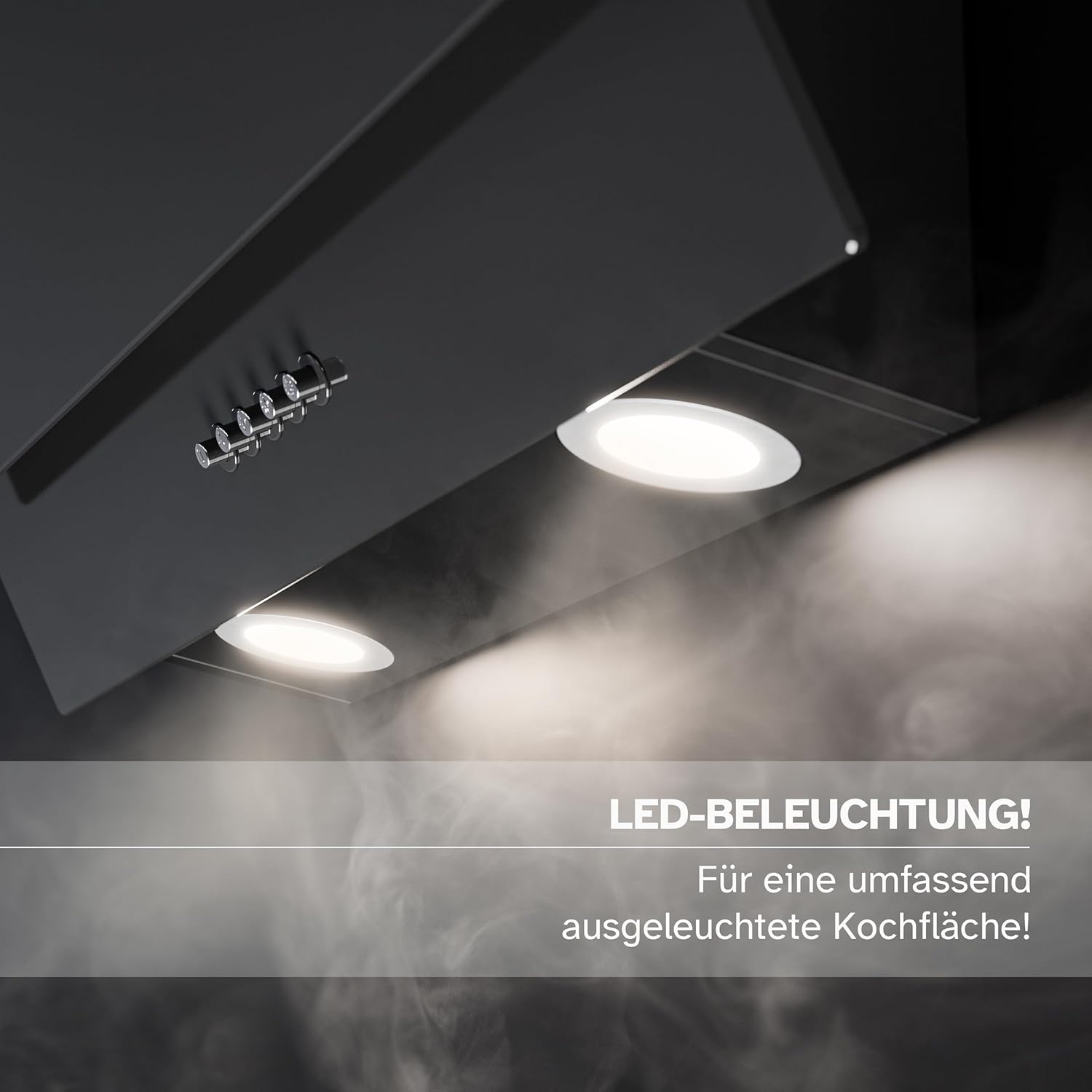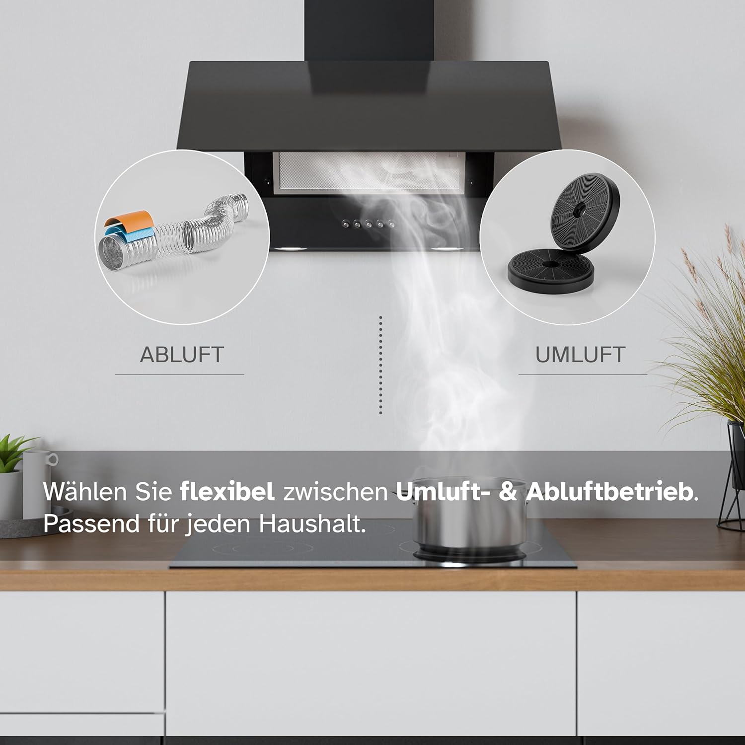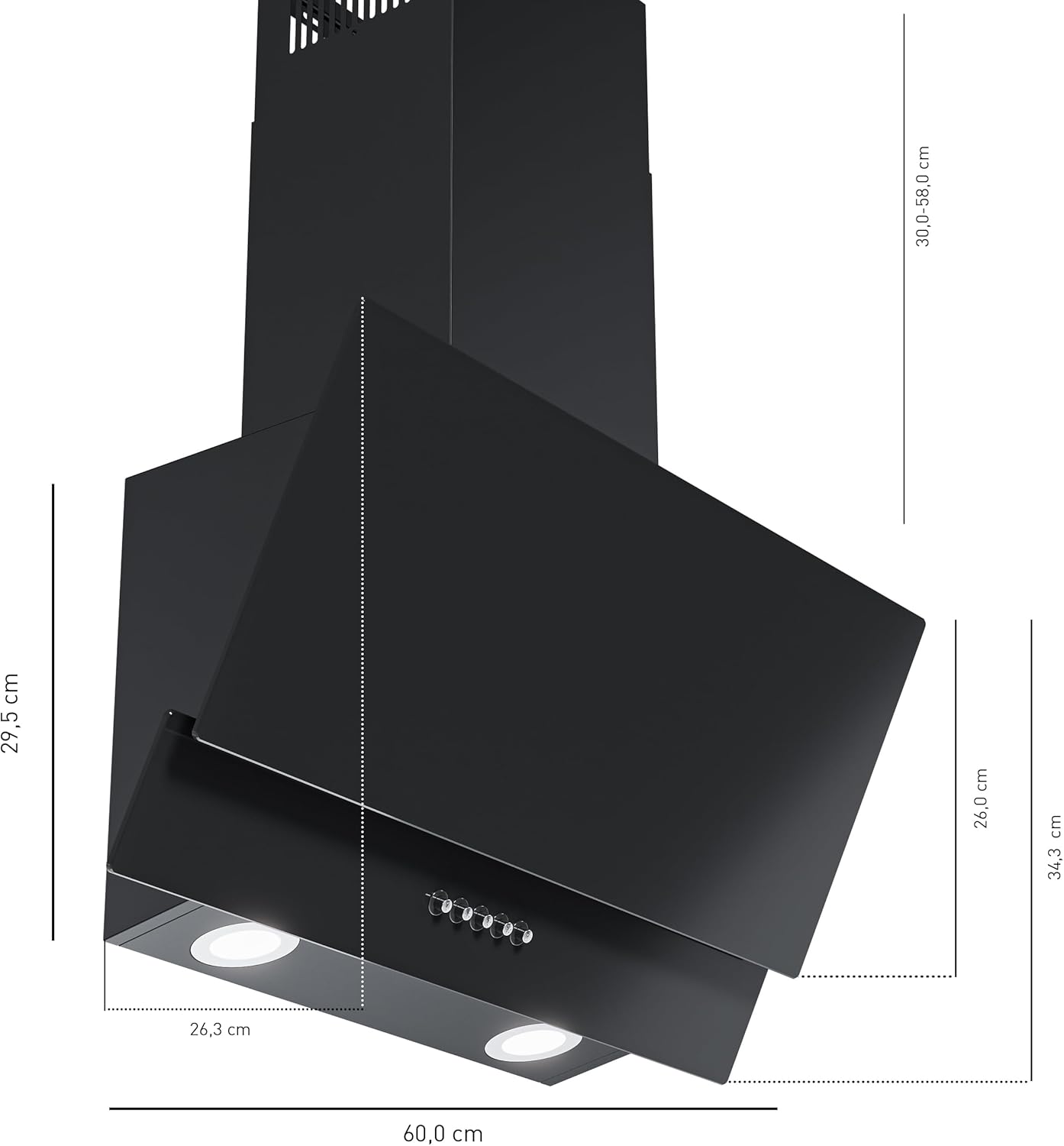 HEINRICHS Dunstabzugshaube, 60cm Abluft/Umluft-Dunstabzugshaube, 300m³/h Saugkraft, platzsparend, mit LED Beleuchtung, 3 Geschwindigkeitsstufen, inkl. Aktivkohlefilter, 69W Leistung, Schwarz | قیمت یورویی 99.99€
