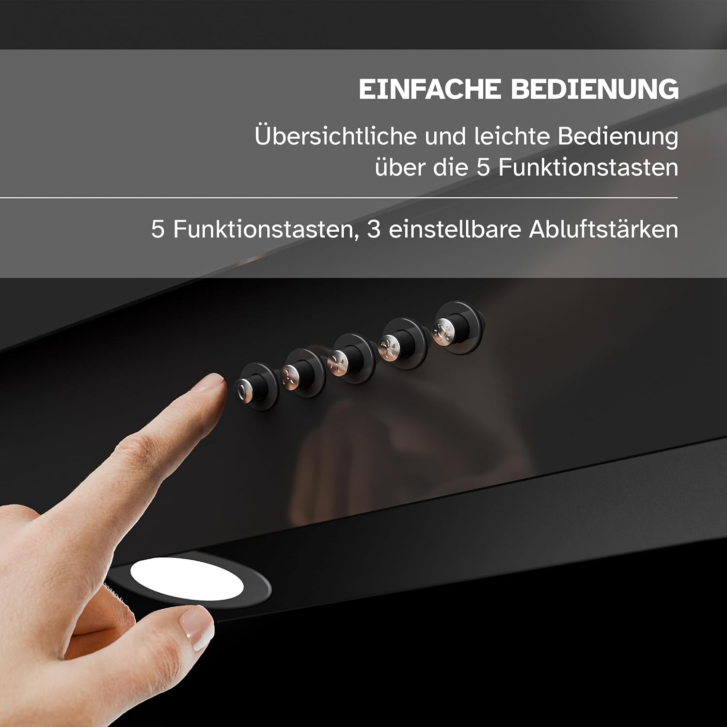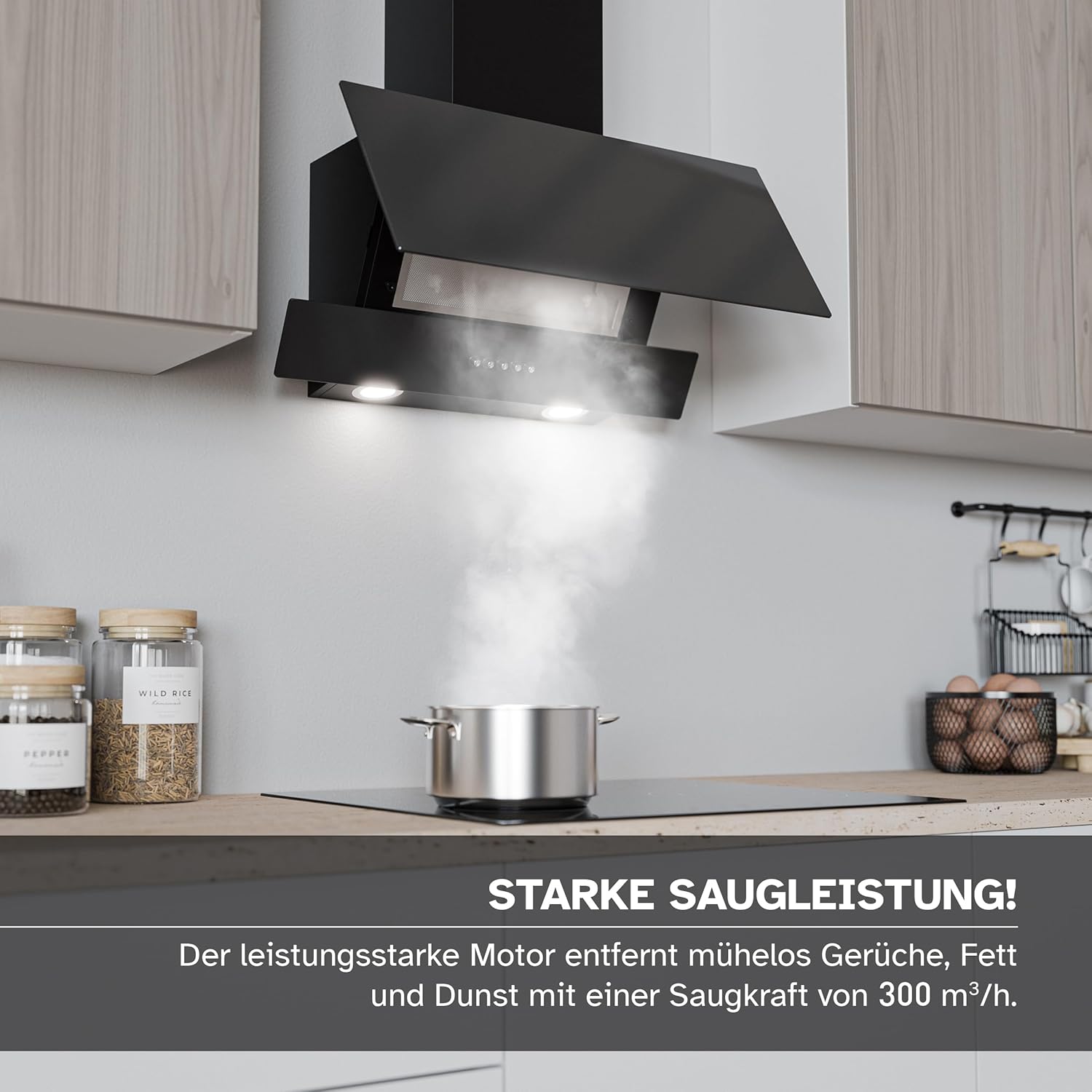 ✅ Effektiv und konform: Die Dunstabzugshaube hat eine hohe Abzugsleistung von 300 m³/h, mit der Sie Ihre Küche von unangenehmen Gerüchen reinigen und für eine klare Sicht in der Kochumgebung sorgen. Sie können die Saugkraft in 3 unterschiedlich starken Geschwindigkeiten einstellen und erreichen dabei auch bei voller Leistung gerade mal 61dB, wodurch ein angenehmes Kocherlebnis gegeben ist. 🍀 Simpel und effizient: Mit den Drucktasten für die Einstellung der Abzugsleistung und Beleuchtung ist das Gerät kinderleicht zu bedienen. Noch dazu sorgen die beiden 2W starken LED-Leuchten für eine umfassend hell ausgeleuchtete Kochfläche und bieten dank guter Effizienzwerte eine kostensparende Lösung. 💎 Hochwertig und praktisch: Montieren Sie die 60cm breite Dunstabzugshaube passend in Ihre Küche und profitieren Sie durch das platzsparende Design, da dieses für genügend Kopffreiheit beim Kochen sorgt. Das moderne schwarze Gehäuse lässt die Dunstabzugshaube in jeder Küche zu einem echten Blickfang werden. 👍 Flexibel und innovativ: Wählen Sie ganz nach Ihren Wünschen zwischen einer Umluft oder Abluft-Montage. Das Gerät verfügt über mehrere mitgelieferte Aktivkohlefilter für den Umluftbetrieb. Diese Kohlefilter helfen Ihnen unangenehme Gerüche und überschüssiger Dampf effektiv zu entfernen und in saubere Luft umzuwandeln. 🎁Freude beim Verschenken: Überraschen Sie Ihre Liebsten mit unseren Produkten. Wir stehen Ihnen auch dort mit Rat und Tat zur Seite. | قیمت یورویی : 99.99€