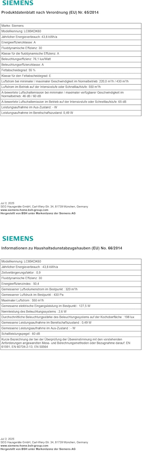 Siemens LC65KDK60 Wandesse iQ100, Dunstabzugshaube zur Wandmontage, 60cm breit, Intensivstufe, LED-Beleuchtung, touchControl, Metallfettfilter, Schwarz | قیمت یورویی 334.98€