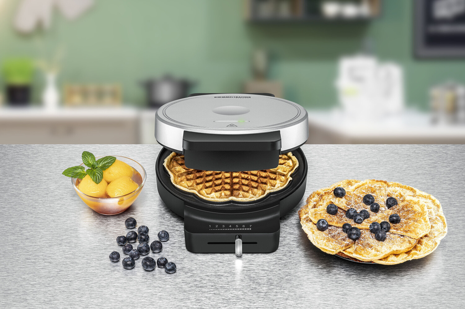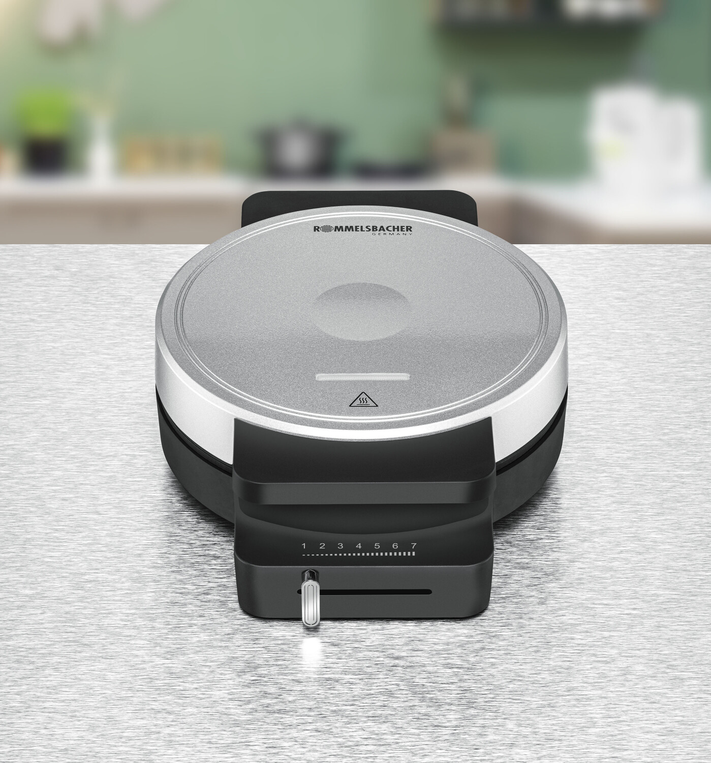 وافل‌ساز برقی روملزباخر آلمان WA 850 با صفحات نچسب و توان 850 وات به‌سادگی وافل‌های خوش‌طعم را در خانه تهیه می‌کند. طراحی جمع‌وجور و کنترل دما، پختی یکنواخت و جذاب را فراهم می‌کند.