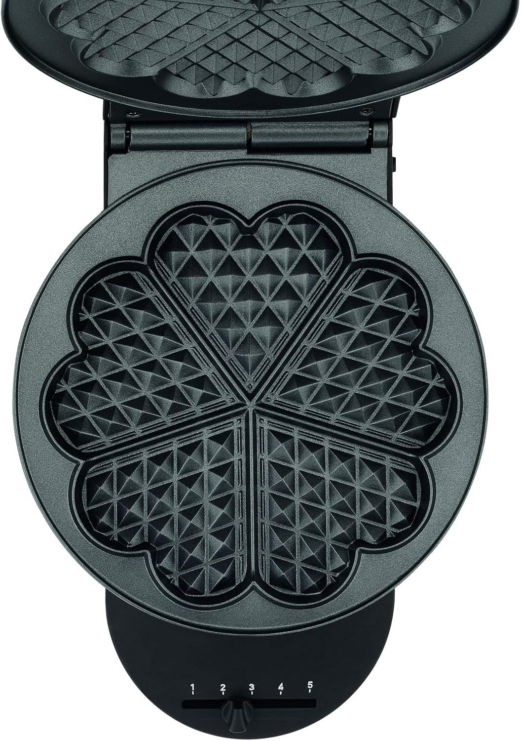 Waffeleisen für feine Waffeln in Herzform Individuell ideale Herzwaffeln dank Betriebs- und Temperaturkontrollleuchte und stufenlos einstellbarem Temperaturregler Praktische Reinigung der antihaftversiegelten Platten, da die Waffeln nicht anbrennen Sichere Verwendung dank Ein-/Aus-Schalter und wärmeisoliertem Griff 1000W für schnellen Waffelgenuss 20cm Durchmesser für 5 Herzwaffeln gleichzeitig | قیمت یورویی : 42.99€