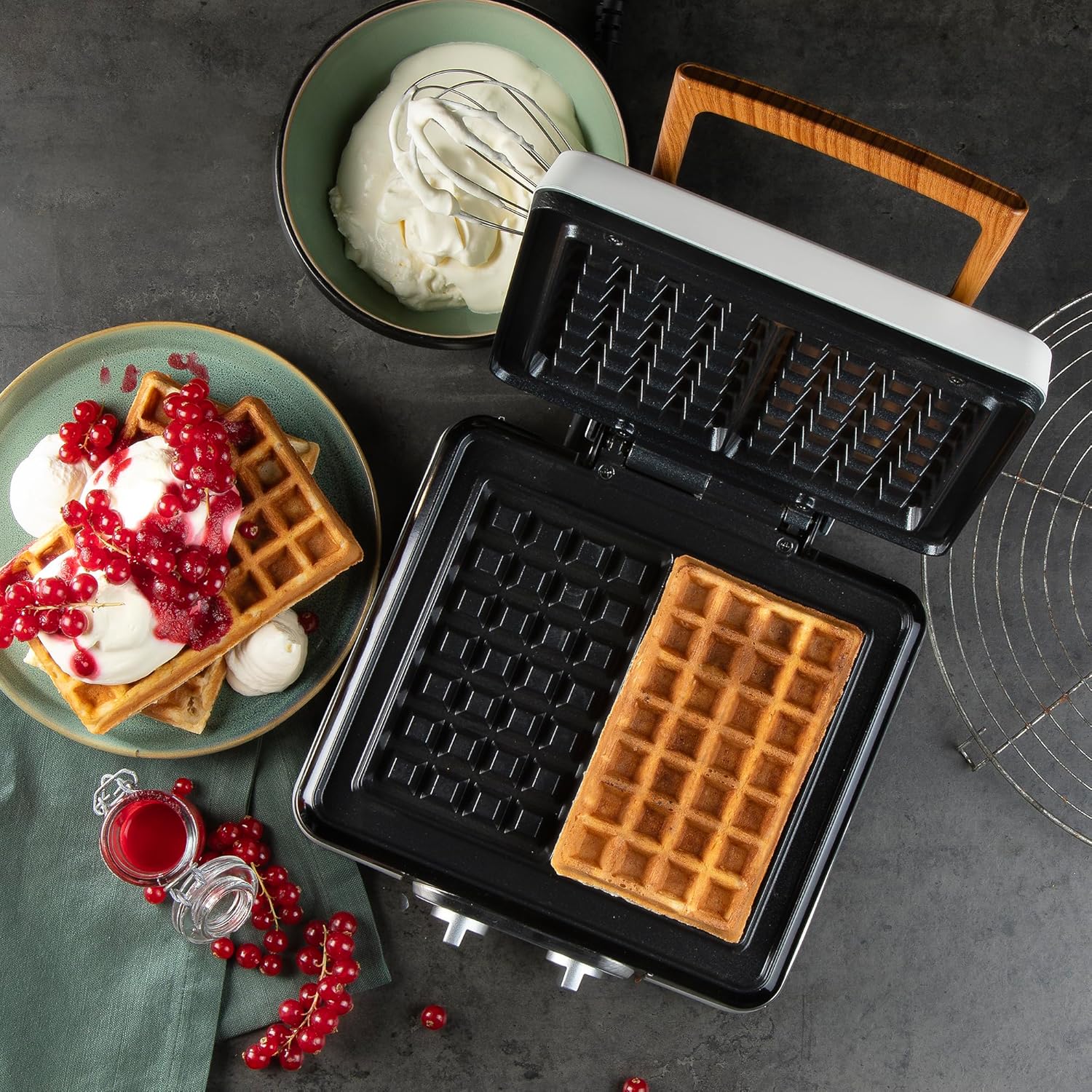 GLEICHMÄSSIG GEBACKENE BELGISCHE WAFFELN – Das DOMO Waffeleisen DO9280W besitzt tiefe Backplatten (4 x 7) für luftige Waffeln mit knuspriger Kruste und klassischem belgischem Muster INTUITIVE TEMPERATUR- UND ZEITSTEUERUNG – Mit Thermostat und integriertem Timer wird der Waffelmaker zur perfekten Wahl für individuelle Bräunungsgrade und Backzeiten PFAS-FREIER DOPPELWAFFELEISEN – Die keramische Antihaftbeschichtung des DO9280W verhindert Ankleben und ermöglicht eine einfache Reinigung ohne aggressive Reinigungsmittel KOMPAKTER WAFFELAUTOMAT MIT KOMFORTFUNKTIONEN – Kontrollleuchten, Antirutschfüße und Kabelaufwicklung machen diesen Waffelautomat besonders praktisch im Alltag MODERNES DESIGN IN POWDER WHITE – Der stilvolle DOMO Waffelmaker ist kompakt, platzsparend und passt optisch in jede Küche – ein Must-have für jeden Waffelliebhaber | قیمت یورویی : 74.66€