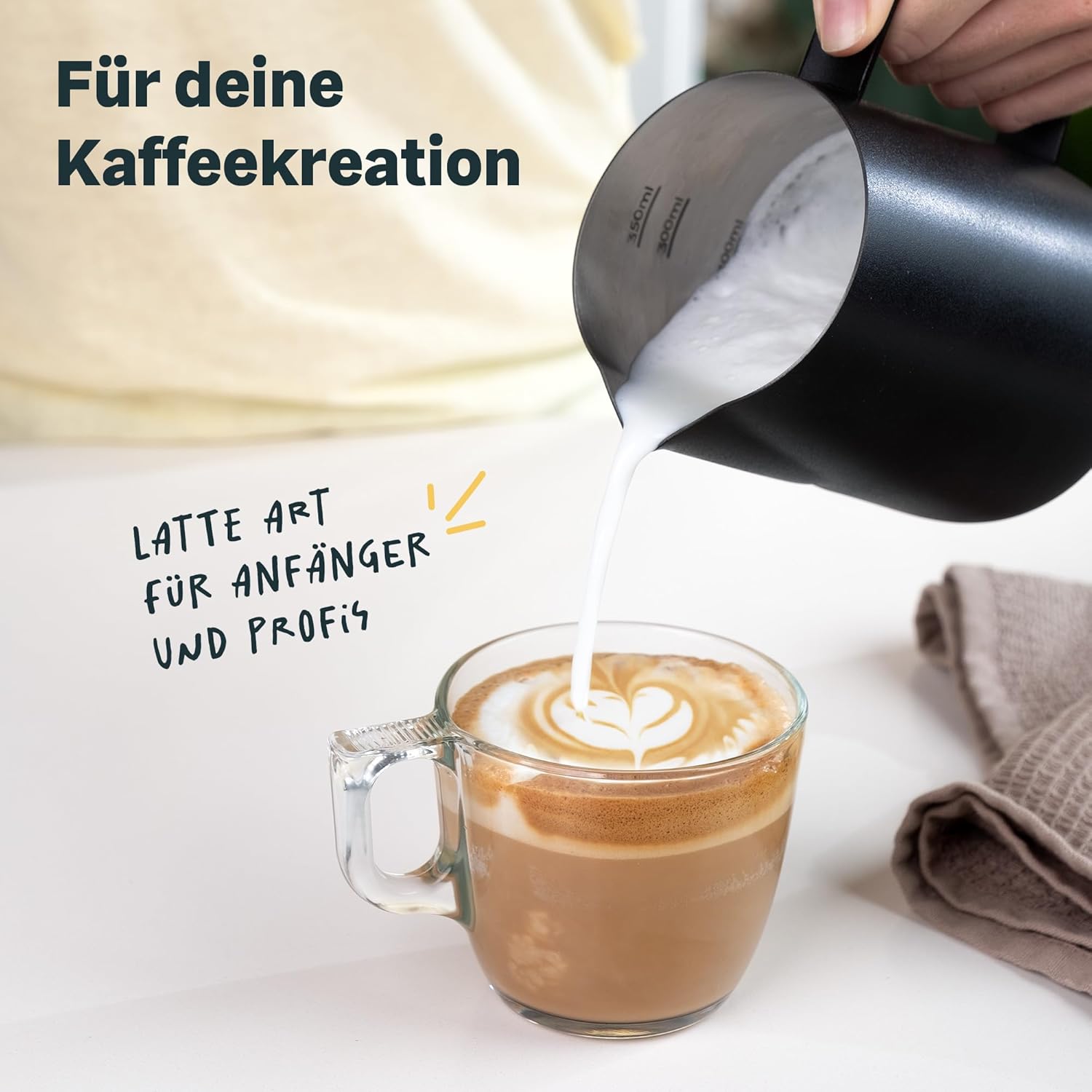 ✨ Perfekter Milchschaum für Cappuccino & Latte Mit unserem hochwertigen Milchkännchen aus Edelstahl (350ml & 500ml) gelingen 1–2 Cappuccinos oder ein cremiger Latte Macchiato mühelos – ob zu Hause oder im Coffeeshop. Genieße immer perfekten Milchschaum wie vom Barista! ☕ Ausgießtülle für präzise Latte Art Dank spezieller Ausgießform und ergonomischem Griff wird präzises Gießen und kreative Latte Art kinderleicht. Schaffe beeindruckende Designs auf deinen Kaffeespezialitäten! 🥛 Vielseitig einsetzbar – mehr als nur Milch Ideal zum Aufschäumen, Abmessen und Ausgießen von Milch, Sahne oder Dessertsaucen. Dein stilvoller Begleiter für Küche, Kaffeebar oder feine Dinnerpartys. 🛡️ Robuster Edelstahl für beste Haltbarkeit Das Milchkännchen besteht aus langlebigem Edelstahl mit erhöhten Rändern für optimalen Aufschwung beim Schäumen. Perfekte Kontrolle, hohe Stabilität und elegantes Design in einem! 🧽 Einfache Reinigung für langanhaltende Freude Wir empfehlen die sanfte Handwäsche, damit dein Edelstahl Milchkännchen lange glänzt und funktional bleibt. Pflegeleicht und immer einsatzbereit! | قیمت یورویی : 12.95€