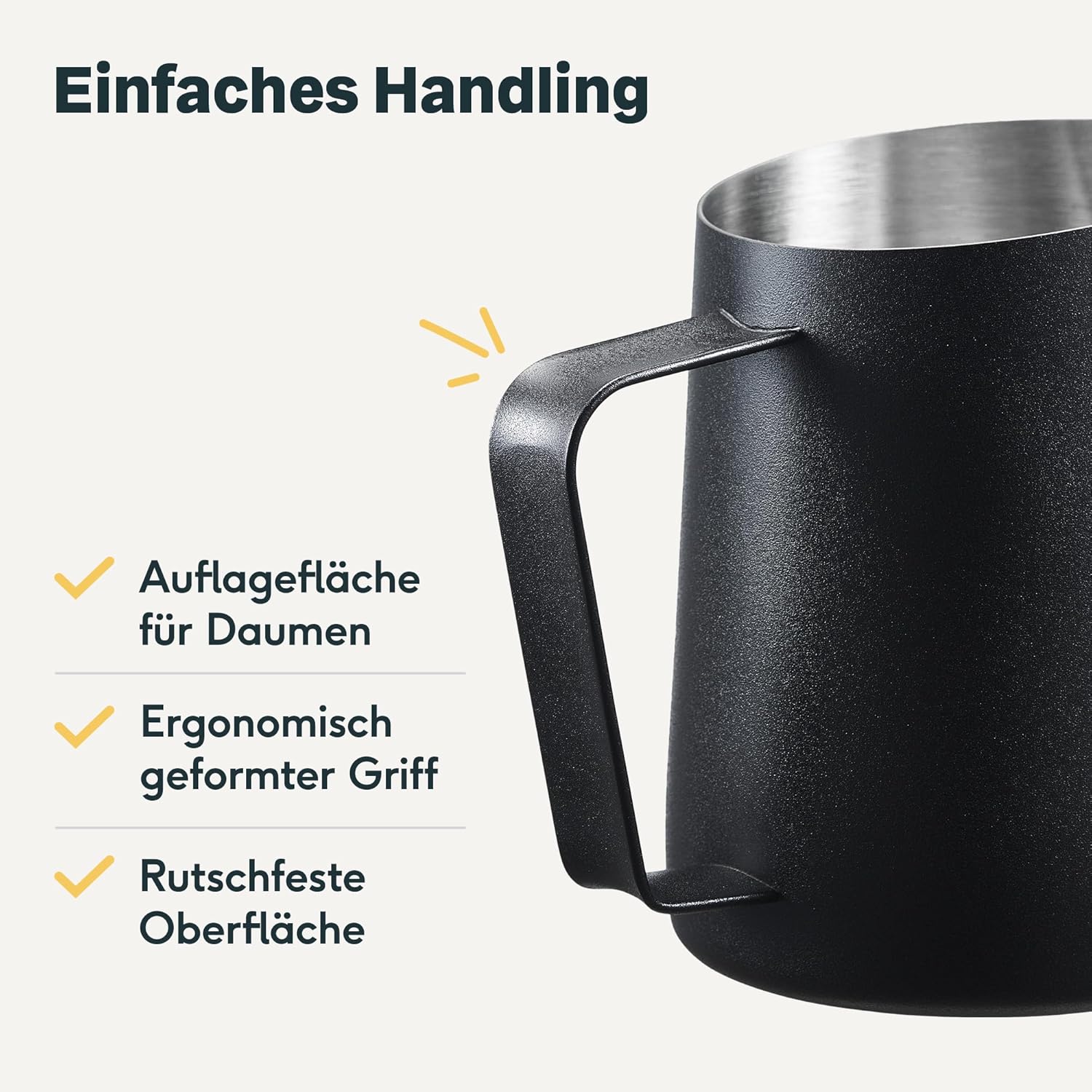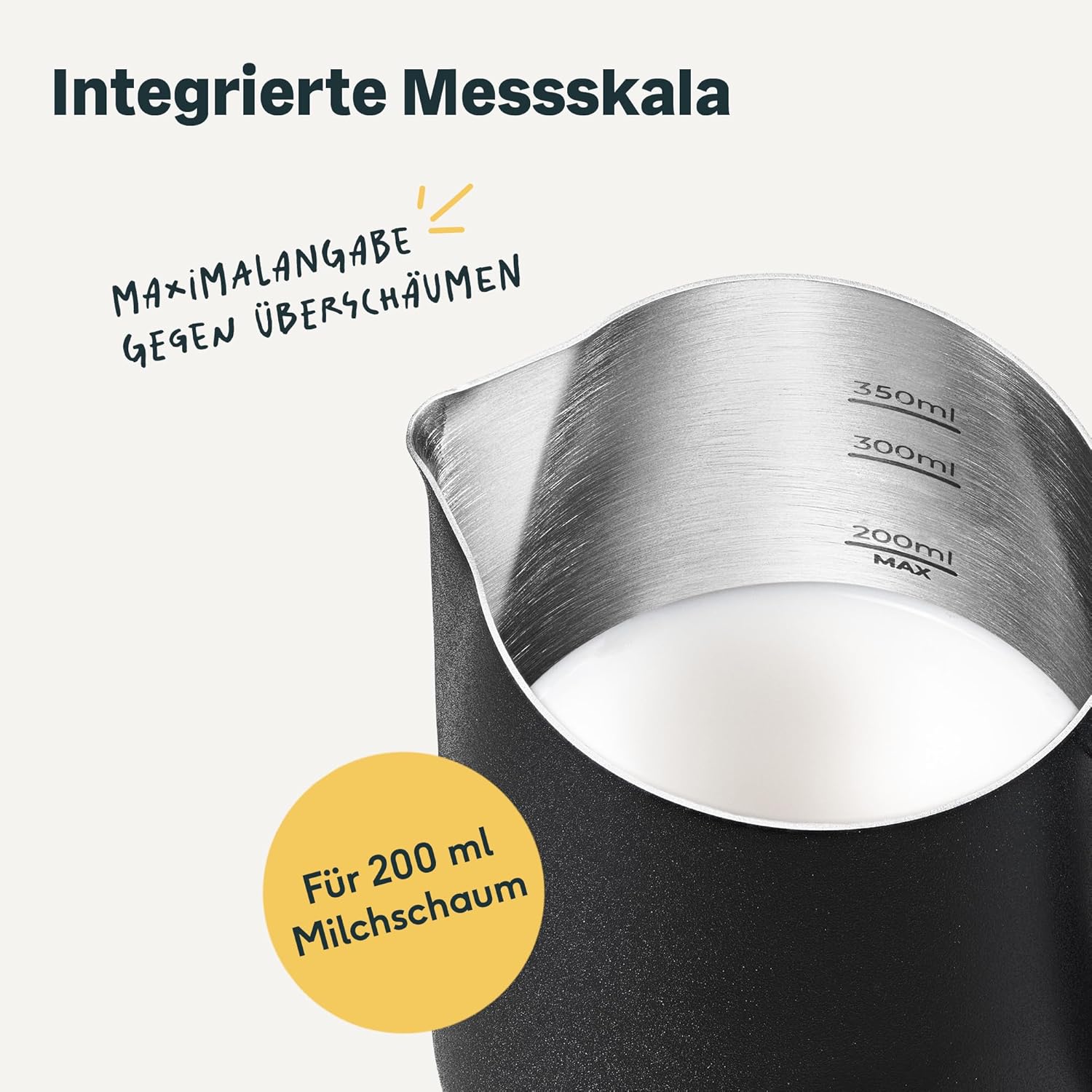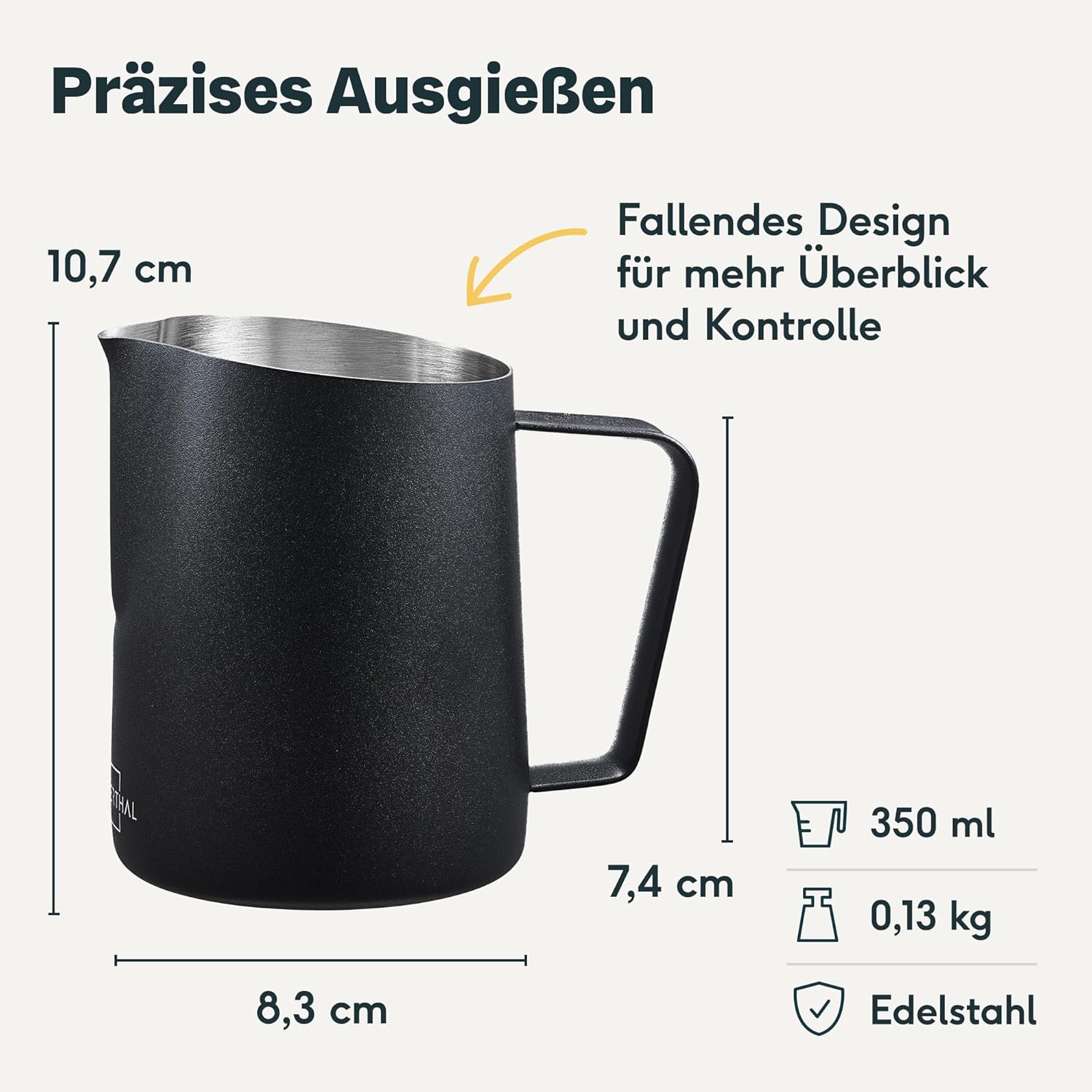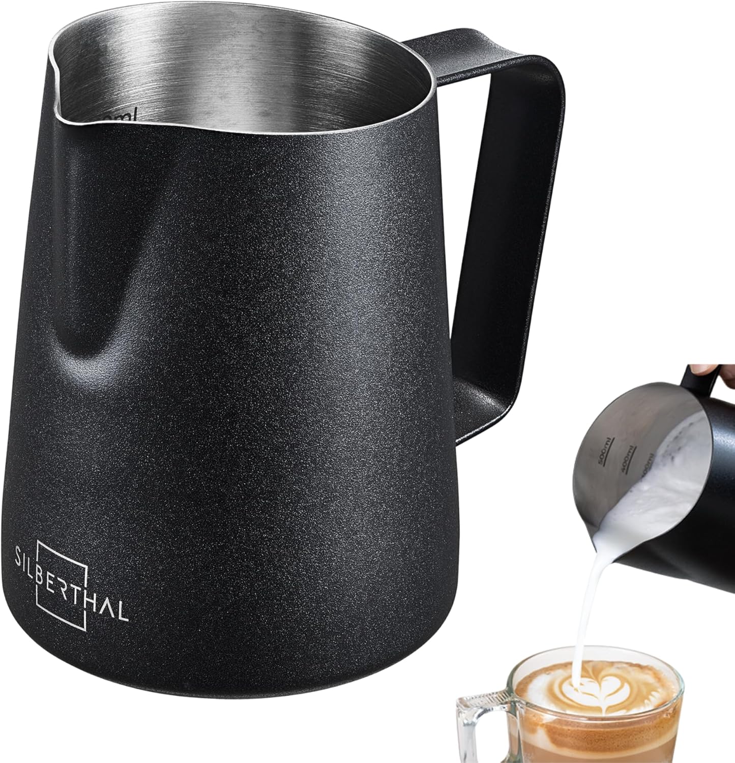 SILBERTHAL Milchkännchen Edelstahl 350ml schwarz - Professionelles Barista Zubehör mit Latte Art Ausguss - Milchschaumkännchen für Siebträger 350 ml | قیمت یورویی 12.95€