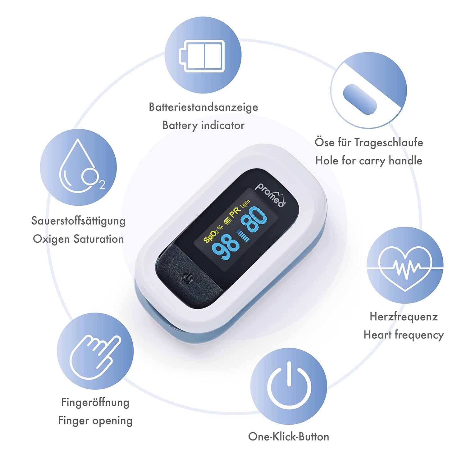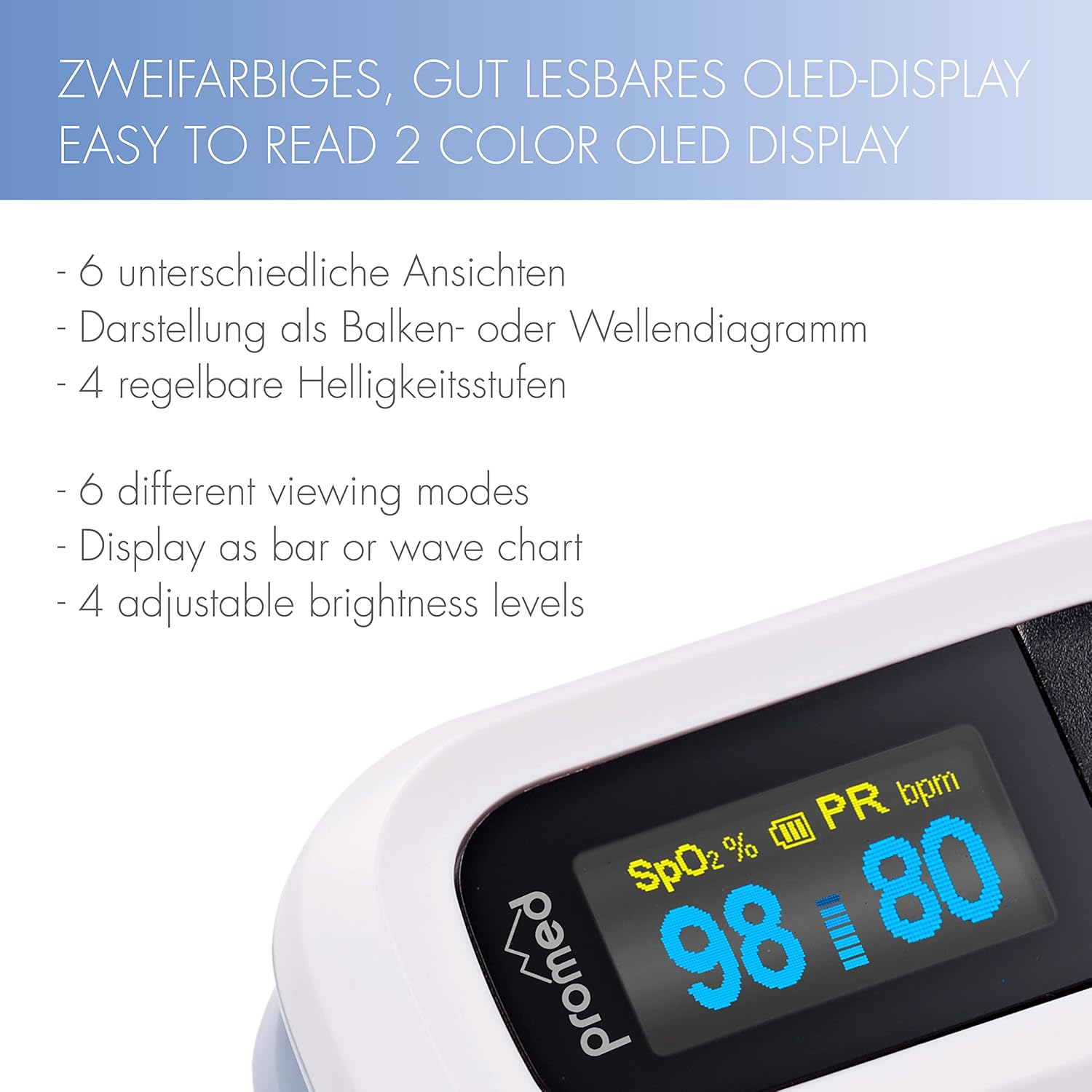 Promed Pulsoximeter PM-200 Pro, Einfache Messung von Herzfrequenz & Sauerstoffsättigung im Blut, Fingerpulsoximeter mit OLED-Display & Abschaltautomatik | قیمت یورویی 23.26€