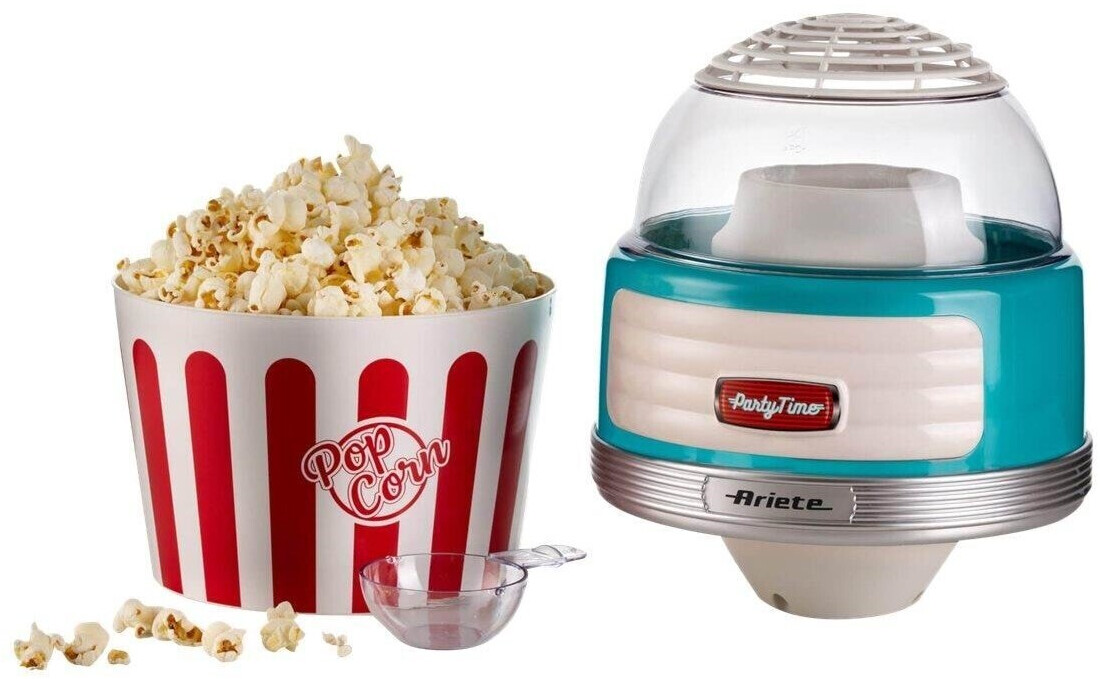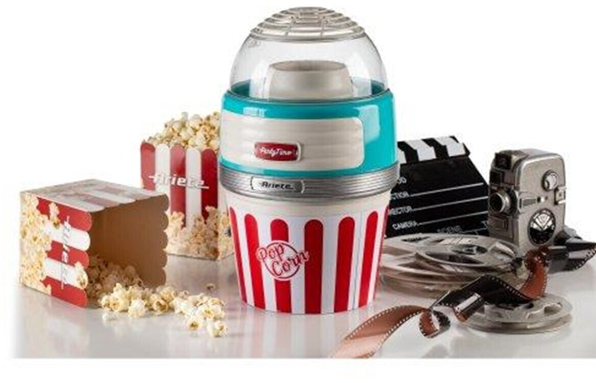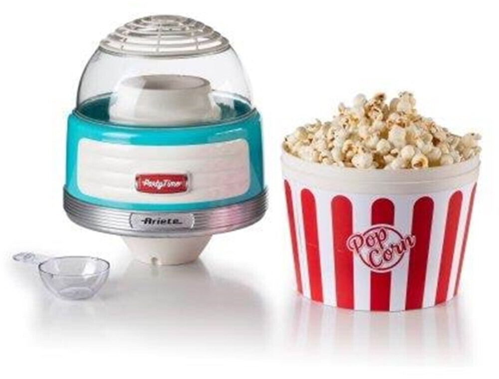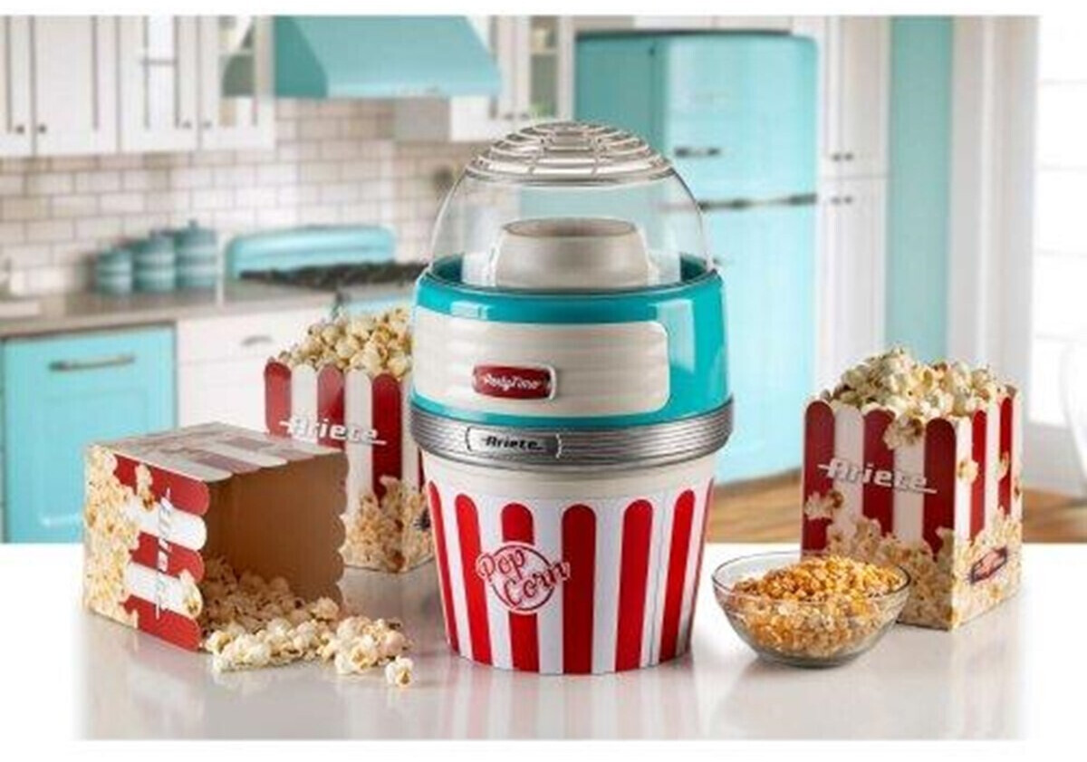 پاپ کورن ساز Ariete مدل Party Time XL با رنگ آبی و سبک نوستالژیک، گزینهای کاربردی و زیبا برای تهیه میان وعدهای سالم و کمچرب در خانه است.