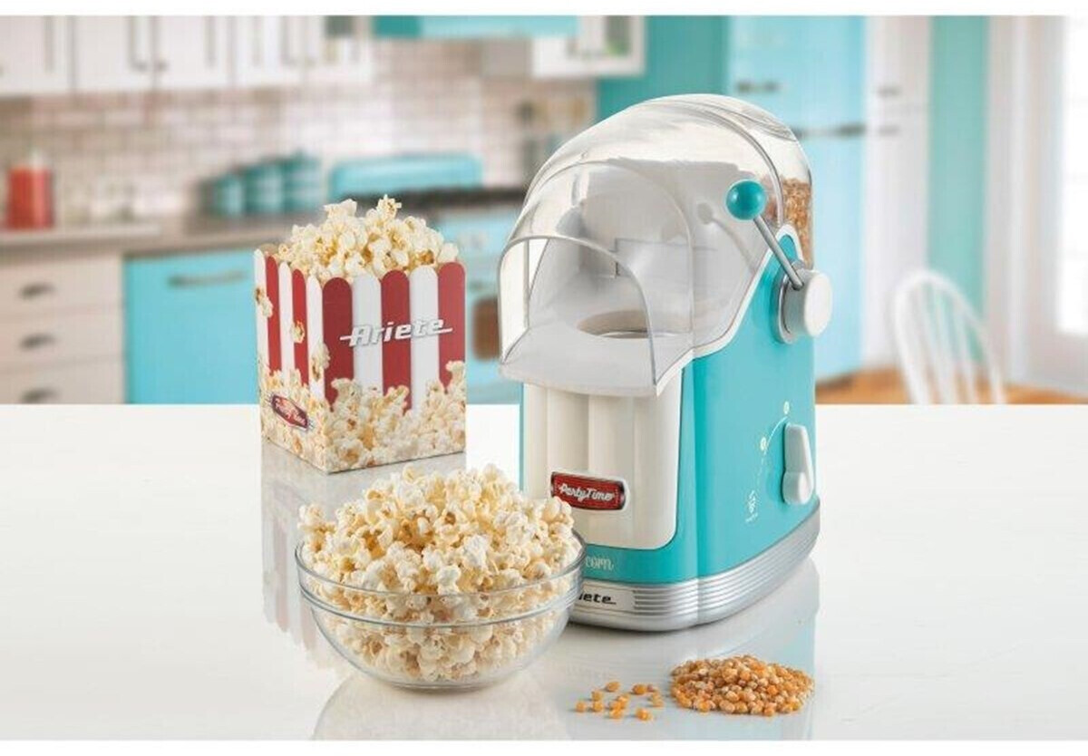 پاپ کورن ساز Ariete مدل Party Time با رنگ آبی و ظاهر شاد، انتخابی سالم و سرگرم کننده برای تهیه پاپ کورن خانگی است.