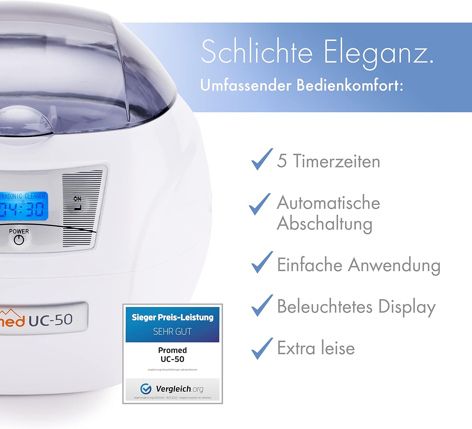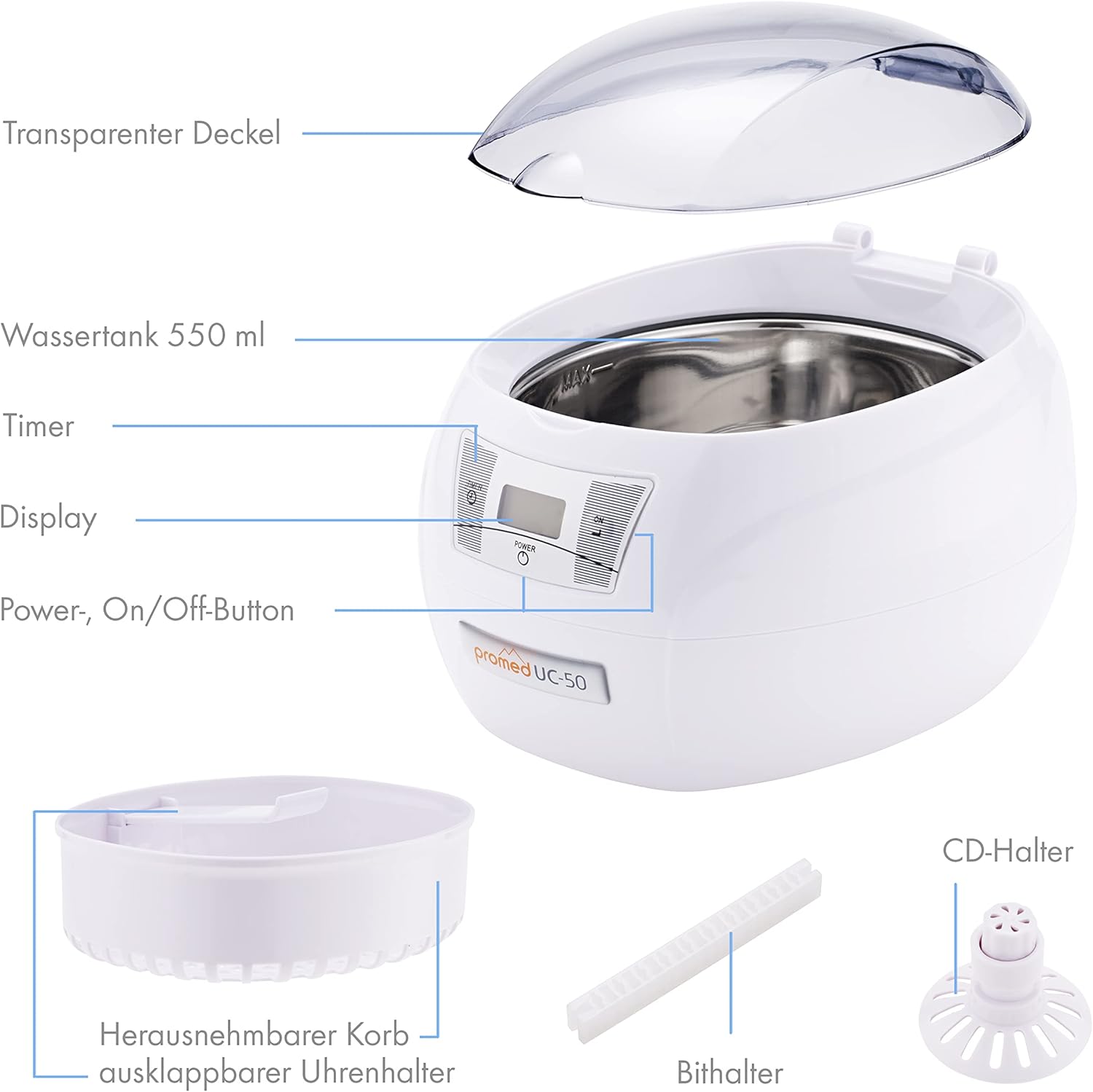 PROMED Ultraschallreinigungsgerät UC-50, Ultraschallreiniger für Schmuck Uhr Zahnersatz und Brille, 550ml Ultraschallgerät für zuhause, Ultraschallbad 5-Stufen-Timing 43000 Hz | قیمت یورویی 39.75€