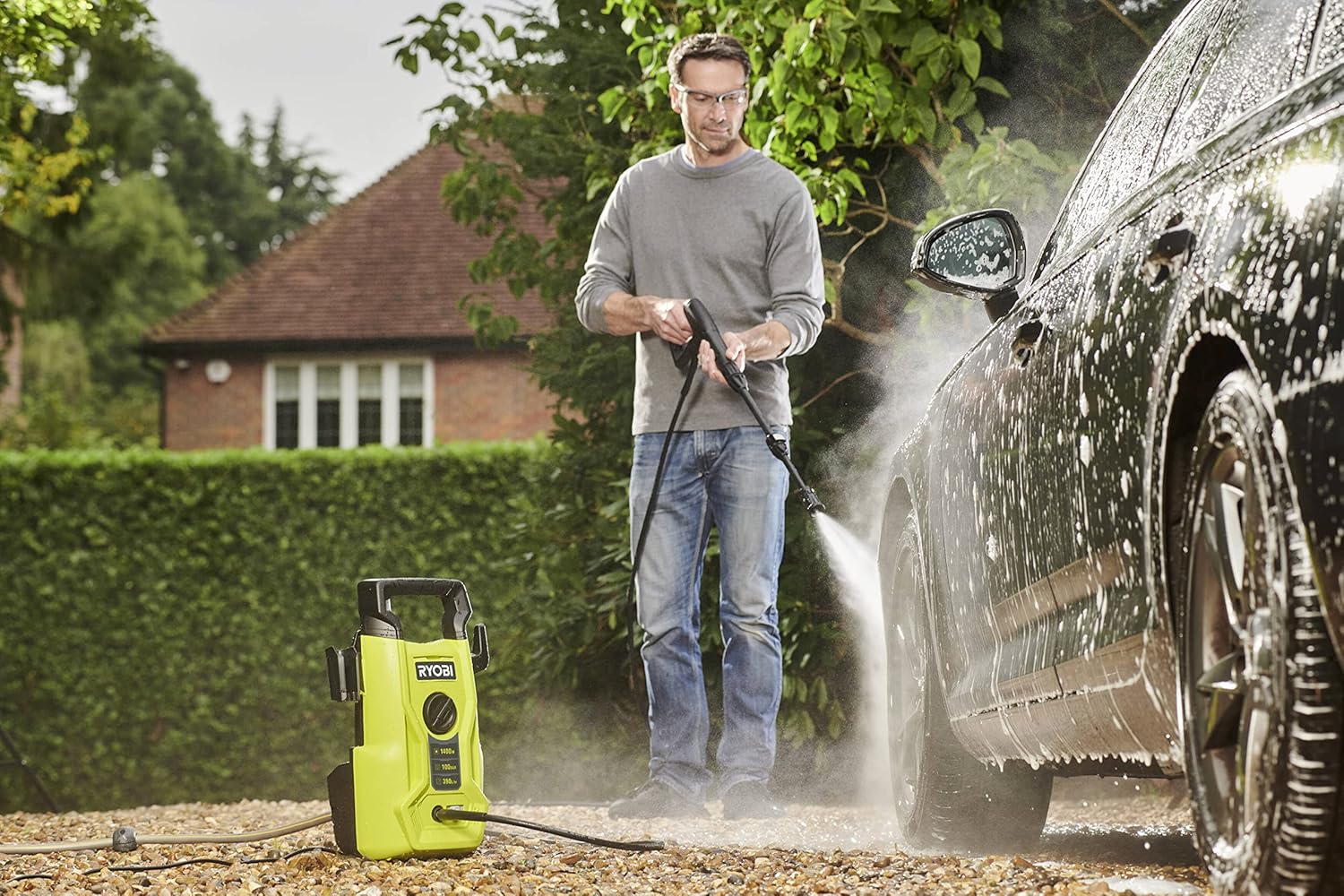 RYOBI 1400W Elektro-Hochdruckreiniger RY100PWA (100bar Druck, 390l/h Födermenge, 40° Wassertemperatur, Aluminiumpumpe, 5m Schlauch, 5m Kabel inkl. Variostrahlrohr), Grün | قیمت یورویی 64.61€