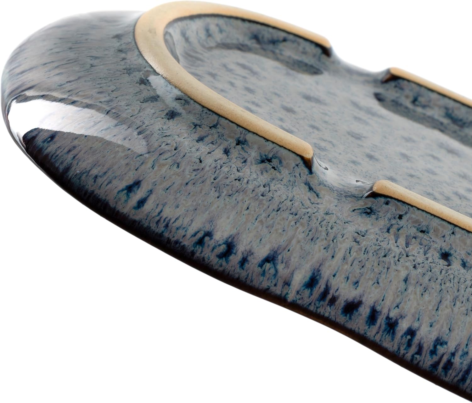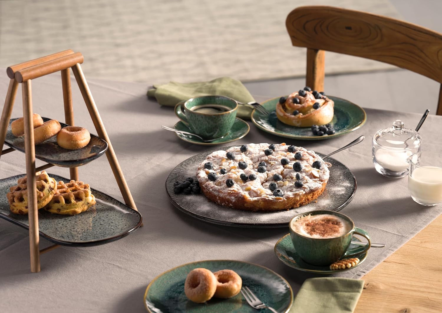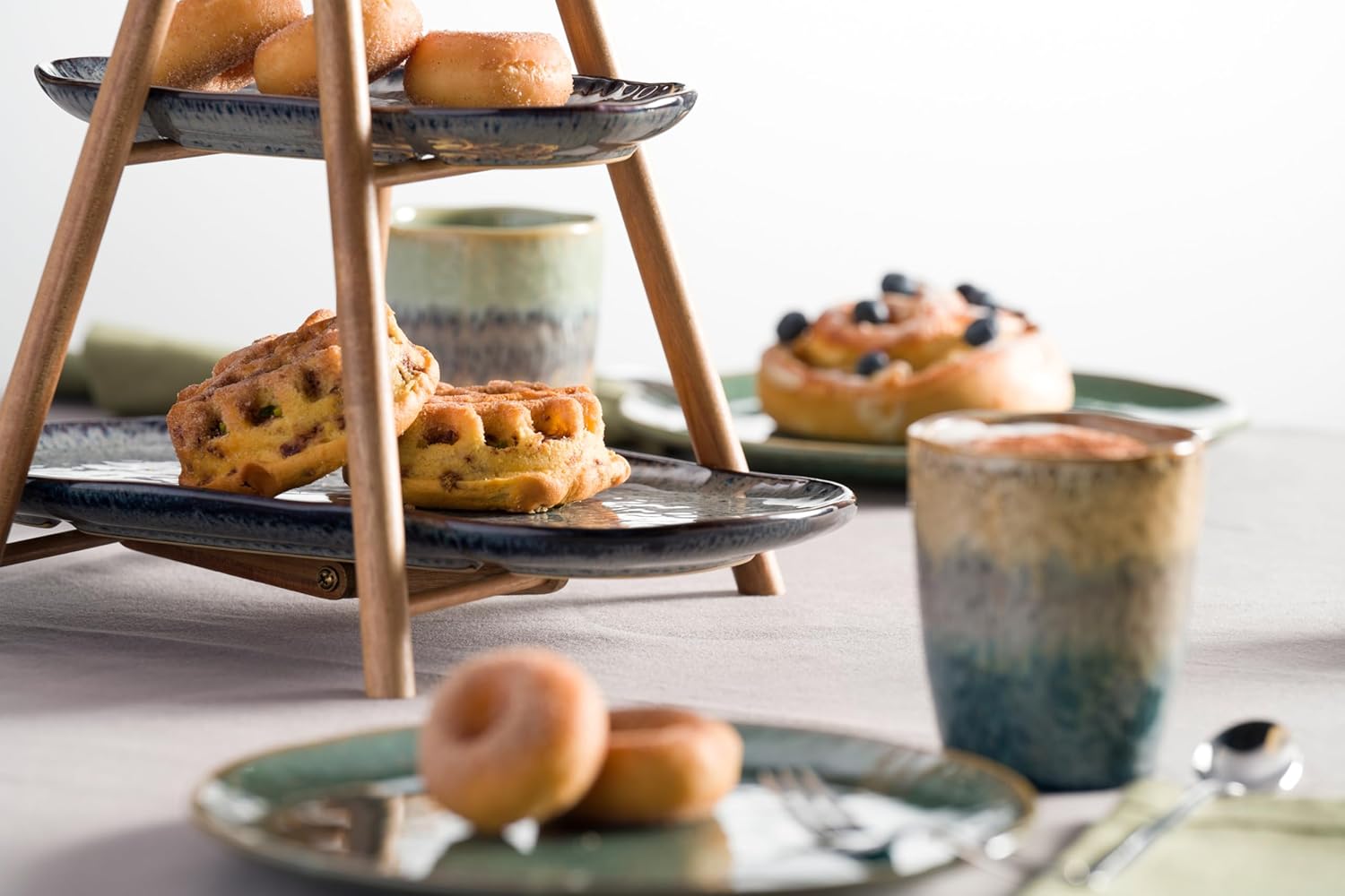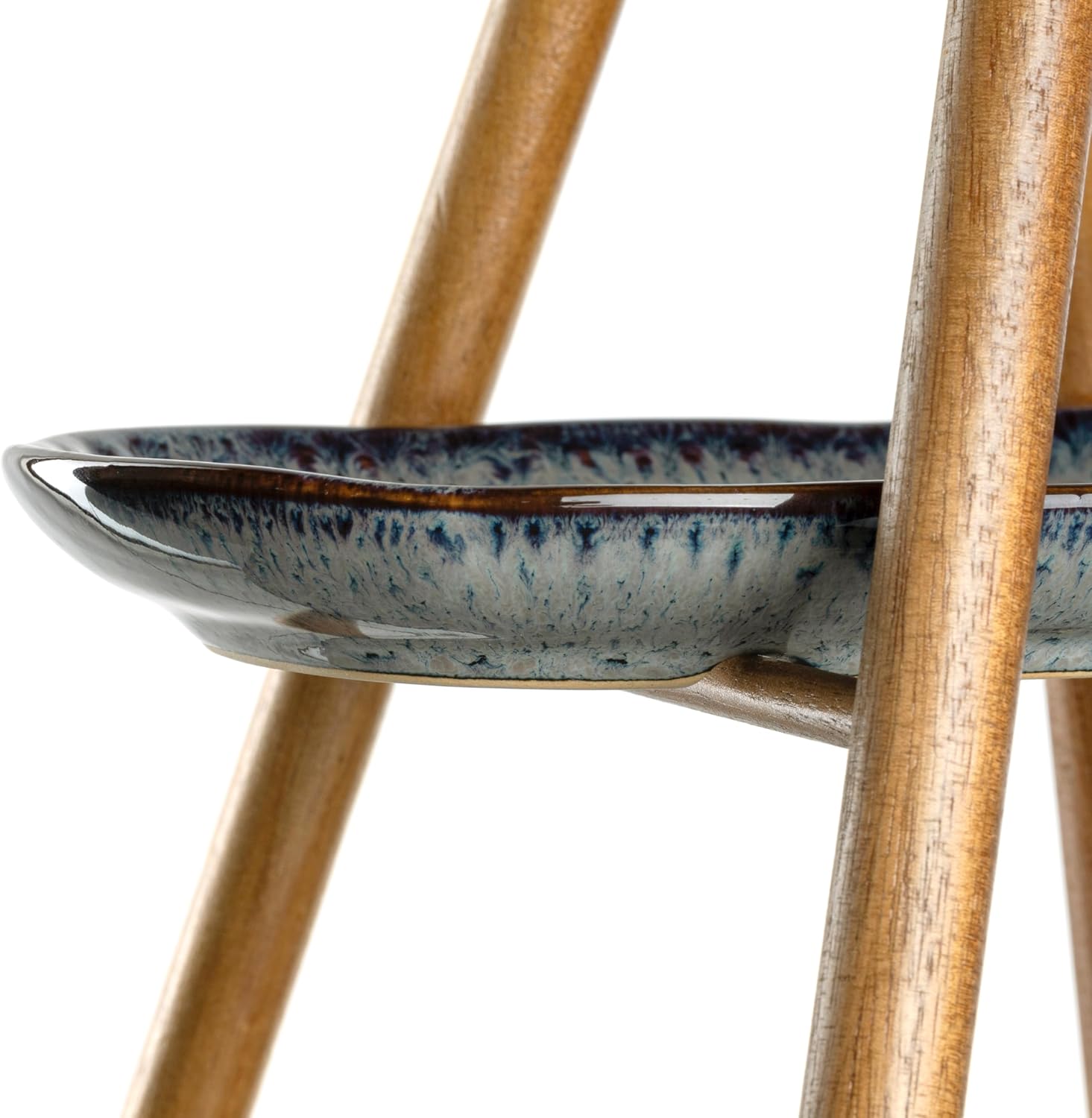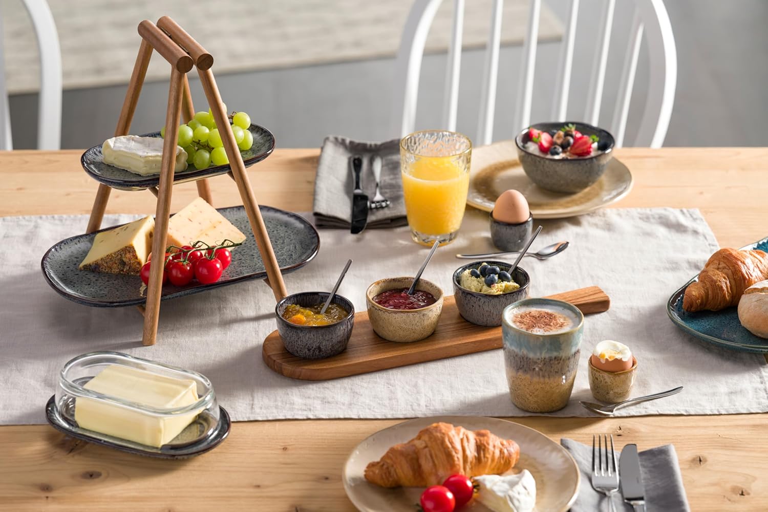 Stil: Zwei ovale Servierplatten in einer kleinen Etagere mit zwei Etagen. Ideal zum Anrichten von Snacks, Antipasti, Käse, Süßigkeiten und mehr. In rustikalem Landhausstil mit individuellem Farbverlauf und Muster dank der handaufgetragenen Effekt-Glasur. Material: Die beiden Keramik-Servierplatten in klassischem Anthrazit und können entnommen und in der Spülmaschine gereinigt werden. Zusammen mit dem Gestell aus Holz entsteht eine Etagere in wunderschönem Landhausstil, perfekt für Bufett und Tisch. Anwendung: Die 2 rechteckigen Schalen der kleinen Etagere sind aus langlebiger Keramik und können einfach herausgenommen werden. Sie bieten ausreichend Platz für kleine Köstlichkeiten und es kann darauf geschnitten werden. Auch perfekt als Küchendeko. Vielseitig: Die Mini Etagere kann zum Servieren von Gebäck, Obst, Süßigkeiten, Sushi, Tapas, Antipasti bei verschiedenen Anlässen verwendet werden. Mit den Matera Platten ist stilvoller Genuß garantiert. Kombinierbar mit anderen Produkten aus der Serie. Daten: 1 Etagere bestehend aus 2 ovalen Keramikplatten mit Glasur in einem Holzgestell - Zum Anrichten von Speisen - Aus langlebiger Keramik - Reinigung von Hand - 33,6 x 8,2 x 24,5 cm (BxHxT) - Gewicht 1,55 kg - Farbe: Anthrazit, Gestell Holz braun | قیمت یورویی : 66.89€