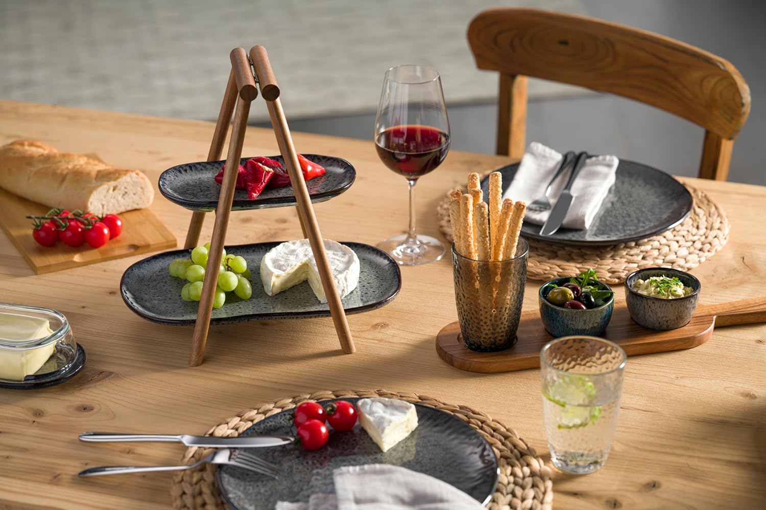 LEONARDO HOME Matera Etagere - Kleine Etagere 2 stöckig aus Keramik und Holz - Eckiger Teller zum Anrichten von Apero, Snacks, Käse etc. - 33,6x8,2x24,5 cm (BxHxT) - Anthrazit, 022854 Anthrazit 33.6 x 8.2 x 24.5 cm Etagere | قیمت یورویی 66.89€