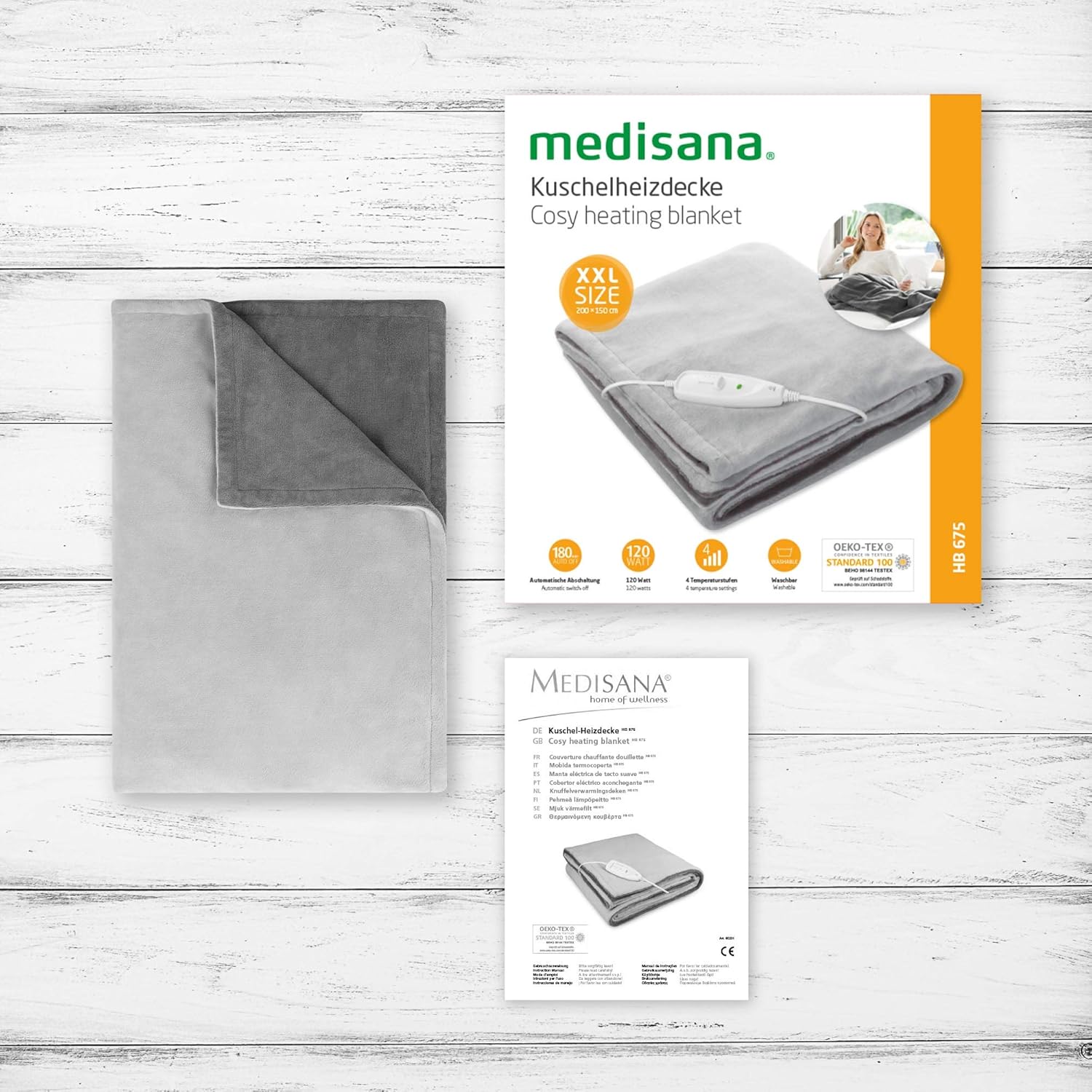 medisana HB 675 Kuschelheizdecke XXL, waschbar, Kuscheldecke mit Abschaltautomatik, 4 Temperaturstufen, 200 x 150 cm, 2-farbig Wendeoptik, grau/dunkelgrau, 1 stück Grau Single | قیمت یورویی 59.99€