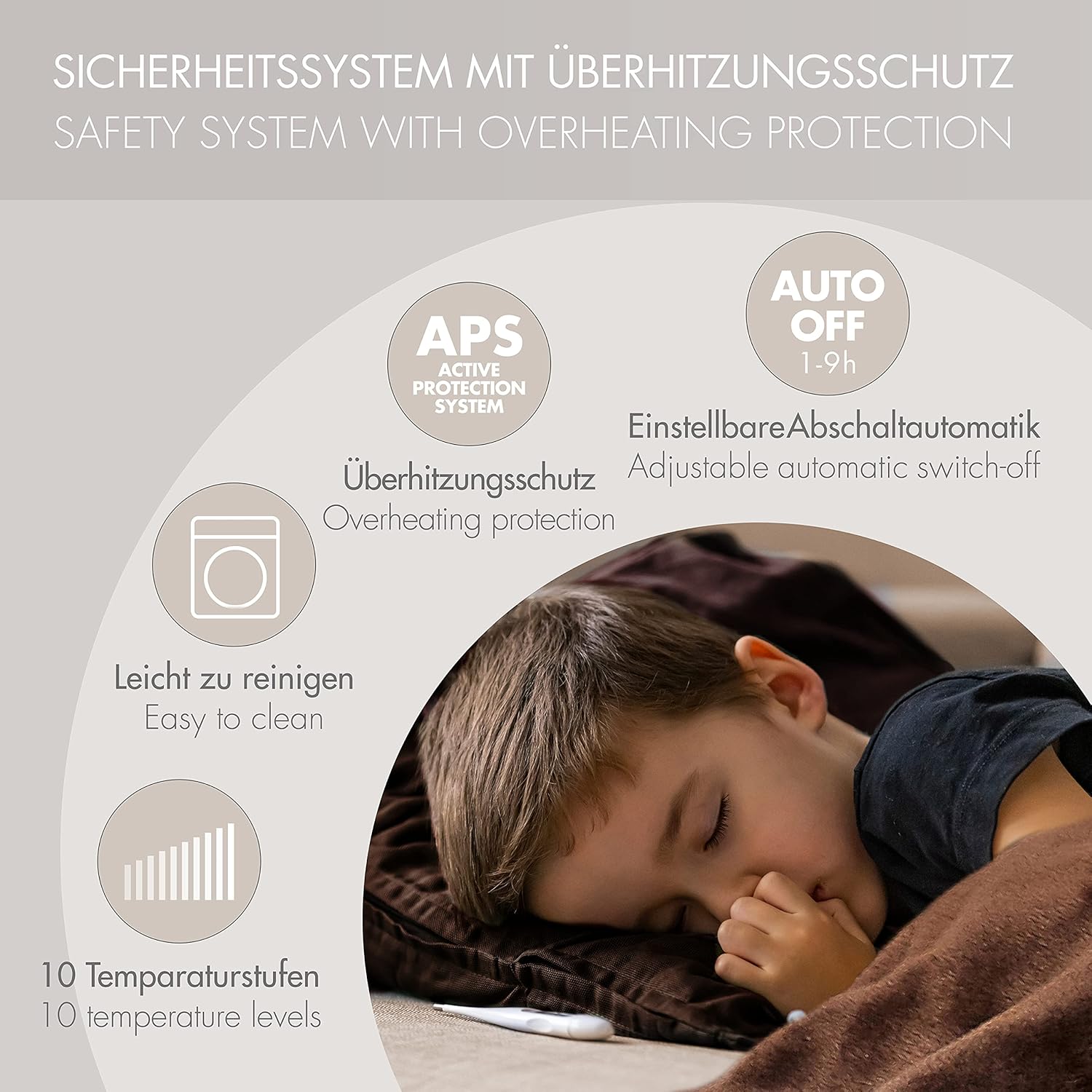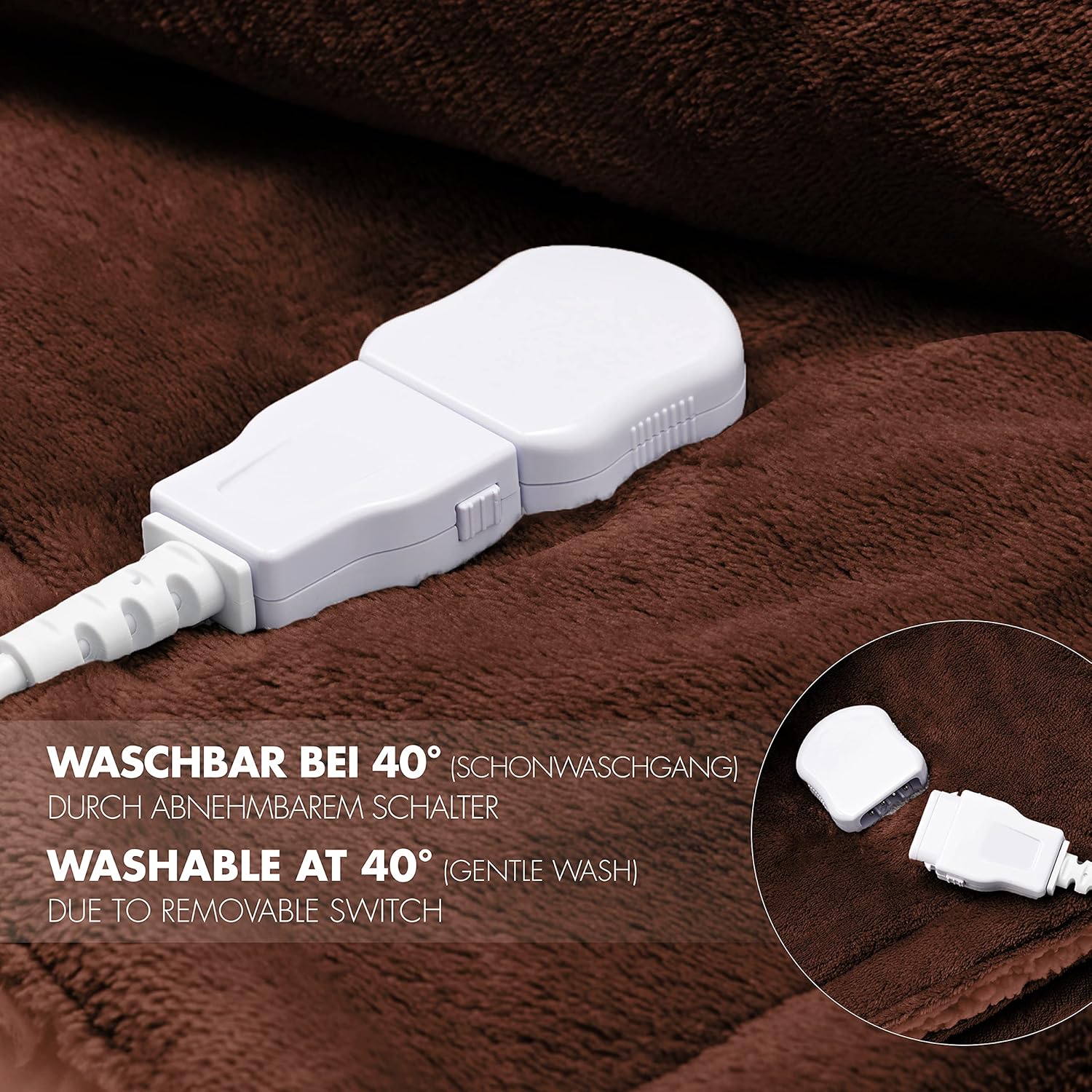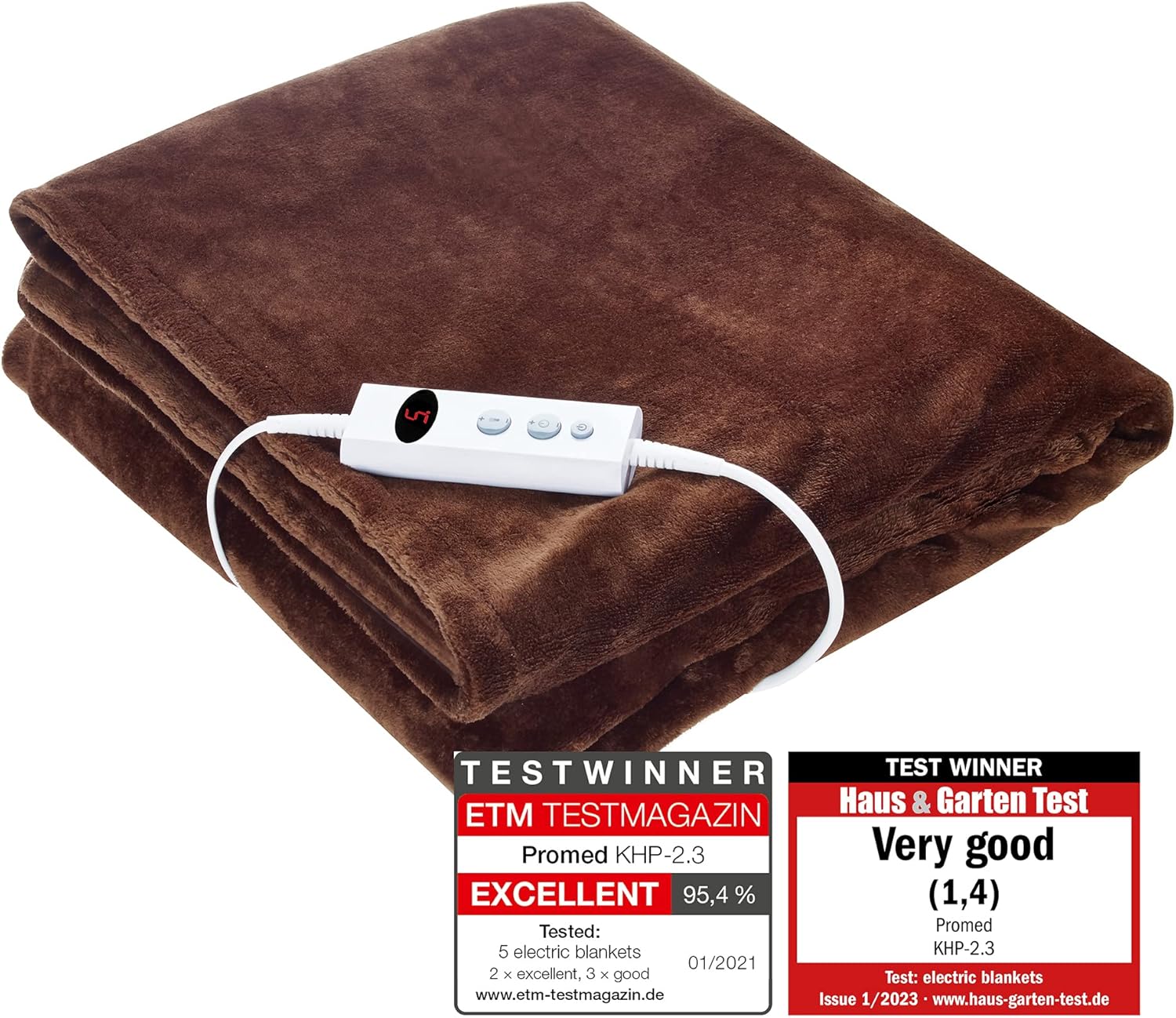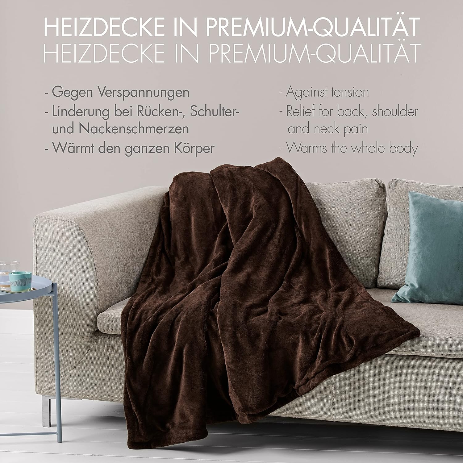 Promed Heizdecke mit Abschaltautomatik Waschbar, Kuschelige Wärmedecke Elektrisch ca 180x130 cm mit 10 Temperaturstufen, Wärmende Decke für Nacken, Schulter & Rücken Brown | قیمت یورویی 56.35€