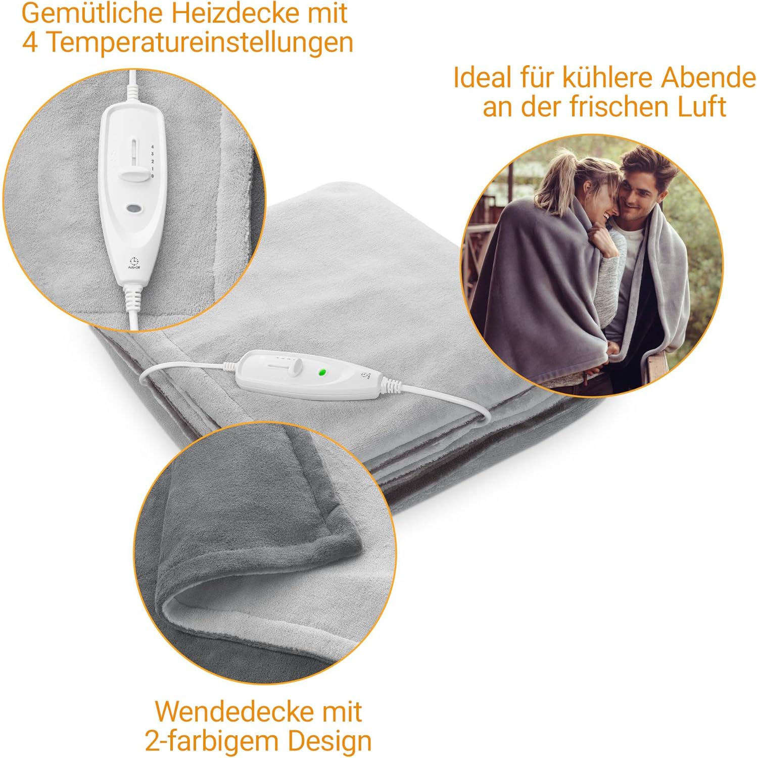medisana HDW Kuschelheizdecke, waschbar, Kuscheldecke mit Abschaltautomatik, 4 Temperaturstufen, 2-farbig Wendeoptik, grau/dunkelgrau, 180 x 130 cm | قیمت یورویی 49.99€