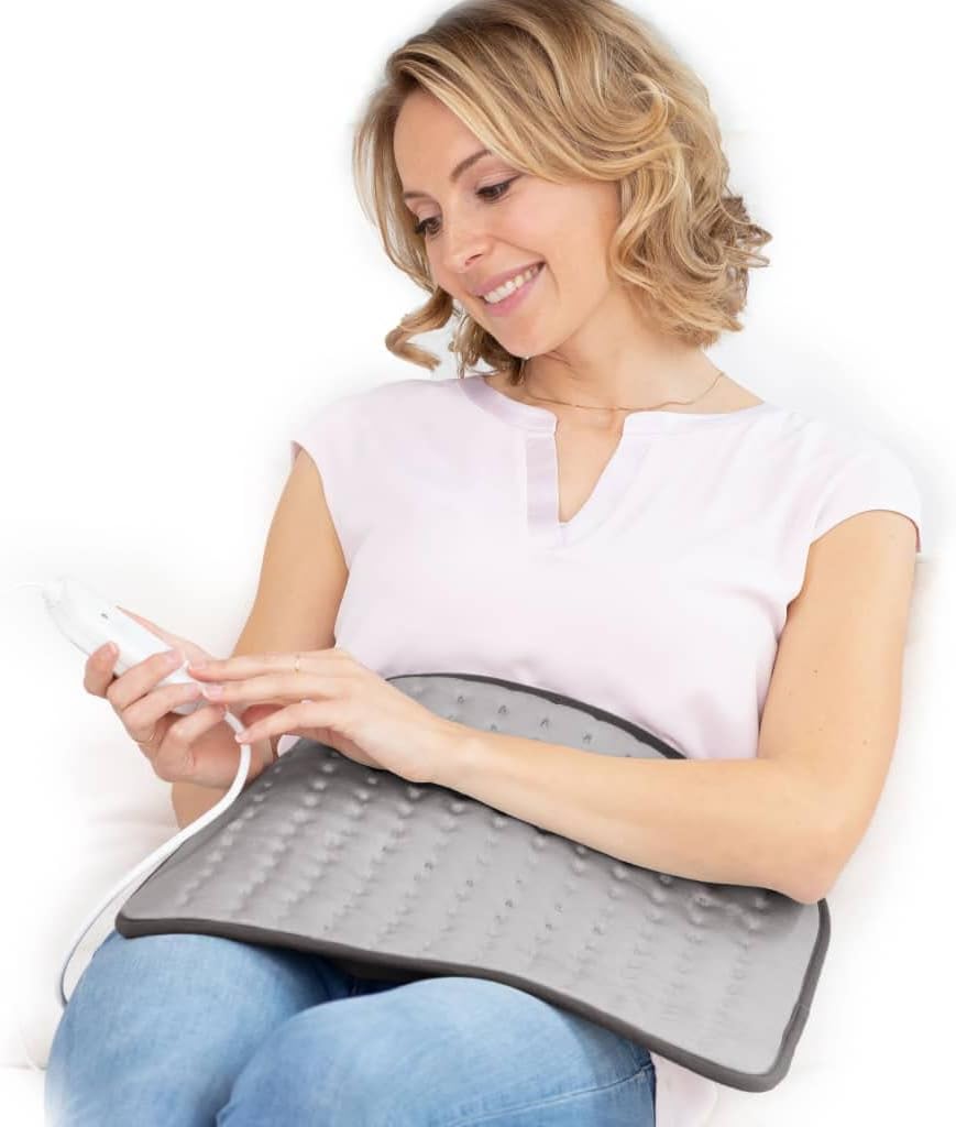 پد گرم کننده Medisana HP 650 XL، 45 × 35 سانتی متر، پد گرم کننده برای کمردرد و گردن درد، با 4 حالت تنظیم دما و محافظت در برابر گرمای بیش از حد، تشک گرم کننده با خاموش شدن خودکار، پد گرم کننده قابل شستشو XL