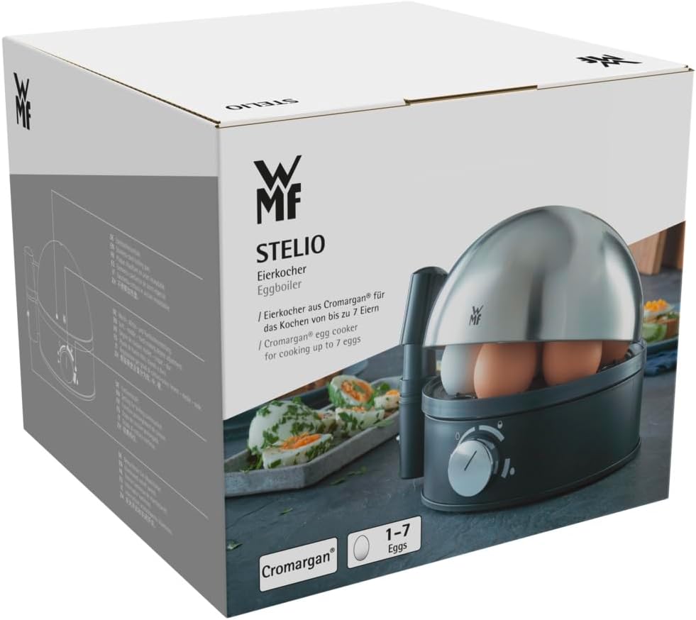 WMF Stelio Eierkocher Edelstahl, Eierkocher 1 Ei -7 Eier, 380 Watt, punktgenaues Zubereiten dank Härtegradeinstellung, Fortkochstufe, Messbecher mit Eipick | قیمت یورویی 29.9€