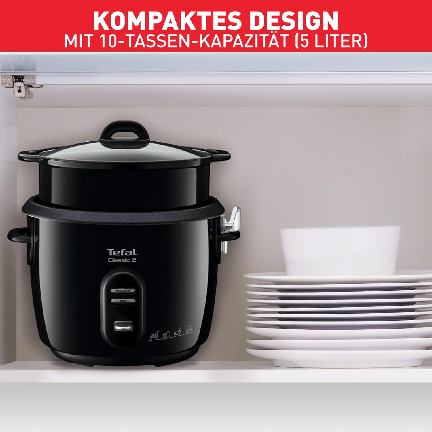 Tefal New Classic Reiskocher RK1038 | automatische Programme | Warmhaltefunktion | 5L Fassungsvermögen | Dampfgarfunktion | schwarz-metallic | قیمت یورویی 80.59€