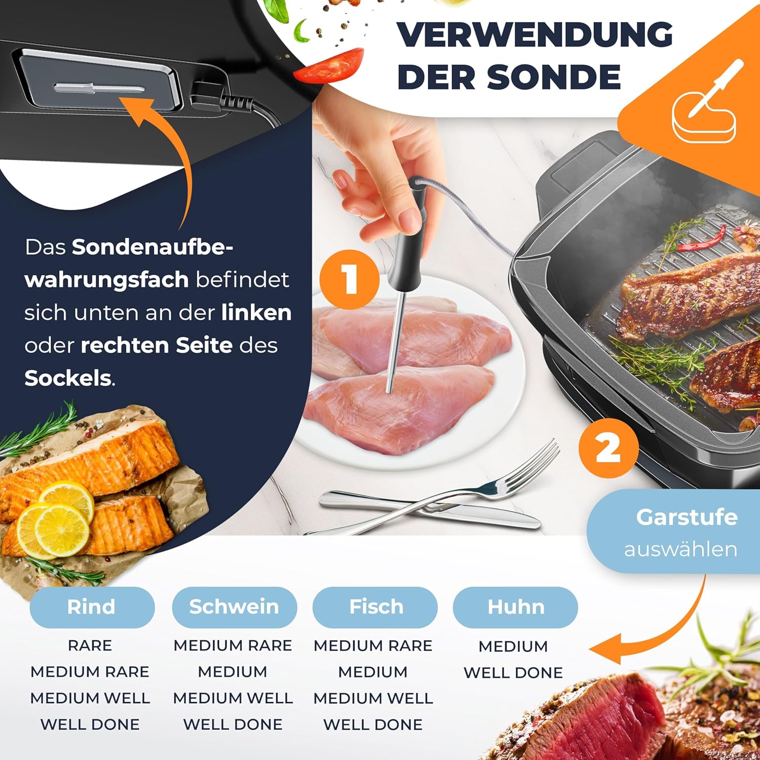 𝐌𝐔𝐋𝐓𝐈𝐅𝐔𝐍𝐊𝐓𝐈𝐎𝐍𝐀𝐋𝐄𝐒 𝐊𝐎𝐂𝐇𝐆𝐄𝐑Ä𝐓 𝐅Ü𝐑 𝐃𝐄𝐍 𝐀𝐋𝐋𝐓𝐀𝐆: All-in-One, mit 16 automatischen Programmen wie Grillen, Backen, Schmoren oder Dampfgaren ersetzt der Multikocher mehrere Küchengeräte in einem. Ideal für Familienküche und gesundes Kochen ohne Aufwand. 𝐒𝐌𝐀𝐑𝐓 𝐂𝐎𝐎𝐊 𝐒𝐘𝐒𝐓𝐄𝐌 𝐌𝐈𝐓 𝐃𝐎𝐏𝐏𝐄𝐋𝐃𝐄𝐂𝐊𝐄𝐋: Die innovative Smart Cook Funktion nutzt beide Deckelarten gleichzeitig für gleichmäßige Hitzeverteilung. Perfekt für Pizza, Aufläufe, Fleisch oder Gemüse – alles auf den Punkt gegart. 𝐓𝐄𝐌𝐏𝐄𝐑𝐀𝐓𝐔𝐑𝐒𝐎𝐍𝐃𝐄 𝐅Ü𝐑 𝐏𝐑Ä𝐙𝐈𝐒𝐄 𝐆𝐀𝐑𝐒𝐓𝐔𝐅𝐄𝐍: Die integrierte Sonde misst die Kerntemperatur exakt. Voreinstellungen für Rind, Schwein, Fisch und Huhn sorgen für punktgenaues Garen – von rare bis durchgegart. 𝐊𝐎𝐌𝐅𝐎𝐑𝐓𝐀𝐁𝐋𝐄 𝐁𝐄𝐃𝐈𝐄𝐍𝐔𝐍𝐆 𝐌𝐈𝐓 𝐕𝐎𝐑𝐇𝐄𝐈𝐙- 𝐔𝐍𝐃 𝐓𝐈𝐌𝐄𝐑𝐅𝐔𝐍𝐊𝐓𝐈𝐎𝐍: Das übersichtliche Bedienfeld mit Start/Stop, Temperatur- und Zeiteinstellung sowie Warmhaltefunktion macht die Nutzung besonders einfach und effizient. 𝐋𝐄𝐈𝐂𝐇𝐓 𝐙𝐔 𝐑𝐄𝐈𝐍𝐈𝐆𝐄𝐍 𝐔𝐍𝐃 𝐅𝐀𝐌𝐈𝐋𝐈𝐄𝐍𝐅𝐑𝐄𝐔𝐍𝐃𝐋𝐈𝐂𝐇: Der 8 Liter große Kochtopf bietet ausreichend Platz für große Portionen. Zubehör wie Korb, Gitter oder Zange ist spülmaschinenfest – für mühelose Reinigung nach dem Kochen. | قیمت یورویی : 199.8€