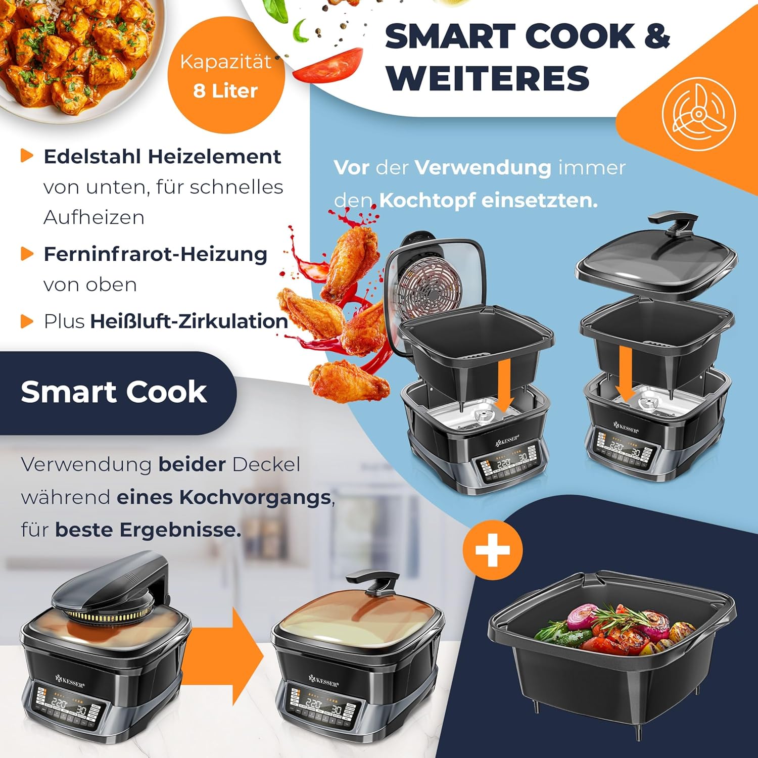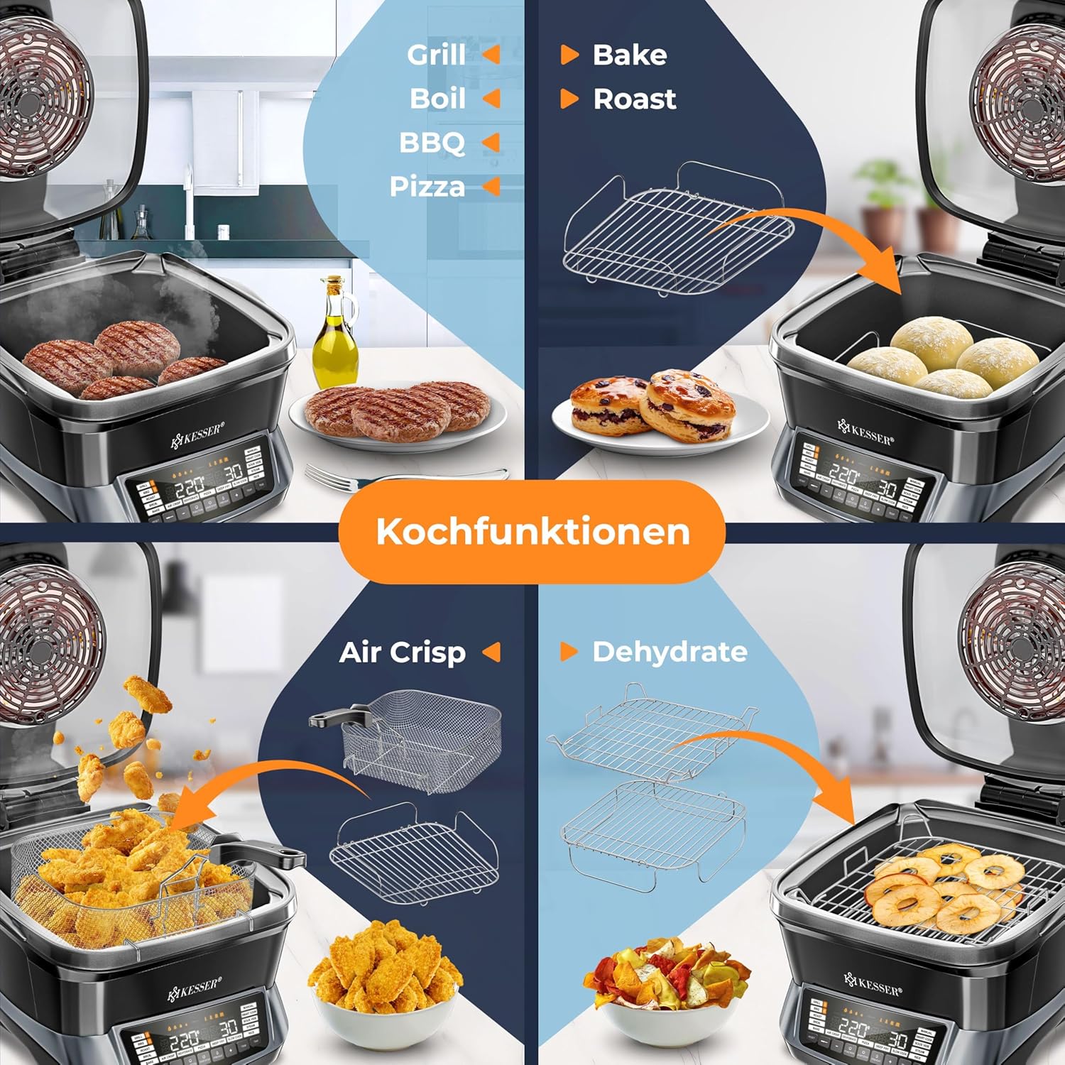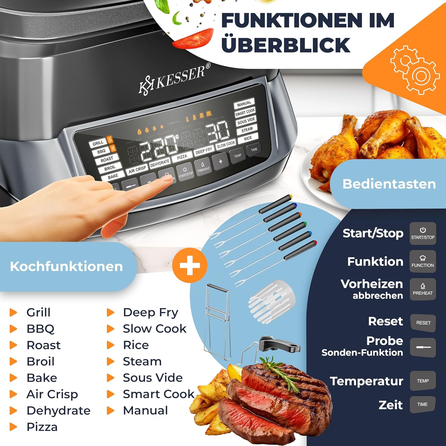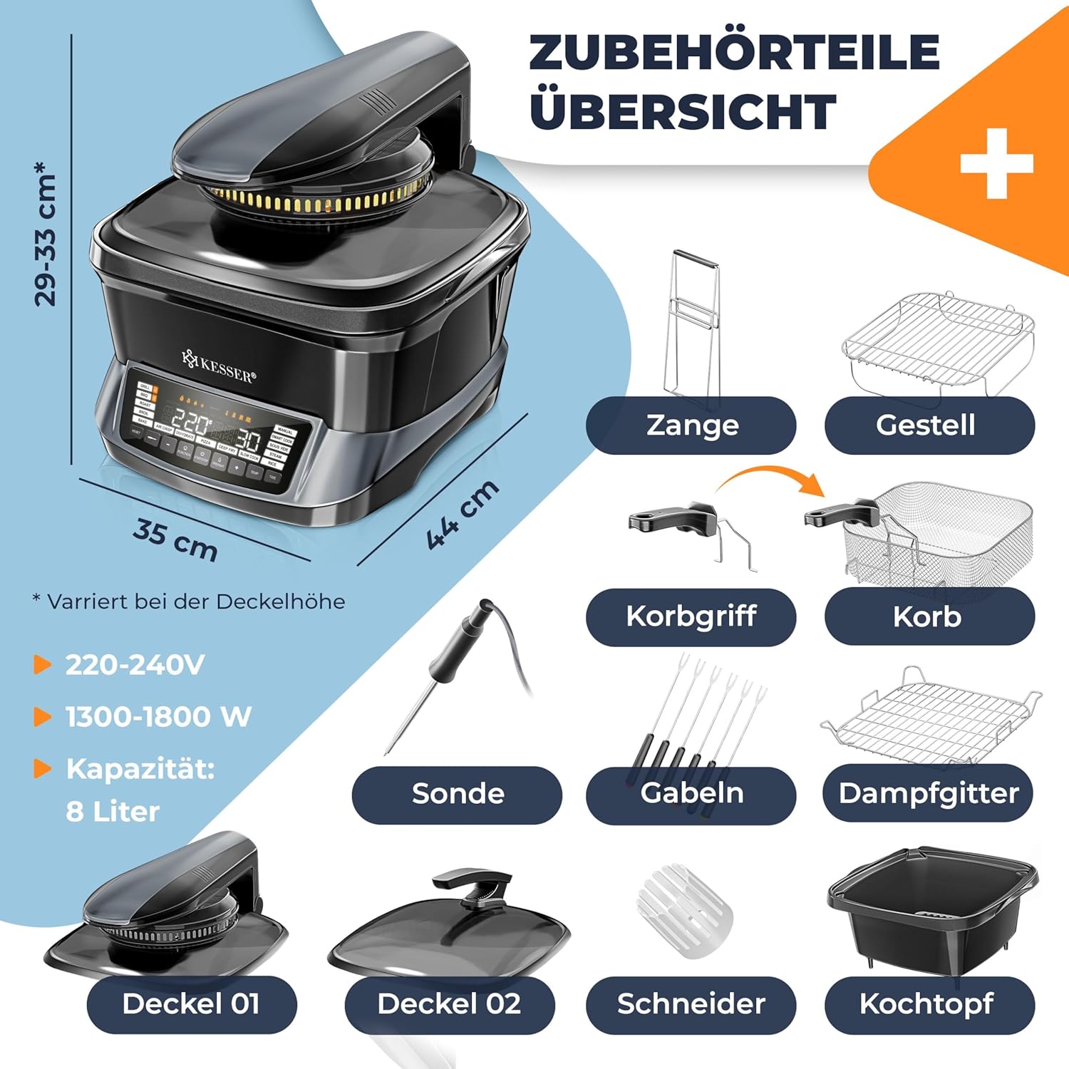 KESSER® Multikocher mit Heißluftfritteuse 8L & 16 Programme Küchengerät - Grillen, Backen, Schmoren, Dampfgaren Vorheiz- & Warmhaltefunktion Schnellkochkopf Reiskocher Slow Cooker, Joghurtbereiter Anthrazit | قیمت یورویی 199.8€