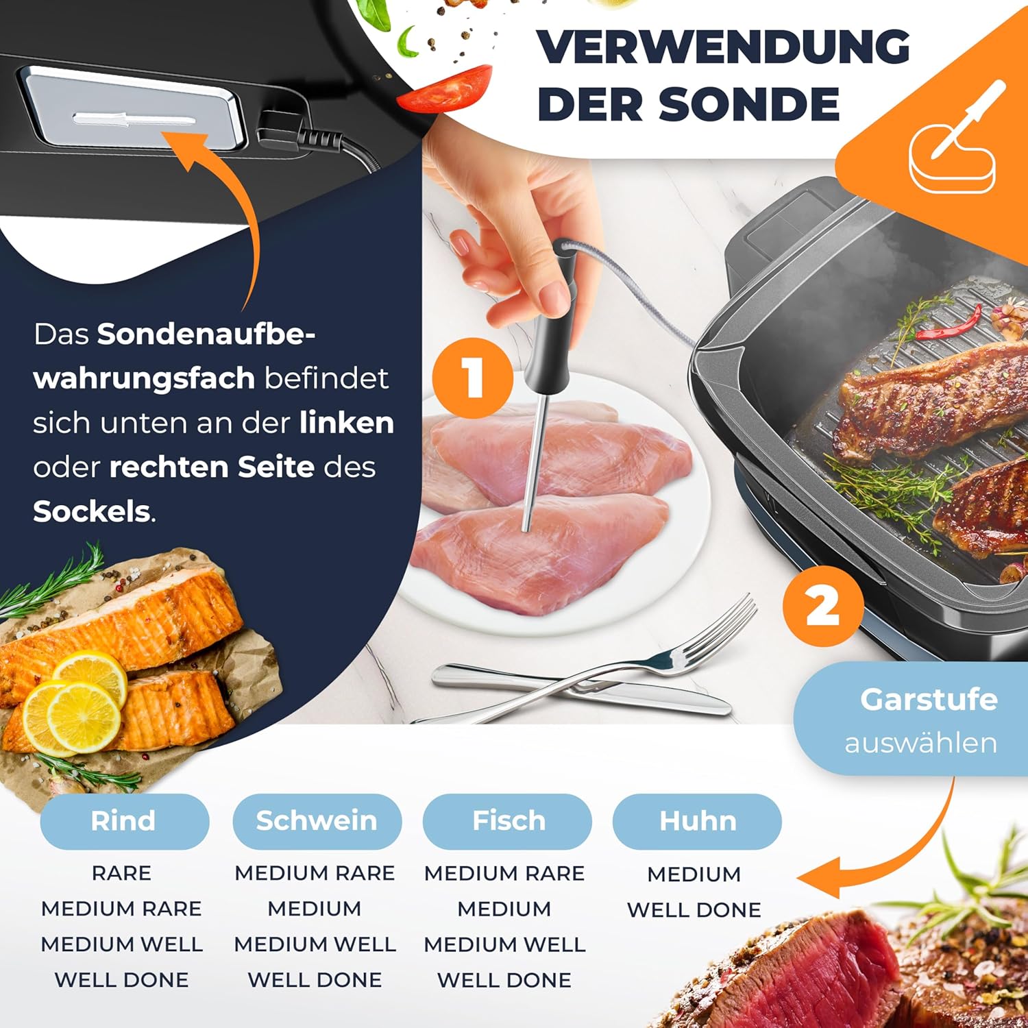 𝐌𝐔𝐋𝐓𝐈𝐅𝐔𝐍𝐊𝐓𝐈𝐎𝐍𝐀𝐋𝐄𝐒 𝐊𝐎𝐂𝐇𝐆𝐄𝐑Ä𝐓 𝐅Ü𝐑 𝐃𝐄𝐍 𝐀𝐋𝐋𝐓𝐀𝐆: All-in-One, mit 16 automatischen Programmen wie Grillen, Backen, Schmoren oder Dampfgaren ersetzt der Multikocher mehrere Küchengeräte in einem. Ideal für Familienküche und gesundes Kochen ohne Aufwand. 𝐒𝐌𝐀𝐑𝐓 𝐂𝐎𝐎𝐊 𝐒𝐘𝐒𝐓𝐄𝐌 𝐌𝐈𝐓 𝐃𝐎𝐏𝐏𝐄𝐋𝐃𝐄𝐂𝐊𝐄𝐋: Die innovative Smart Cook Funktion nutzt beide Deckelarten gleichzeitig für gleichmäßige Hitzeverteilung. Perfekt für Pizza, Aufläufe, Fleisch oder Gemüse – alles auf den Punkt gegart. 𝐓𝐄𝐌𝐏𝐄𝐑𝐀𝐓𝐔𝐑𝐒𝐎𝐍𝐃𝐄 𝐅Ü𝐑 𝐏𝐑Ä𝐙𝐈𝐒𝐄 𝐆𝐀𝐑𝐒𝐓𝐔𝐅𝐄𝐍: Die integrierte Sonde misst die Kerntemperatur exakt. Voreinstellungen für Rind, Schwein, Fisch und Huhn sorgen für punktgenaues Garen – von rare bis durchgegart. 𝐊𝐎𝐌𝐅𝐎𝐑𝐓𝐀𝐁𝐋𝐄 𝐁𝐄𝐃𝐈𝐄𝐍𝐔𝐍𝐆 𝐌𝐈𝐓 𝐕𝐎𝐑𝐇𝐄𝐈𝐙- 𝐔𝐍𝐃 𝐓𝐈𝐌𝐄𝐑𝐅𝐔𝐍𝐊𝐓𝐈𝐎𝐍: Das übersichtliche Bedienfeld mit Start/Stop, Temperatur- und Zeiteinstellung sowie Warmhaltefunktion macht die Nutzung besonders einfach und effizient. 𝐋𝐄𝐈𝐂𝐇𝐓 𝐙𝐔 𝐑𝐄𝐈𝐍𝐈𝐆𝐄𝐍 𝐔𝐍𝐃 𝐅𝐀𝐌𝐈𝐋𝐈𝐄𝐍𝐅𝐑𝐄𝐔𝐍𝐃𝐋𝐈𝐂𝐇: Der 8 Liter große Kochtopf bietet ausreichend Platz für große Portionen. Zubehör wie Korb, Gitter oder Zange ist spülmaschinenfest – für mühelose Reinigung nach dem Kochen. | قیمت یورویی : 148.8€