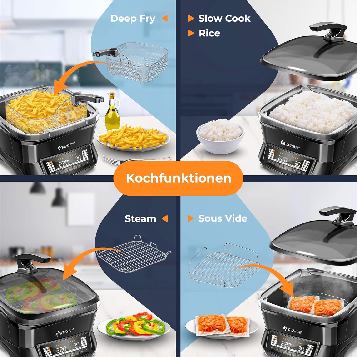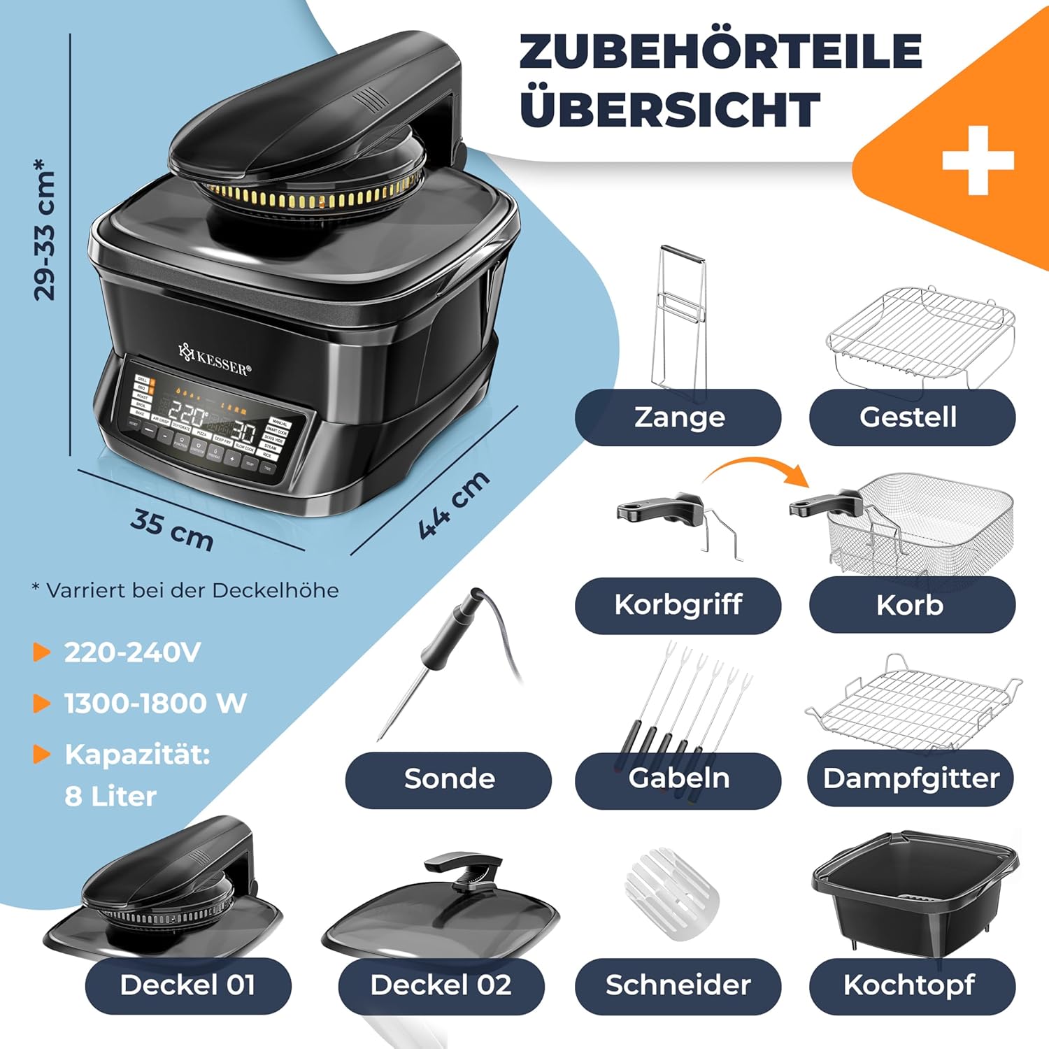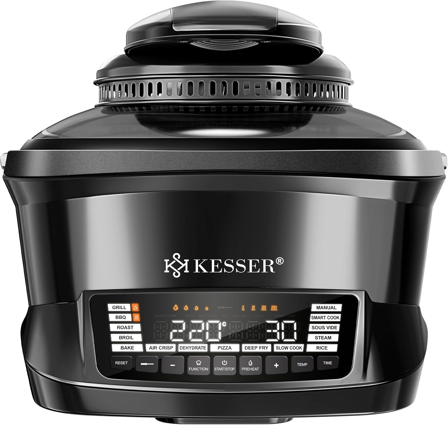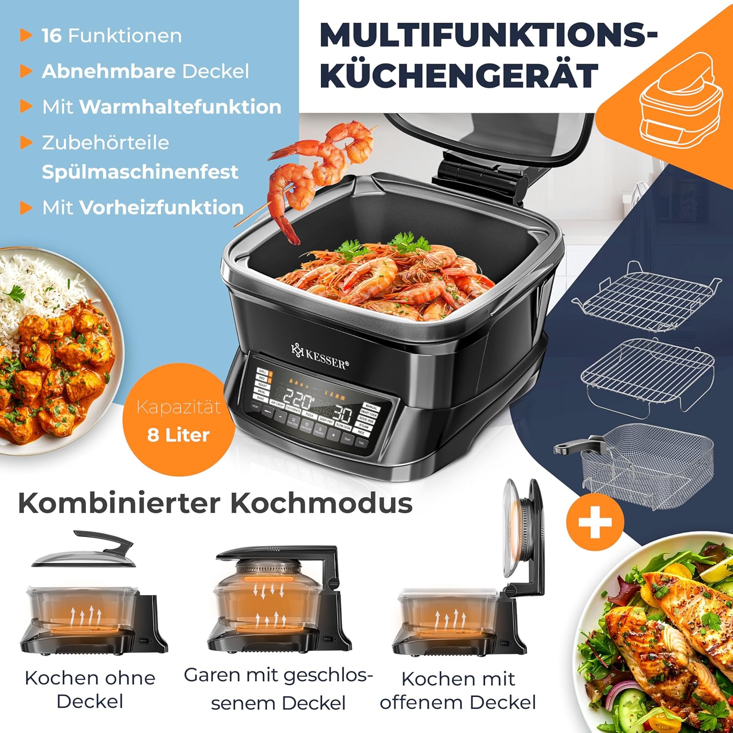 KESSER® Multikocher mit Heißluftfritteuse 8L & 16 Programme Küchengerät - Grillen, Backen, Schmoren, Dampfgaren Vorheiz- & Warmhaltefunktion Schnellkochkopf Reiskocher Slow Cooker, Joghurtbereiter Schwarz | قیمت یورویی 146.8€